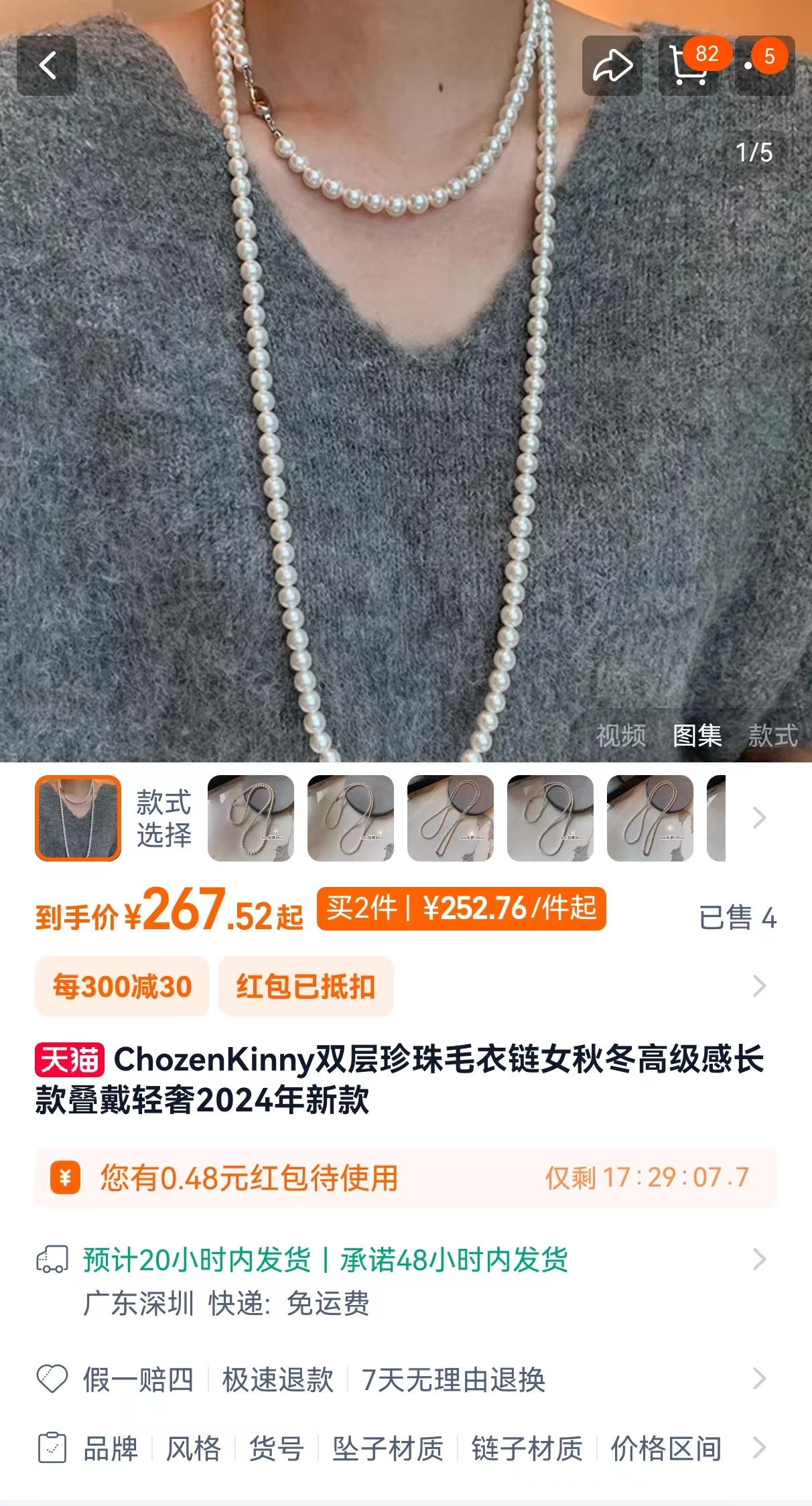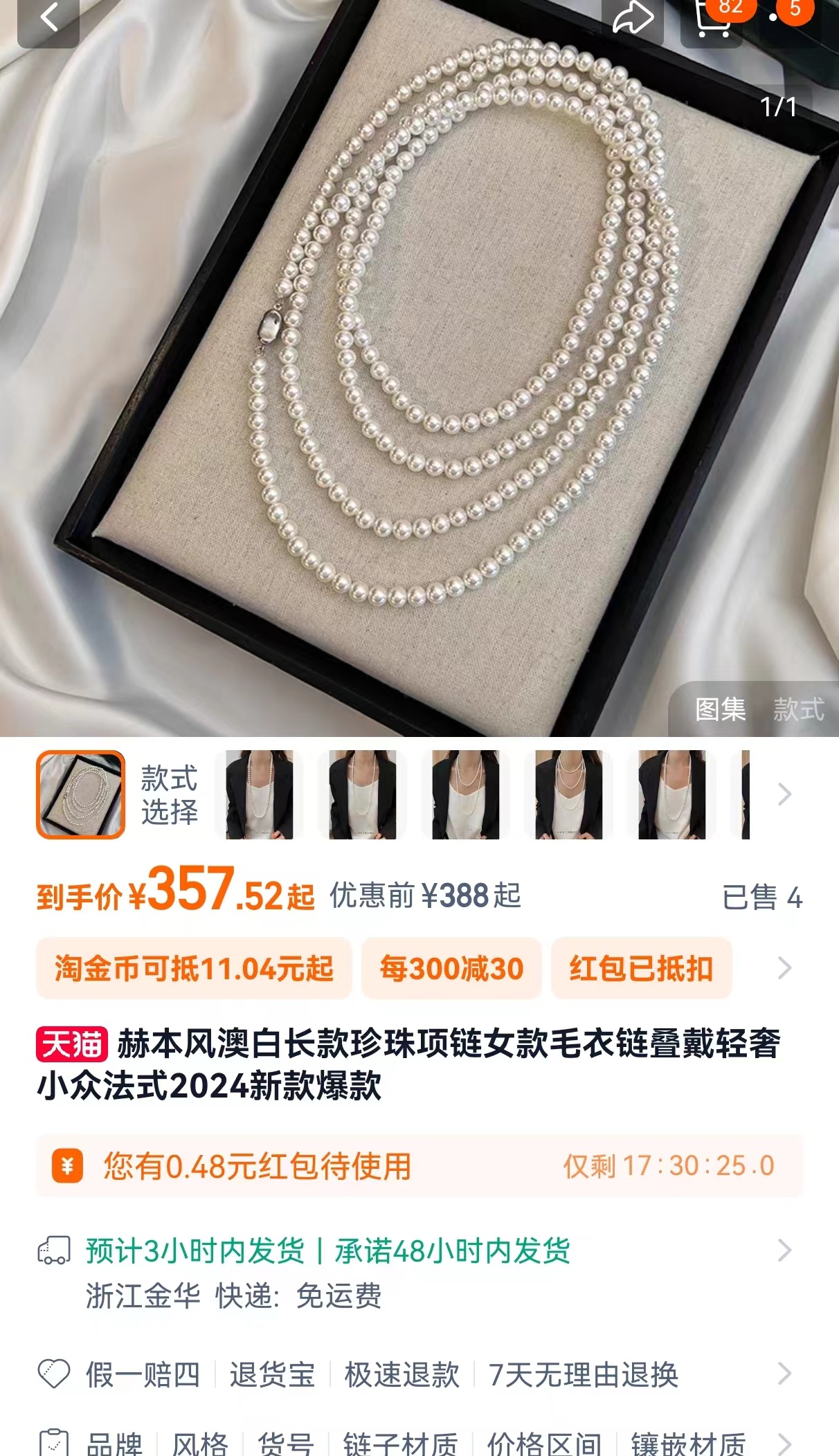 长度:85cm,可单层可双层毛衣链~珍珠项链无法拒绝~