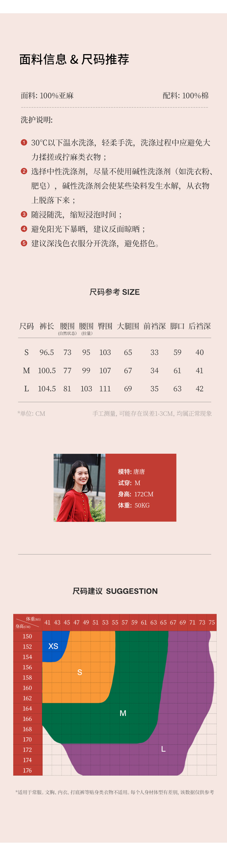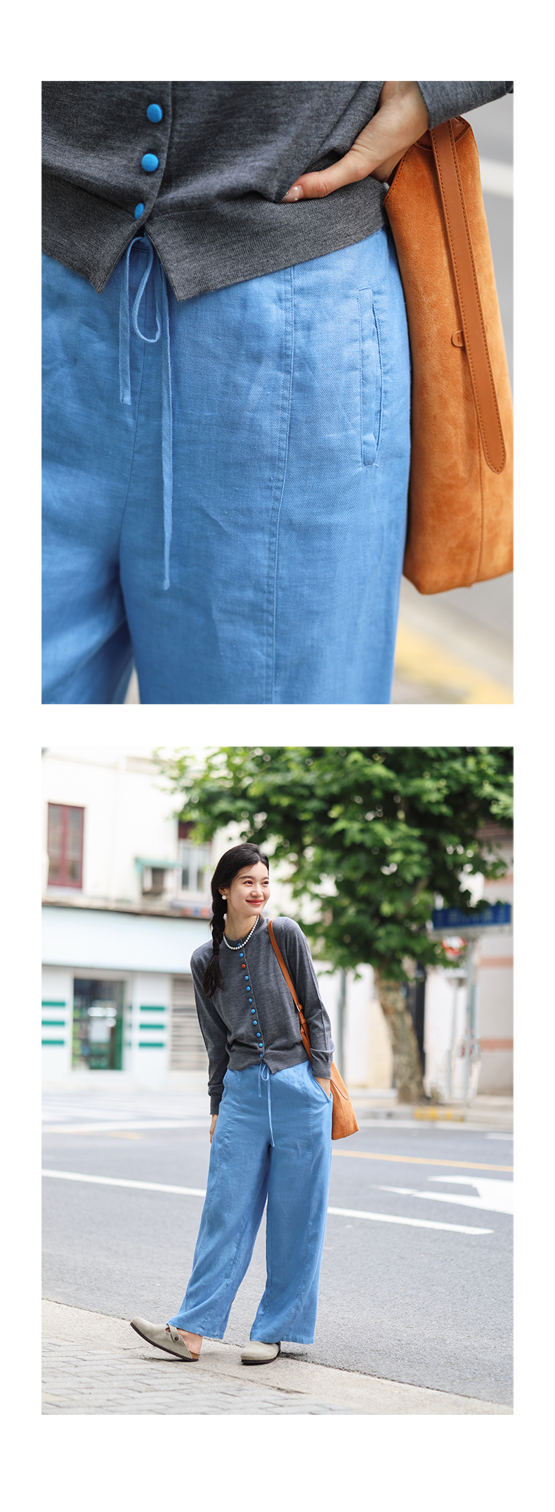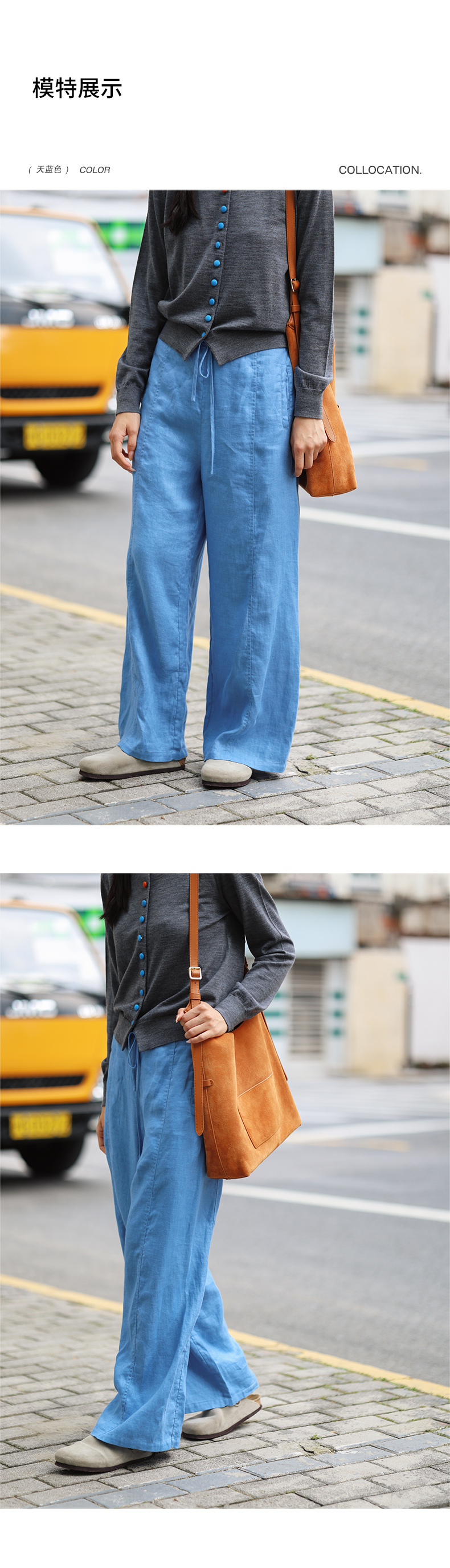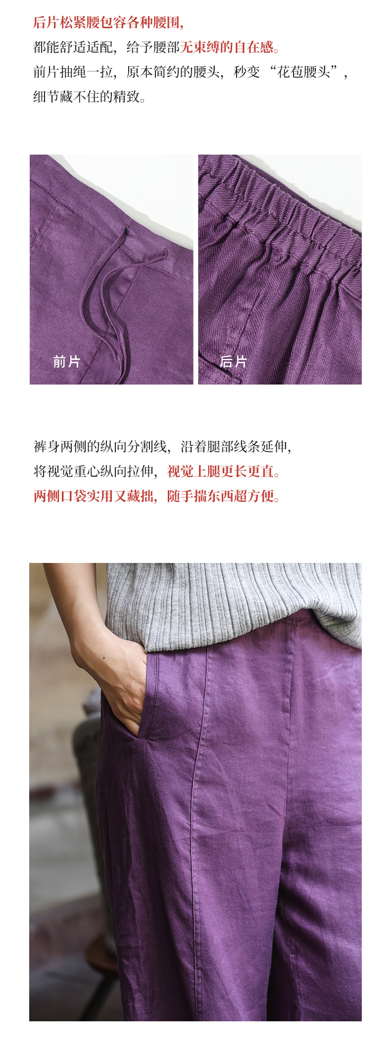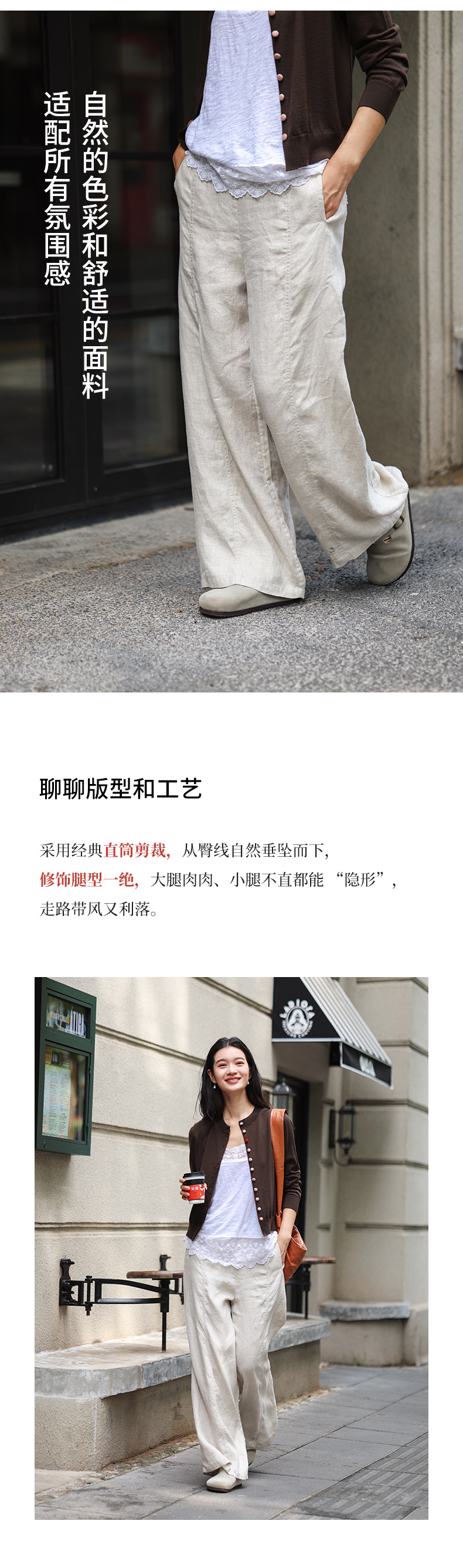 绽放旅行女装510朵/斜纹亚麻半腰松紧抽绳宽松直筒长裤百搭休闲裤
