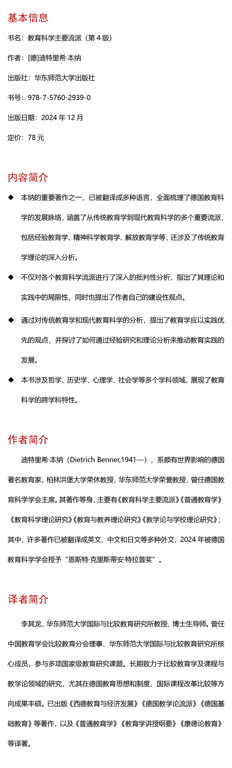 教育科学主要流派 第4版 当代德国教育经典译丛 德国教育学