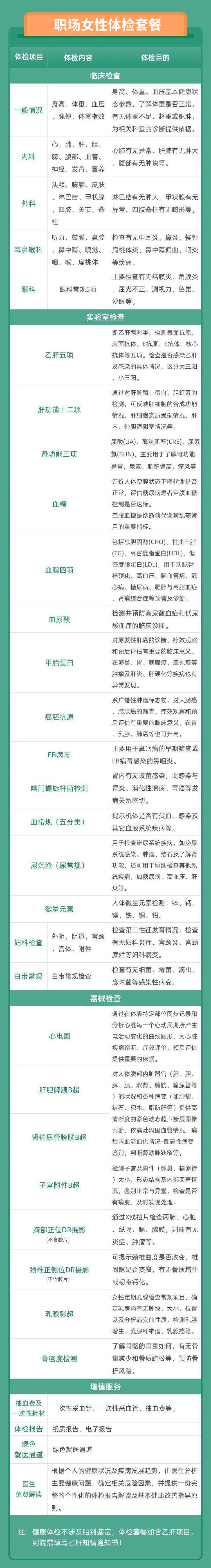 职场女性体检1份