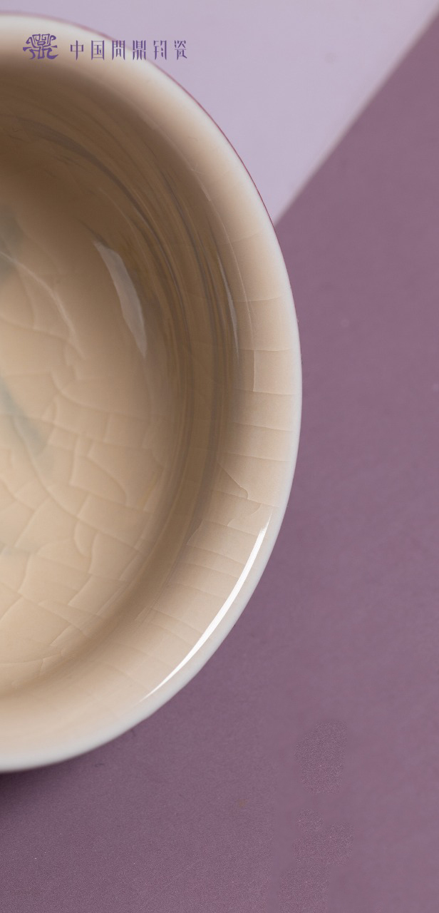 问鼎钧瓷鹅黄青花闲意杯(松山亭阁)