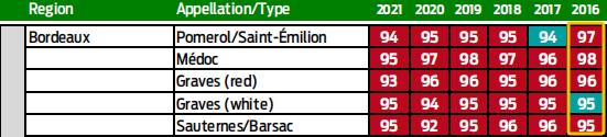 2016 年:波尔多经典大年,WE 95-98 分肯定;