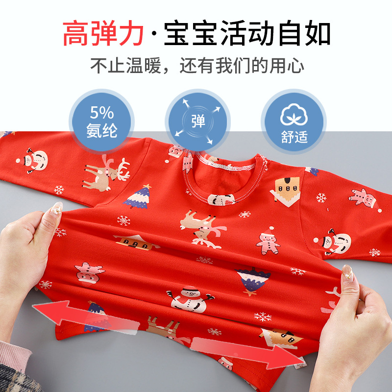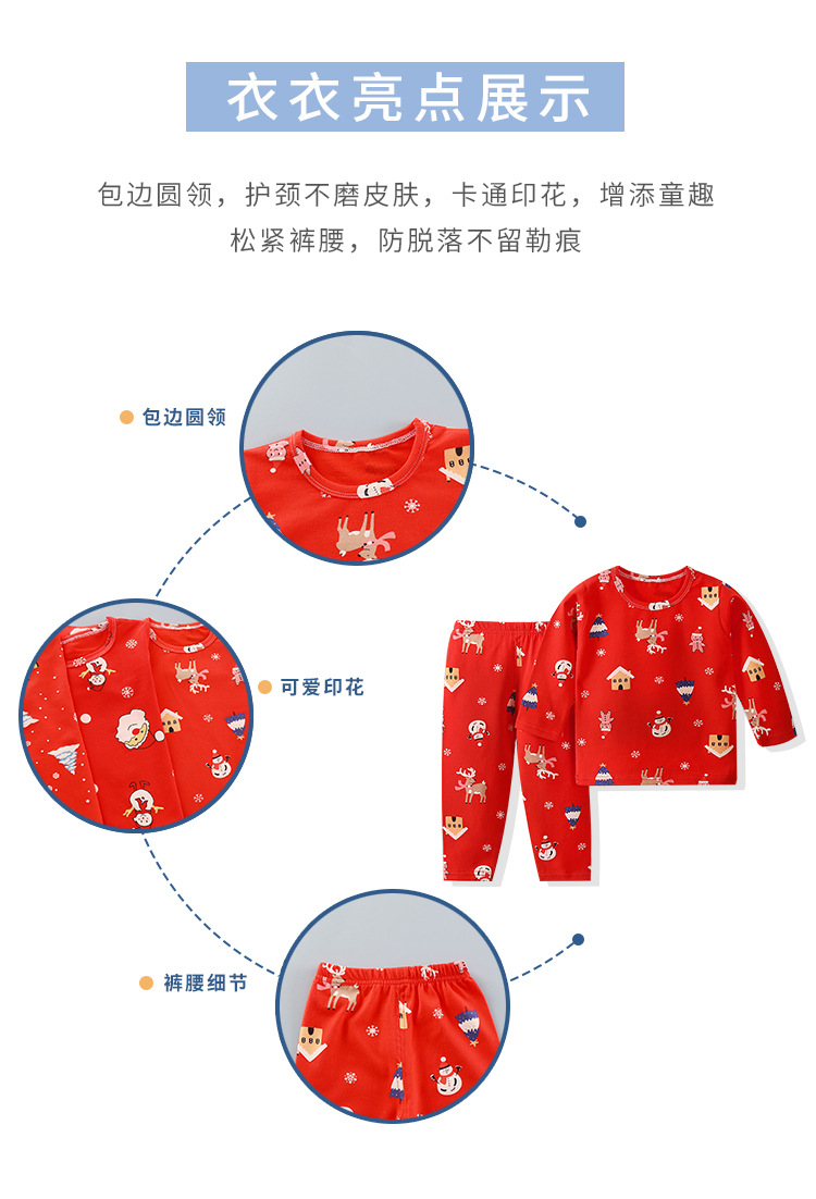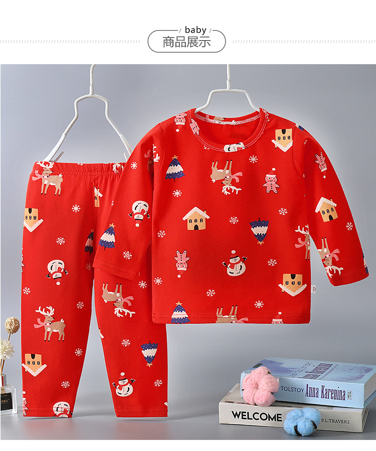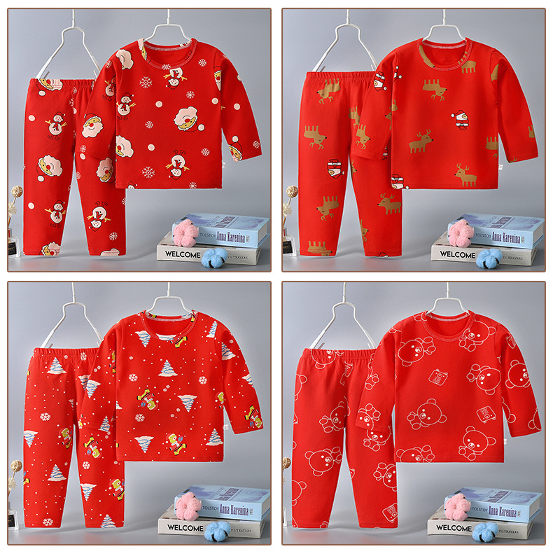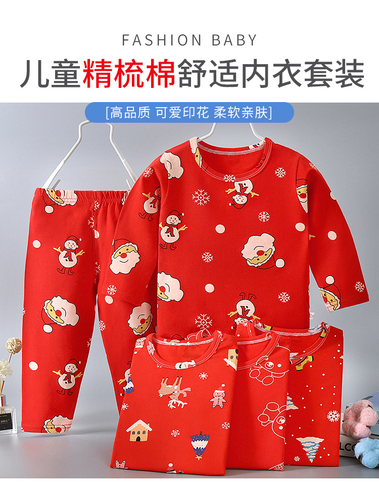 【圣诞套装】儿童过年喜庆大红色男孩女孩秋衣秋裤套装内衣婴幼儿保暖衣本命年