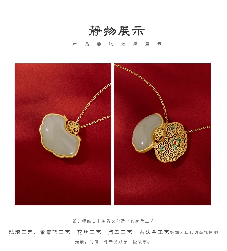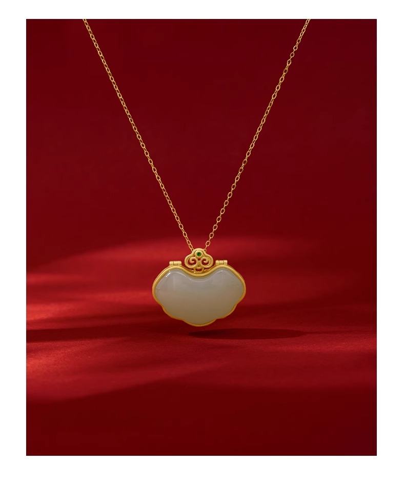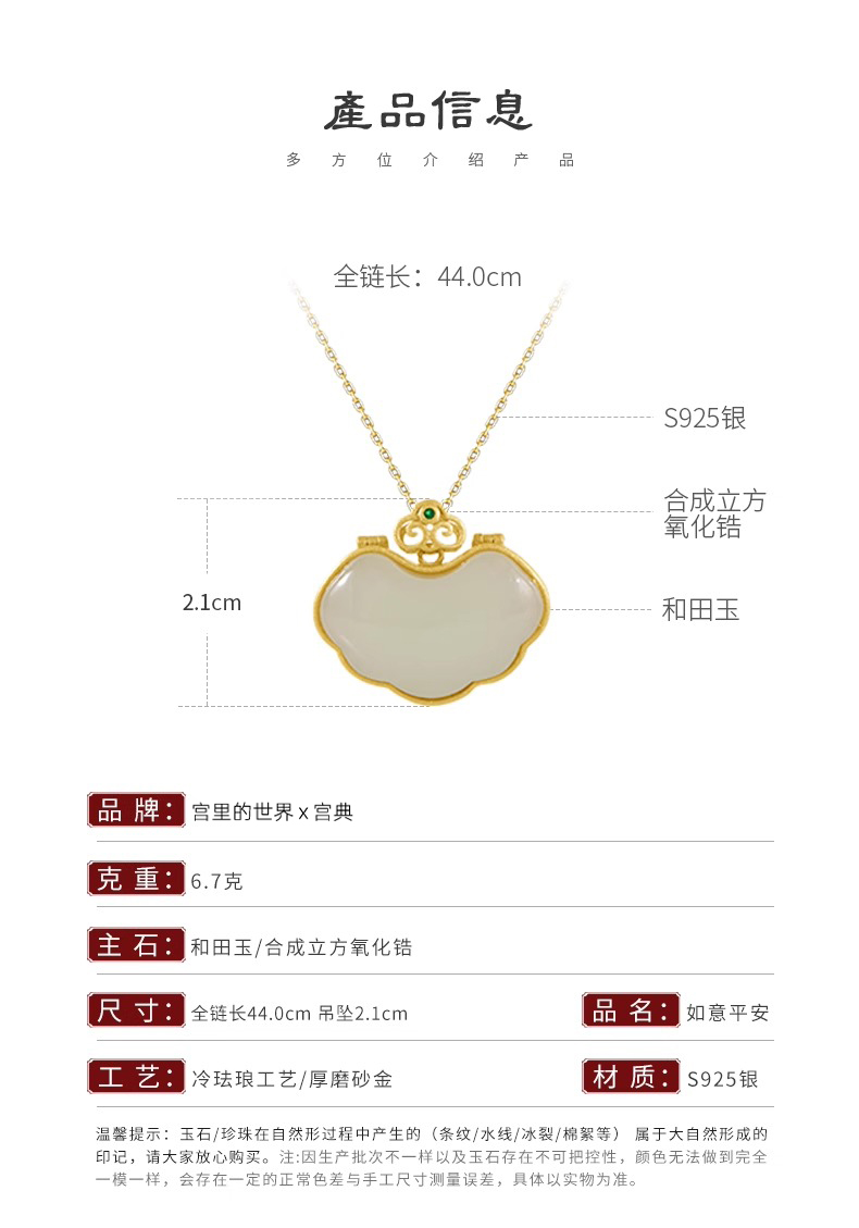 【宫里项链】和田玉平安如意锁项链