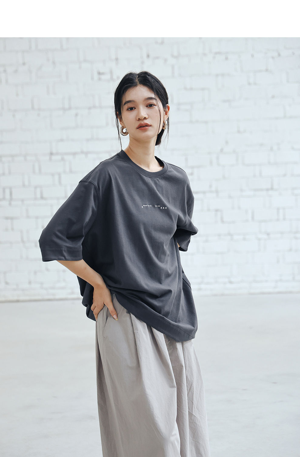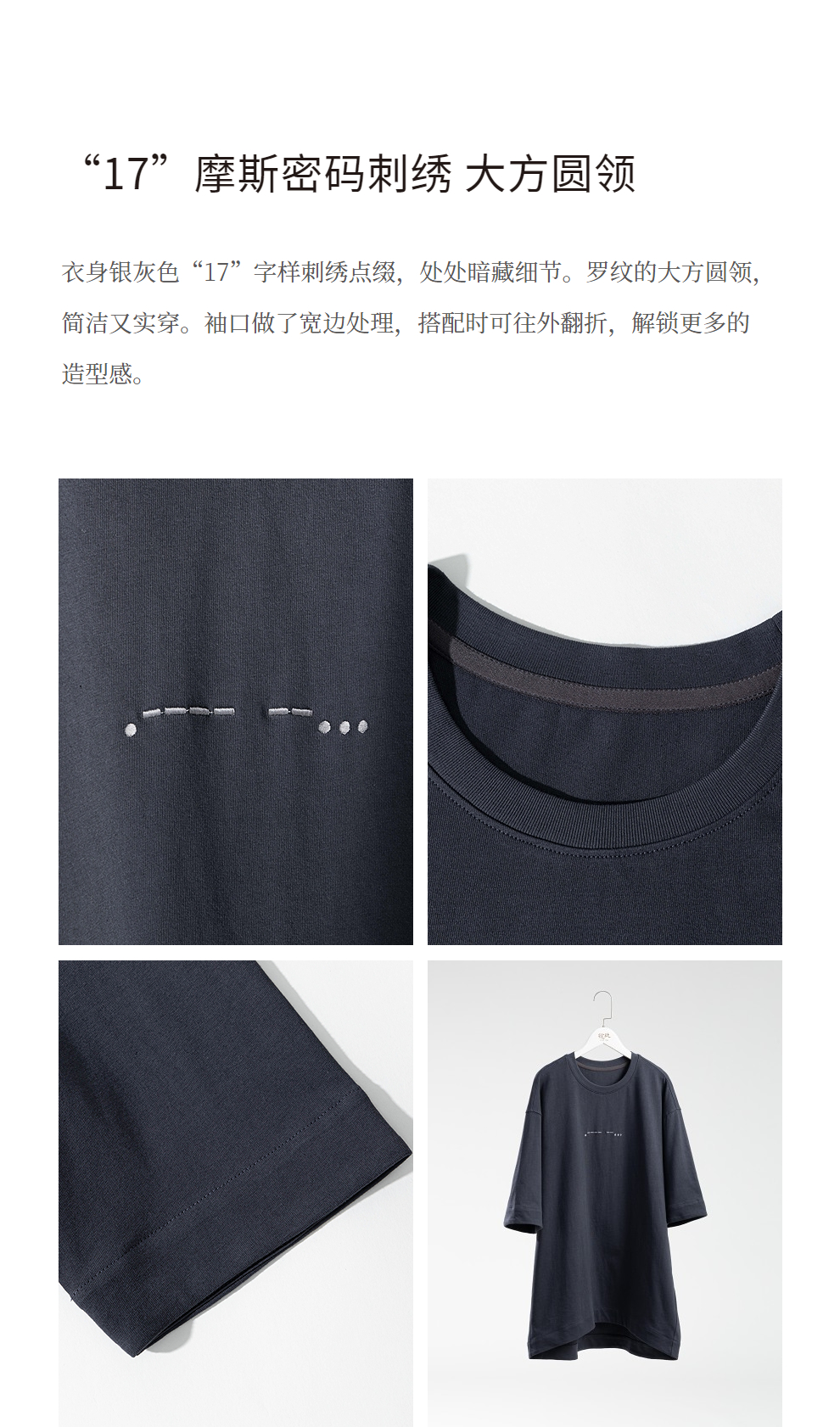 绽放390朵/【黑白灰系列·纪念T】“17”摩斯密码刺绣宽松中袖T恤