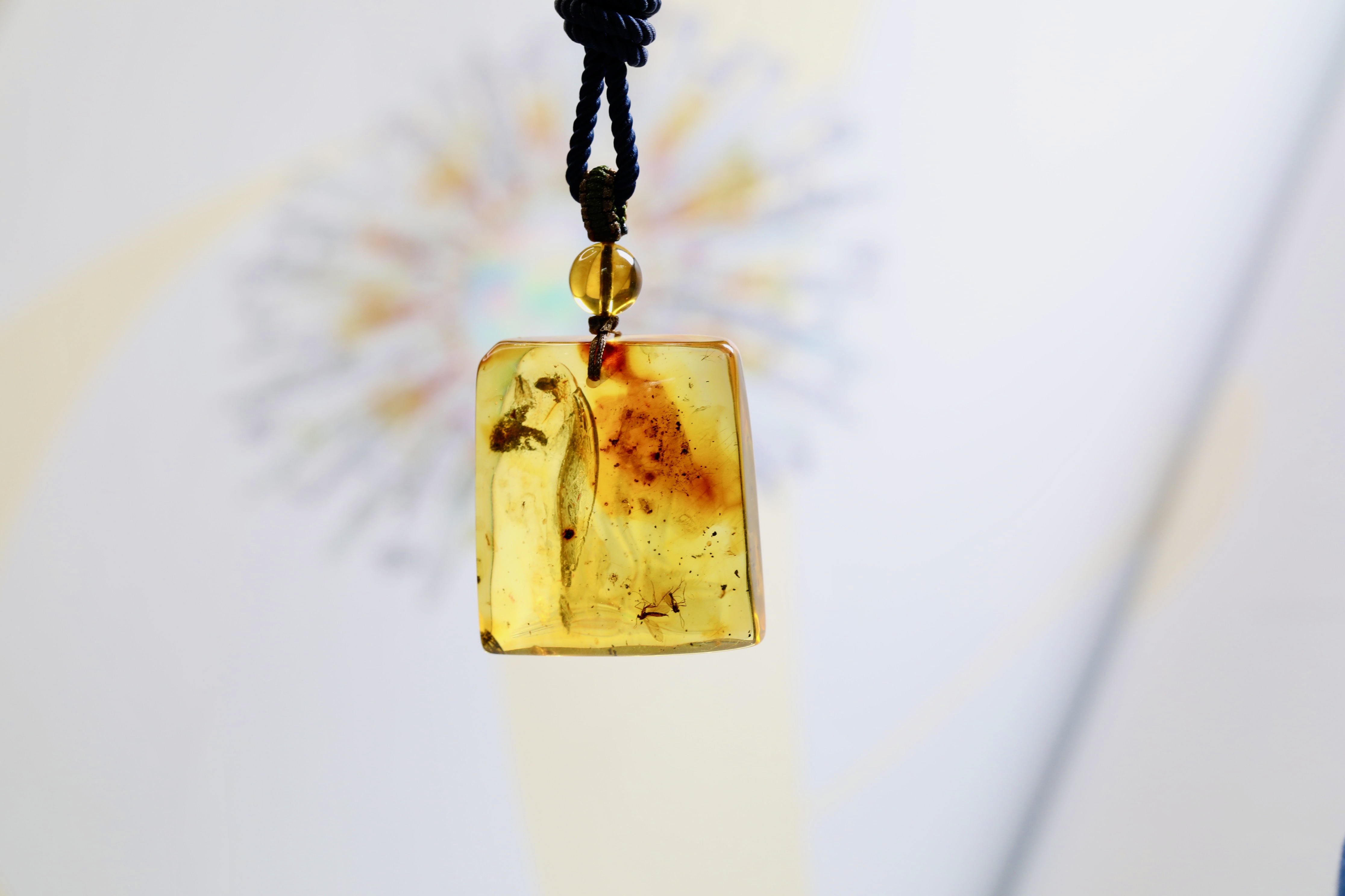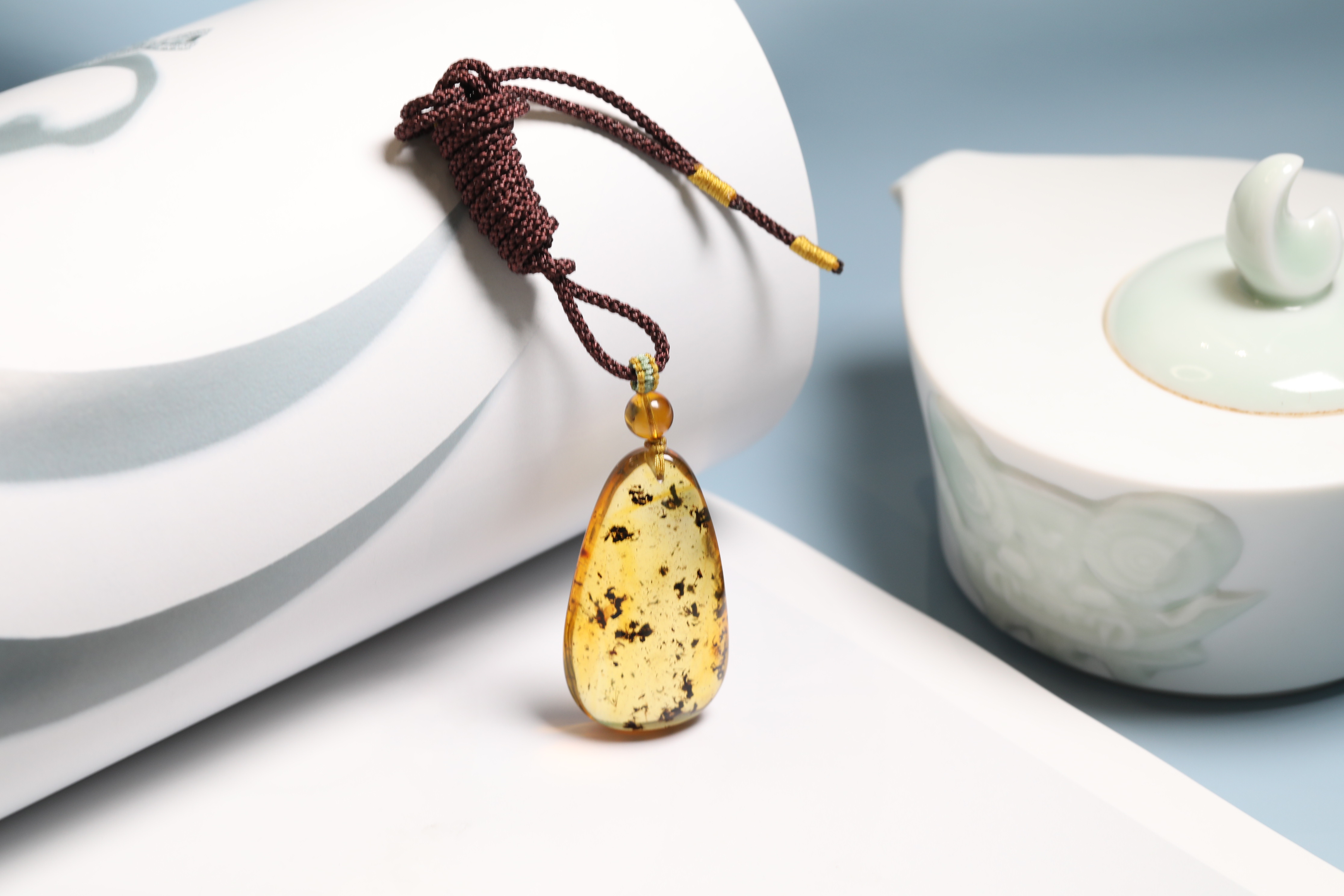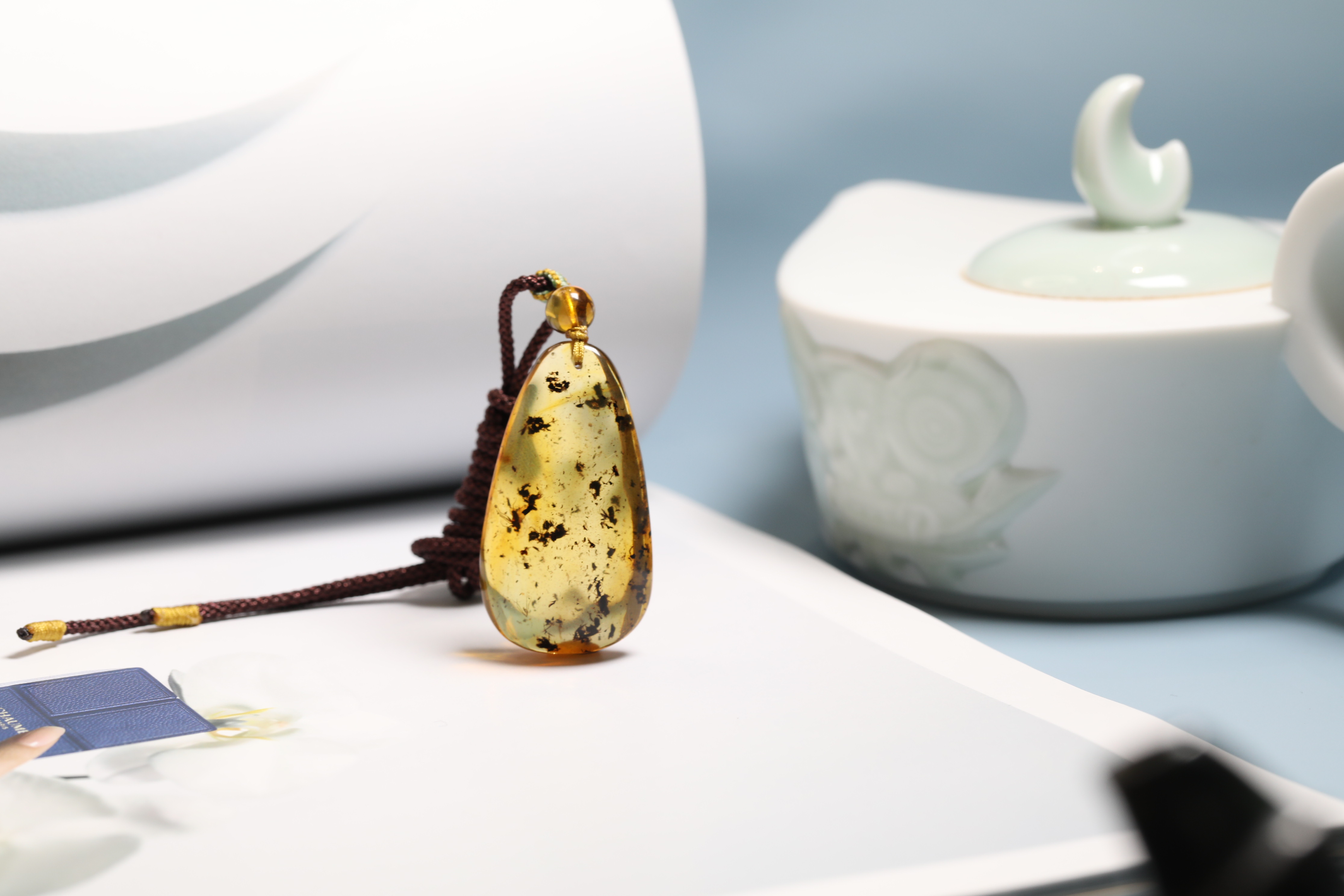 蜜糖色树脂包裹墨色虫影,形成天然水墨画卷;透光细观,虫体与气泡、碎屑共舞,在晶莹琥珀中构建微型宇宙。完整虫珀需同时满足树脂突发、生物误入、快速密封三重奇迹,十万块琥珀中难寻其一,虫体完整,并且画面漂亮,器形优美的虫珀,更是自然界的稀有孤品。