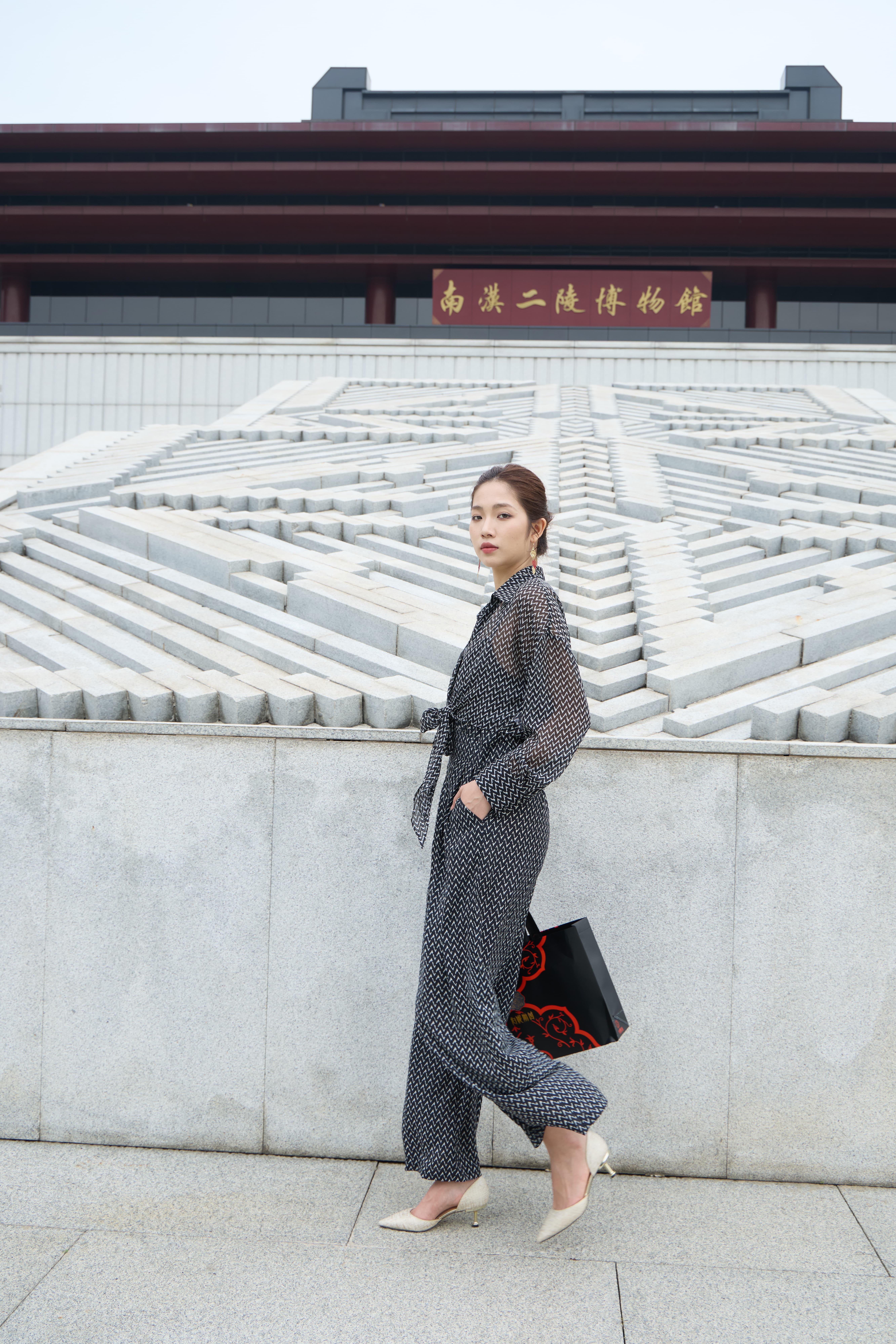 ✨穿梭博物馆长廊,光影间衣摆轻扬,转身定格摩登艺术画报。