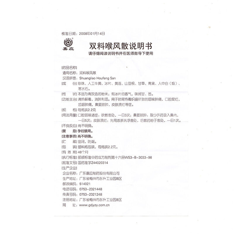 嘉应 双料喉风散2.2g口腔消肿利咽咽喉肿痛