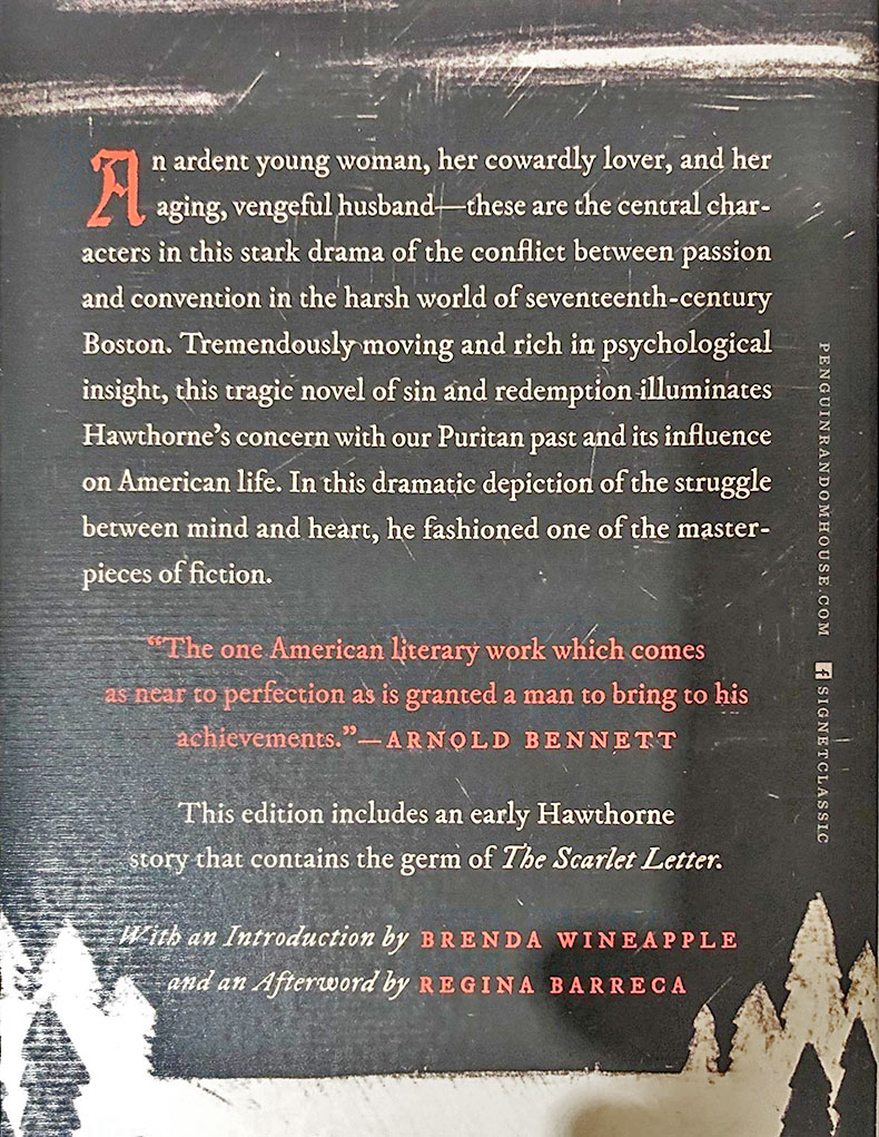 Set in 17th-century Puritan Boston, Massachusetts, during the years 1642 to 1649, it tells the story of Hester Prynne, who conceives a daughter through an affair and struggles to create a new life of repentance and dignity. Throughout the book, Hawthorne explores themes of legalism, sin, and guilt.