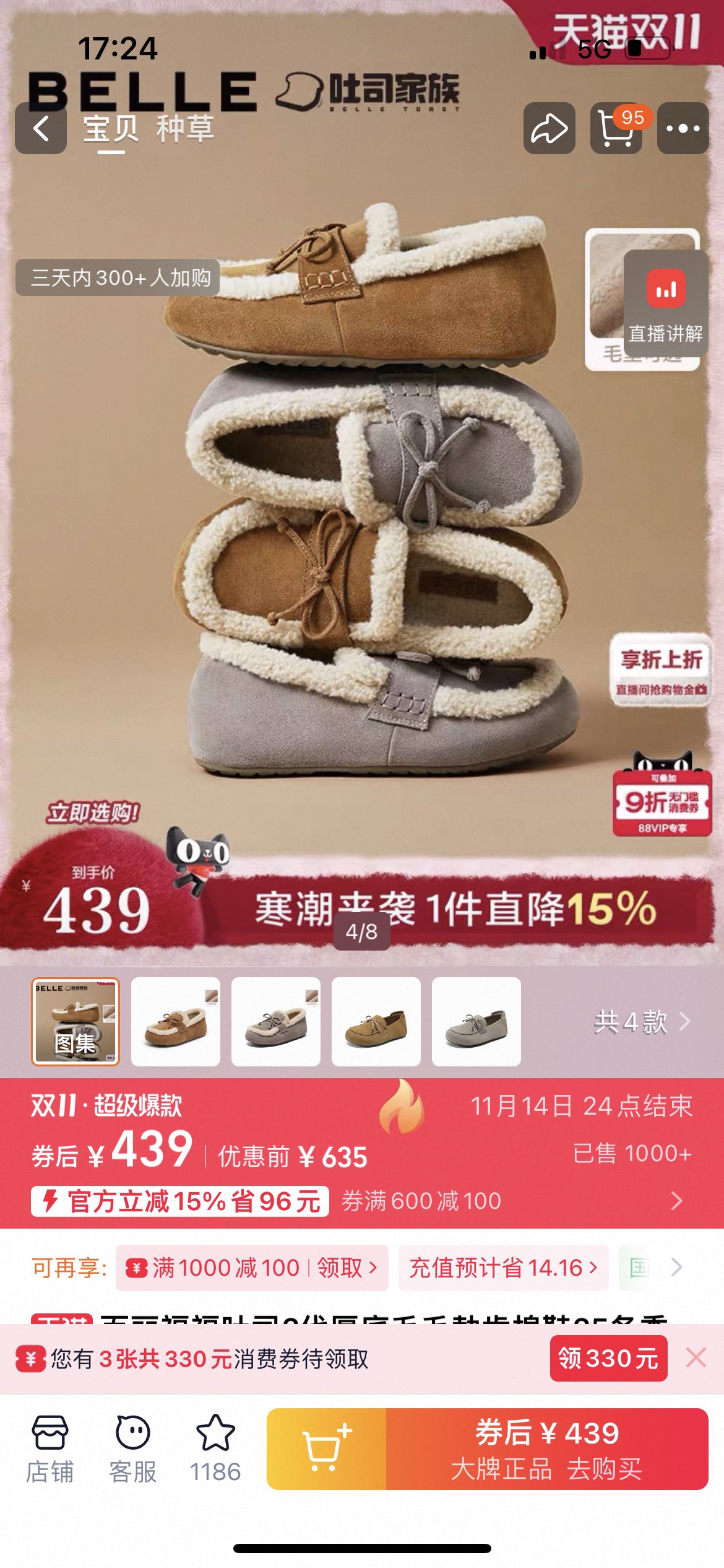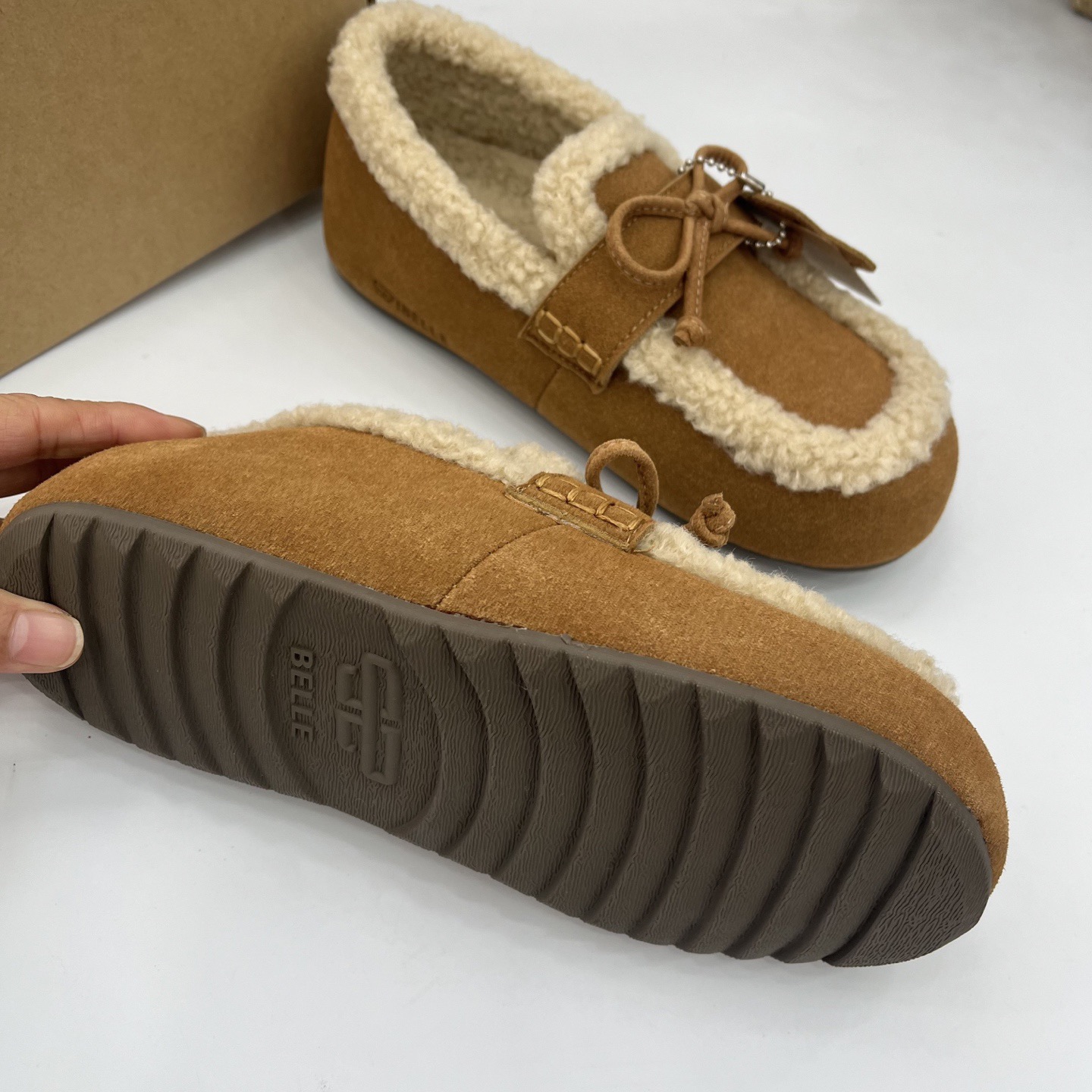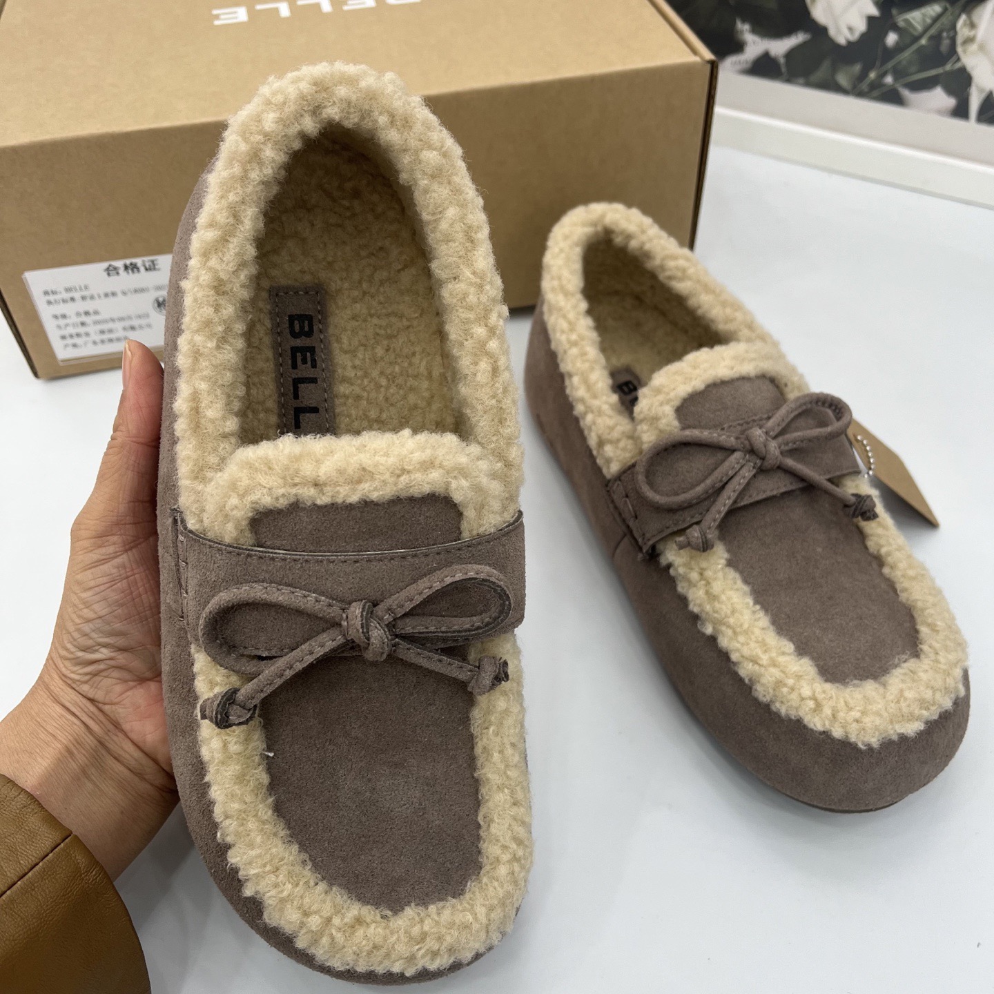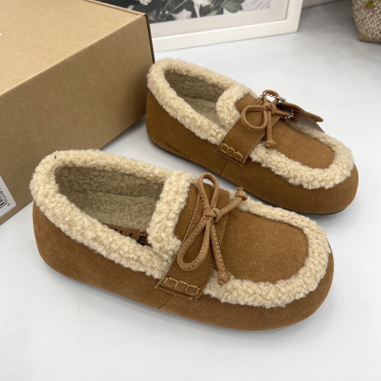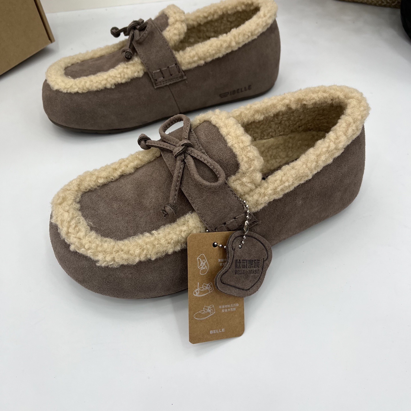 豆豆鞋吐司2代厚底毛毛勃肯棉鞋25冬季新款加绒雪地靴单鞋子预、两色材质真皮橡胶底羊恙绒
