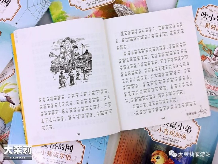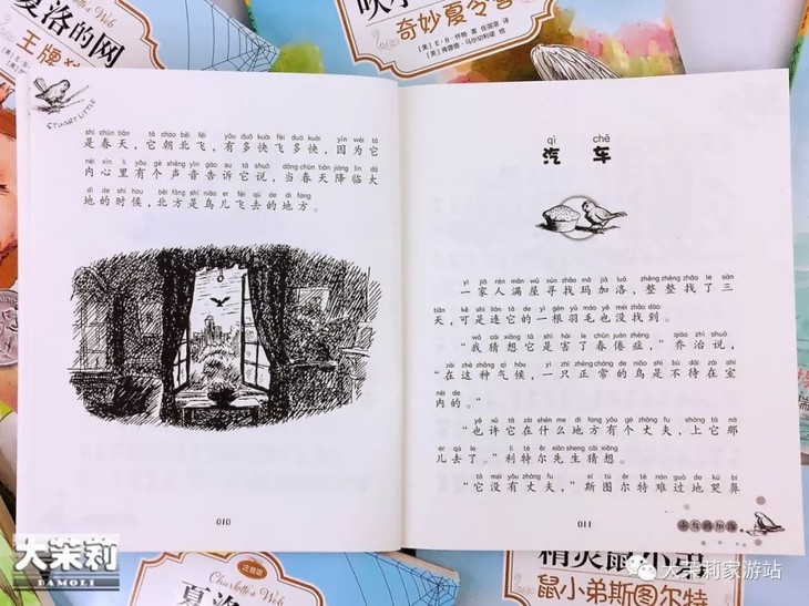 另外,这次的这套《E·B·怀特经典童话三部曲》是注音版的,大茉莉觉得非常适合小学正在自主阅读的娃们。毕竟长期让娃们只读绘本,这会影响他们往后的阅读和写作能力。这样纯文字但是又有带注音的书籍,可是非常合适引导娃们做一个“绘本向全文字阅读”的过渡。