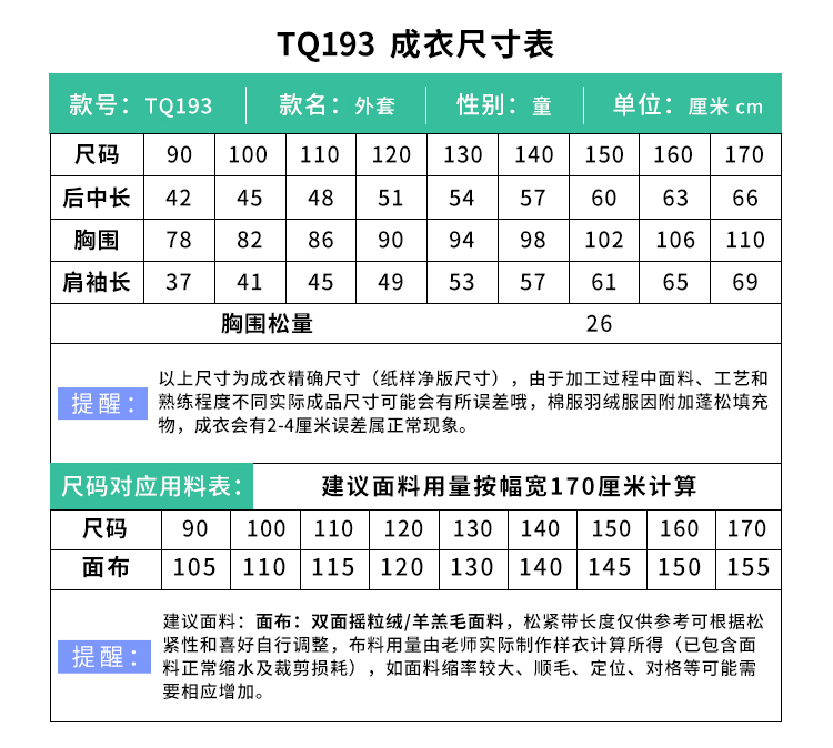 裁缝学苑TQ193韩系新款精灵帽毛毛衣纸样儿童羊羔毛外套童装样板