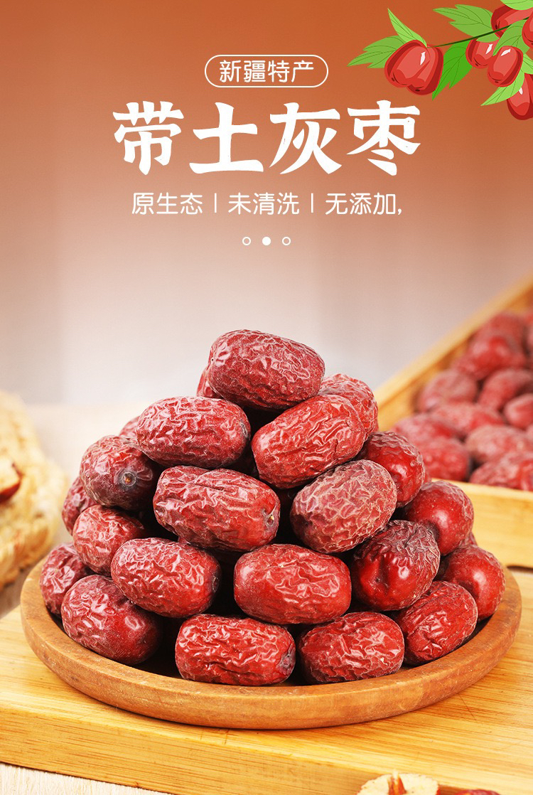 新疆带土灰枣红枣非水洗若羌特产大灰枣 礼盒新兵团灰枣5斤送一斤