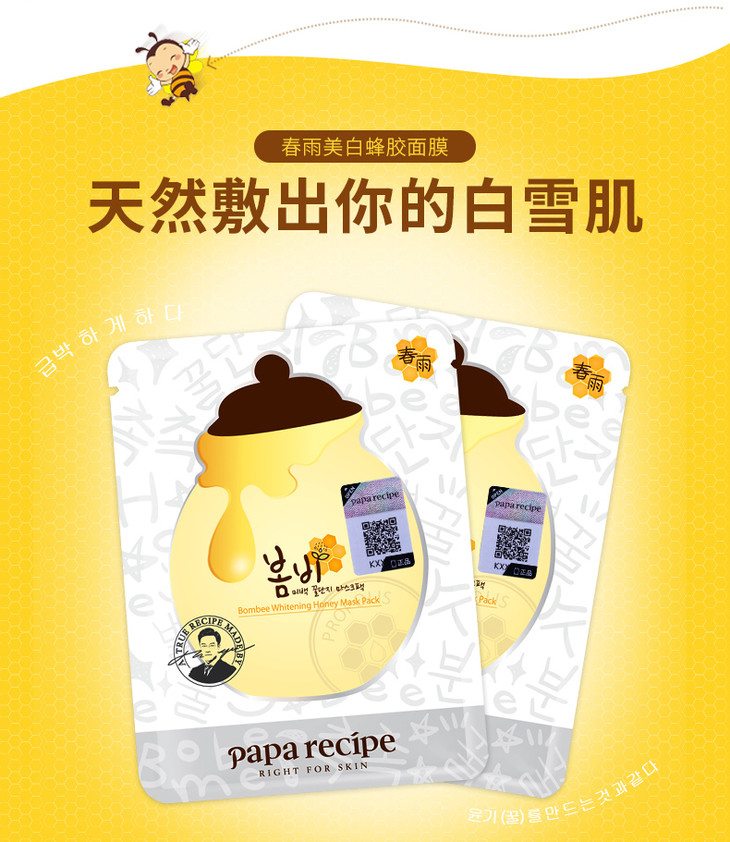 【保税区包邮直发】韩国 春雨 蜂蜜蜗牛白花面膜 10片 补水美白保湿