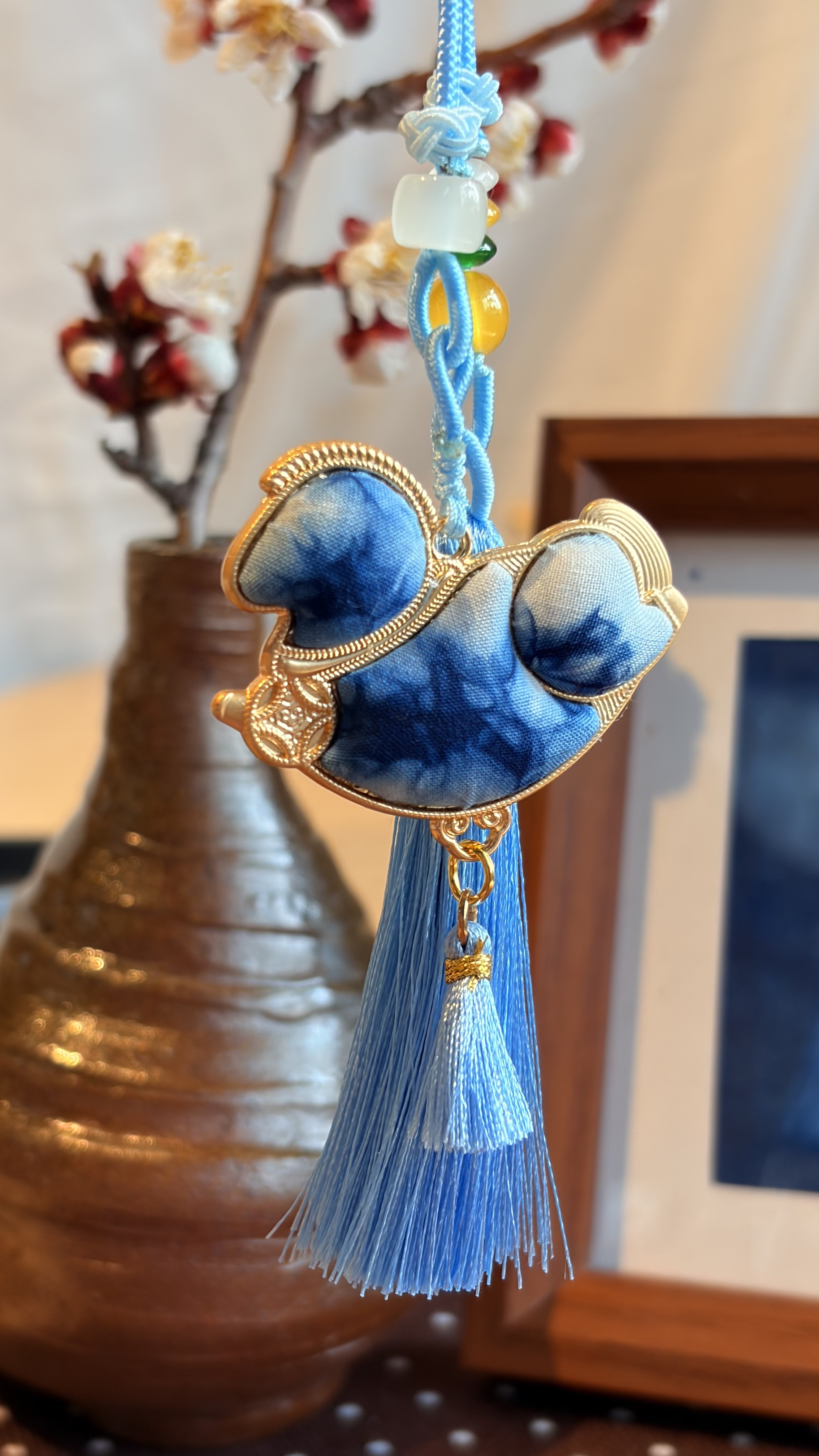 非遗扎染马挂件手工草木染布艺包挂钥匙挂饰品