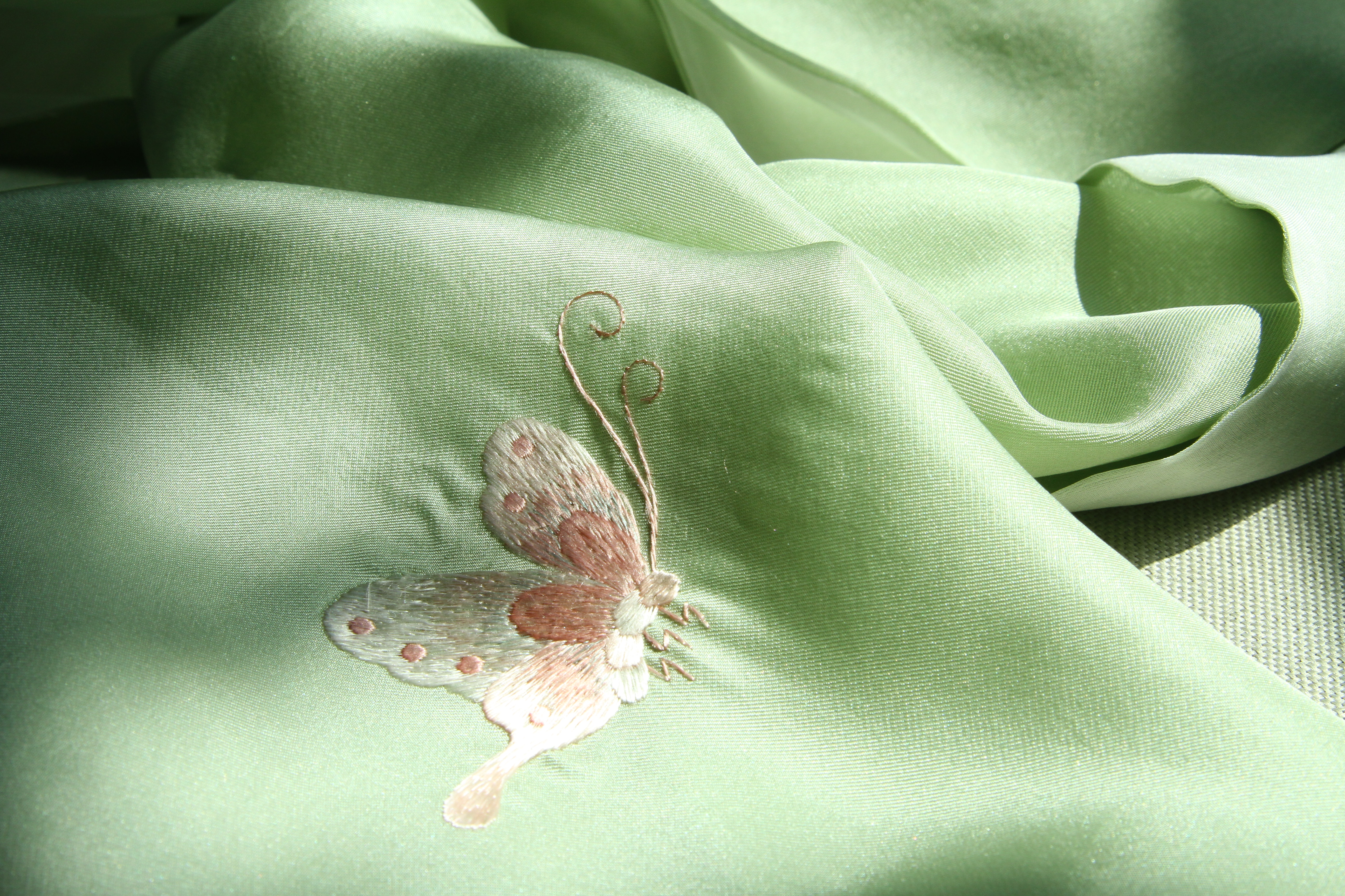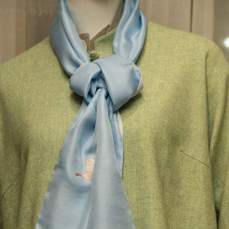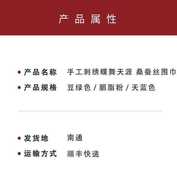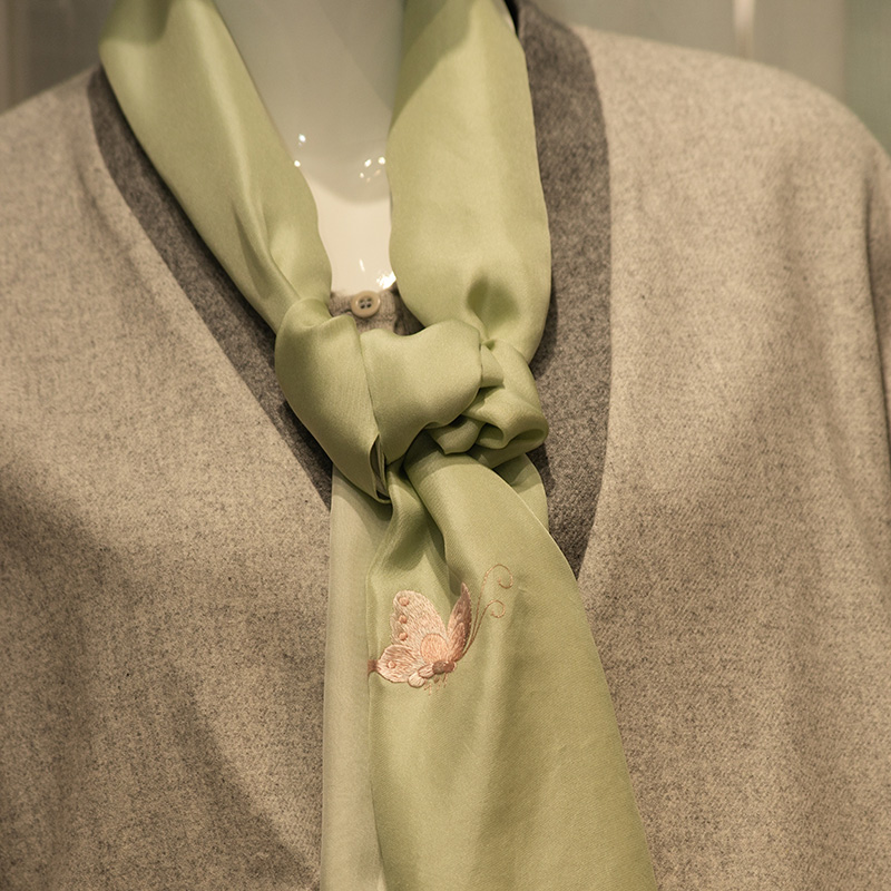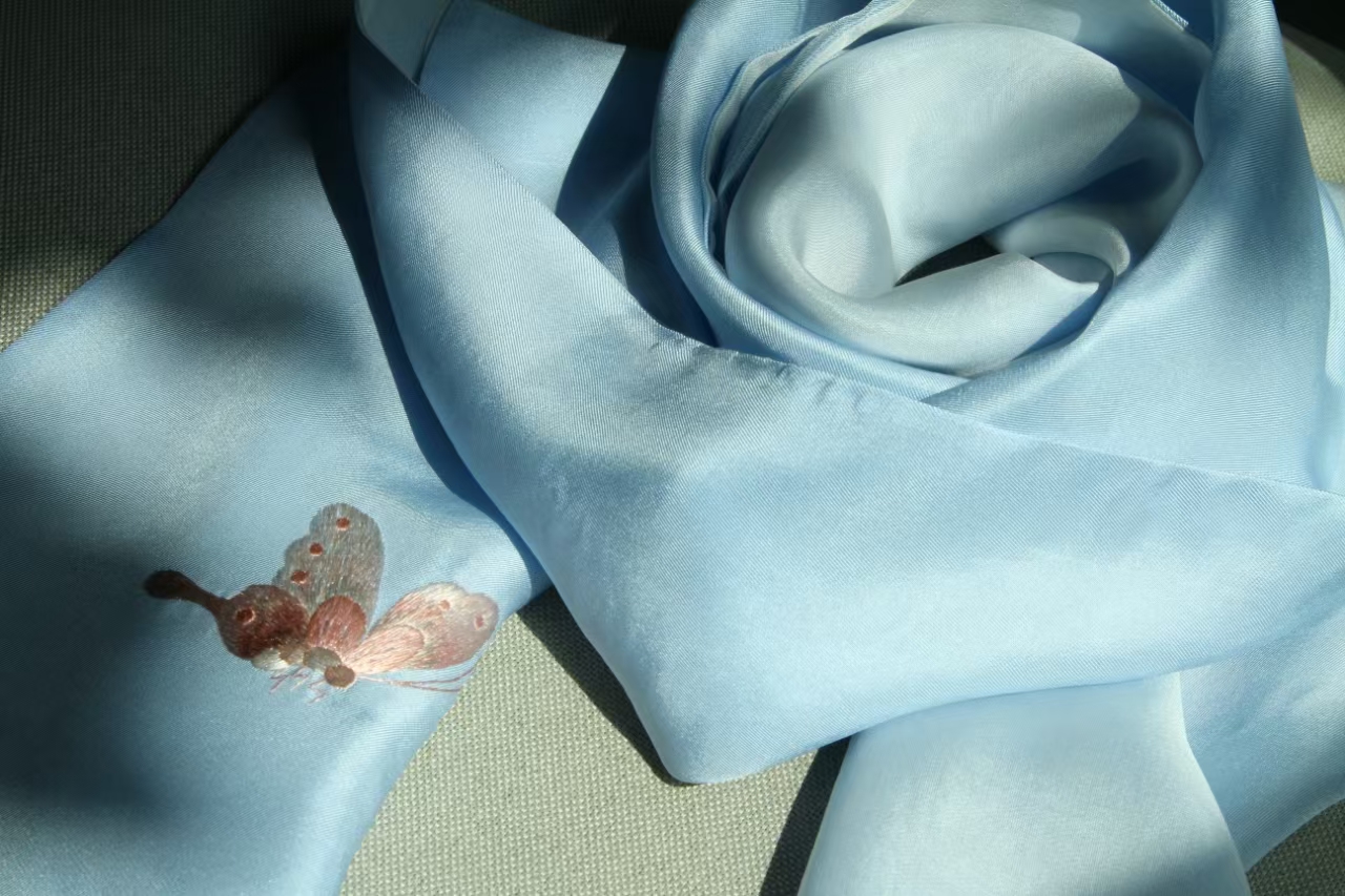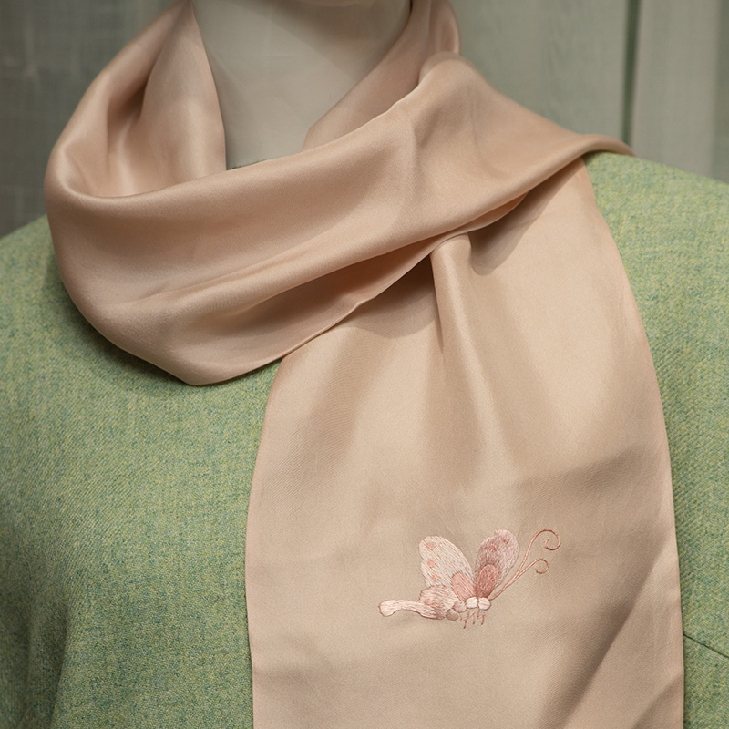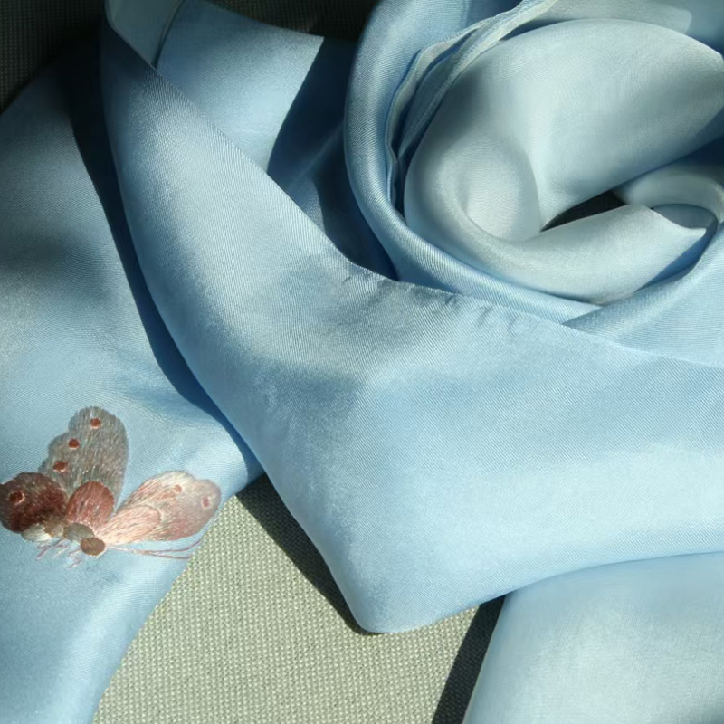 手工刺绣蝶舞天涯 斜纹真丝围巾