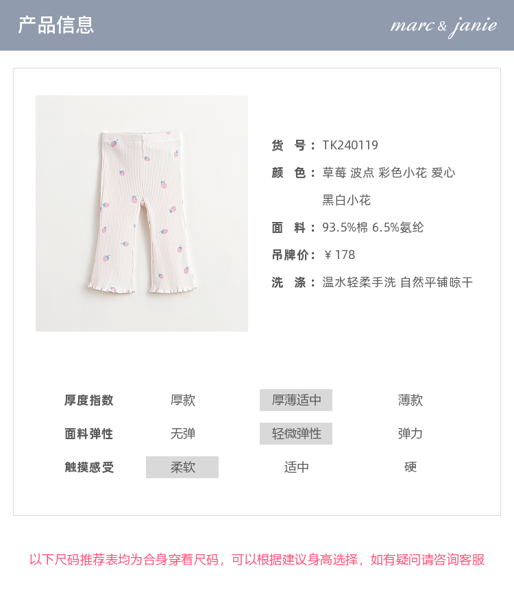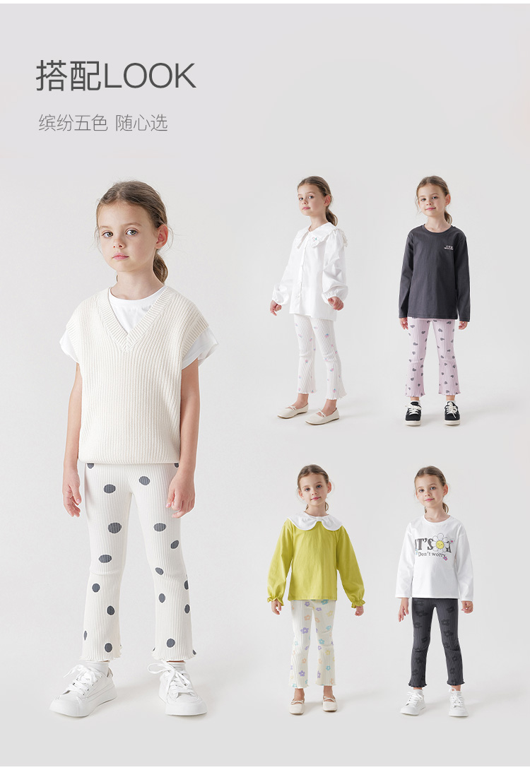 马克珍妮女童无感印花弹力打底裤 儿童喇叭裤春装新款裤子240119