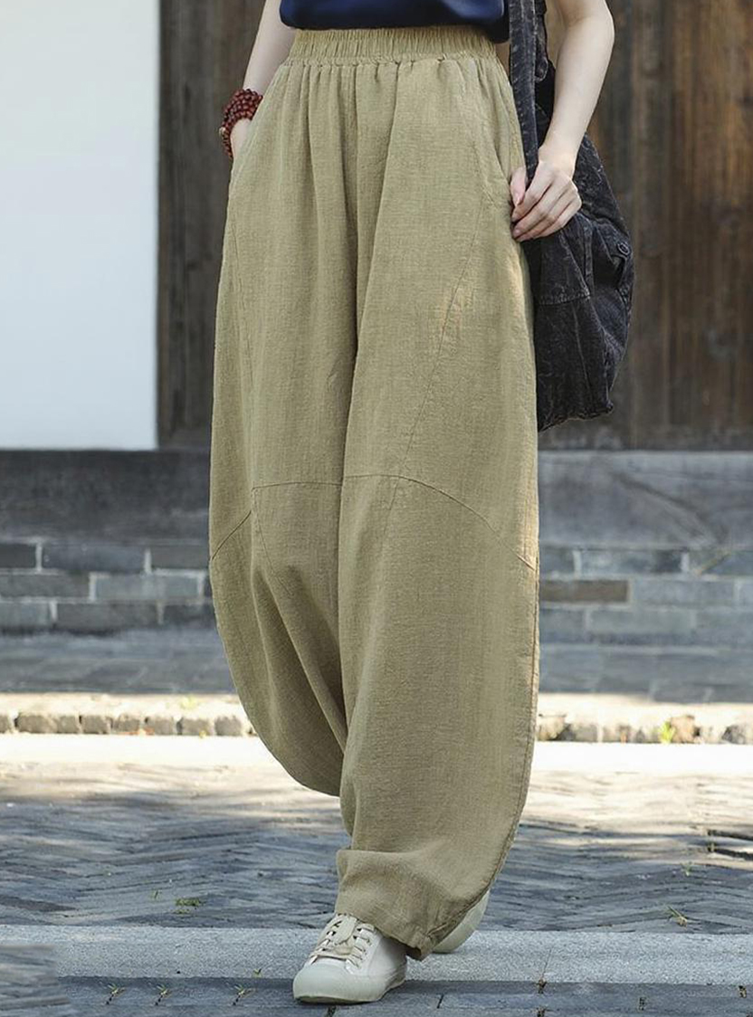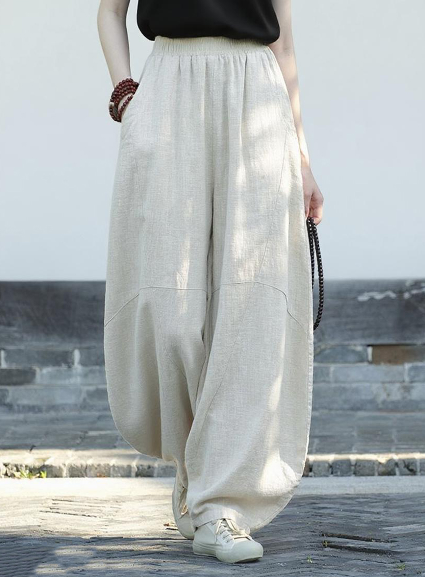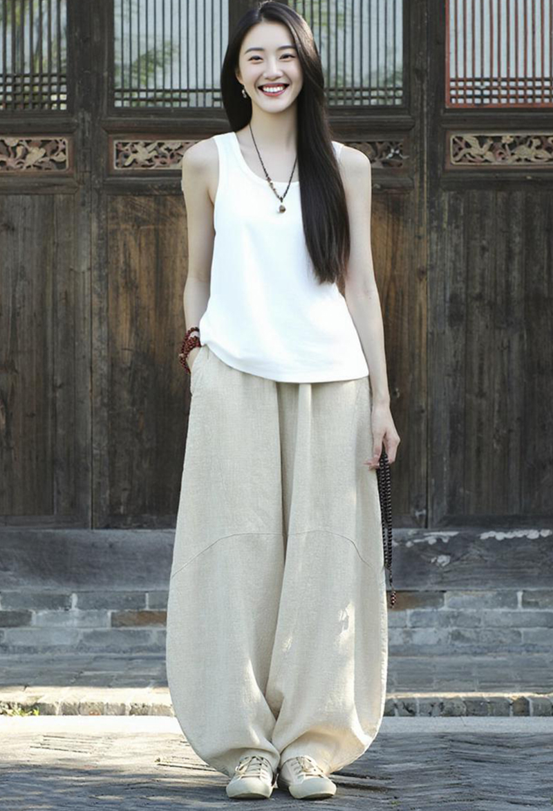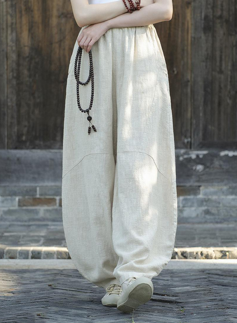 臣禾 【棉麻灯笼裤】71.5%苎麻28.5%棉松紧腰休闲裤 JZ253061075