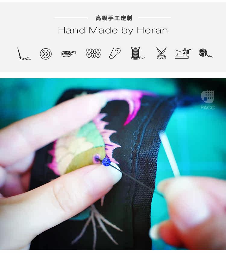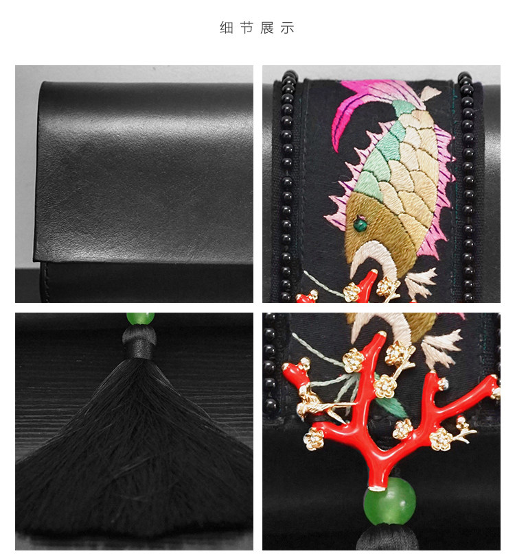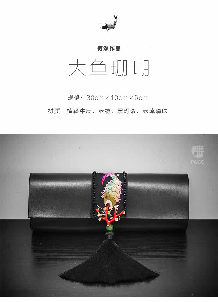 艺术家独立设计师何然 高级定制 刺绣牛皮 手工手拿包 女中式文艺
