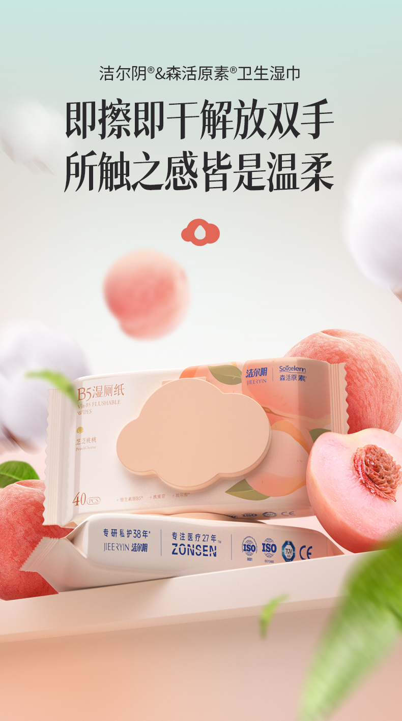 【99.9%杀菌】洁尔阴*森活元素湿厕纸湿巾40抽*12包
