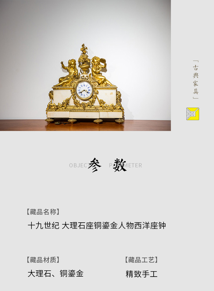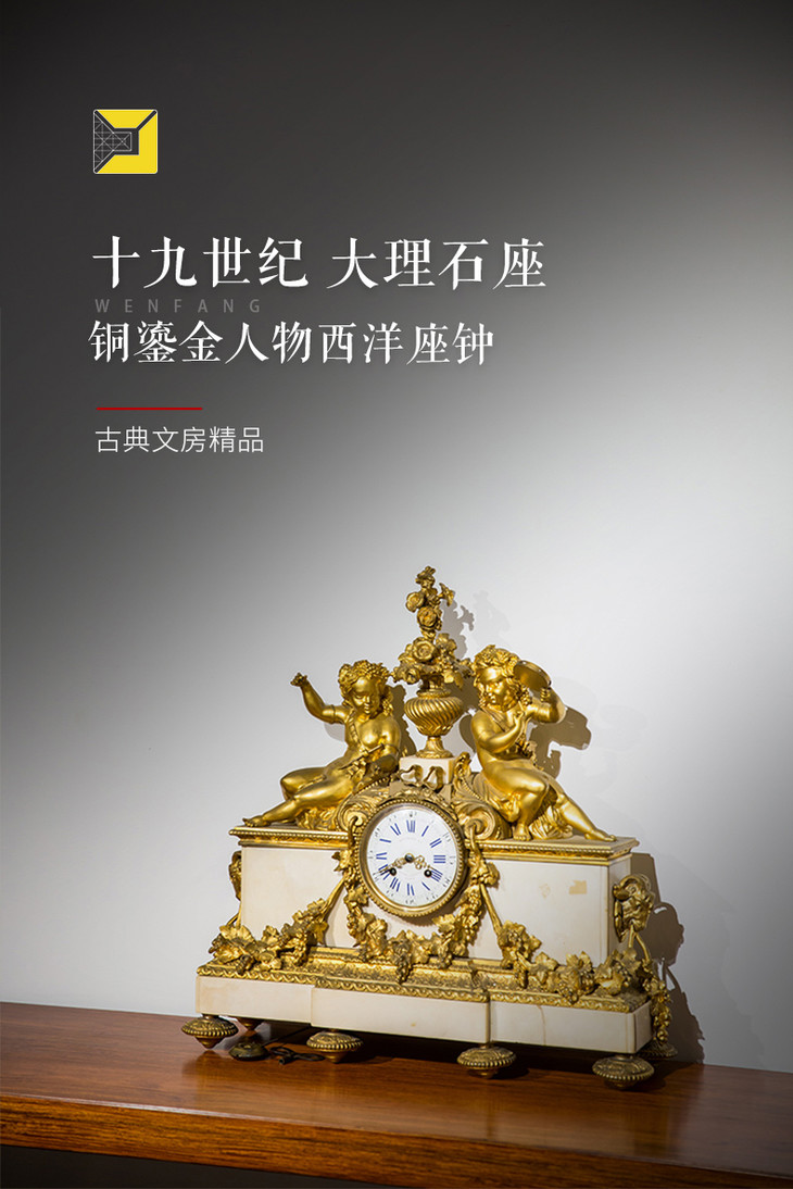十九世纪 大理石座铜鎏金人物西洋座钟