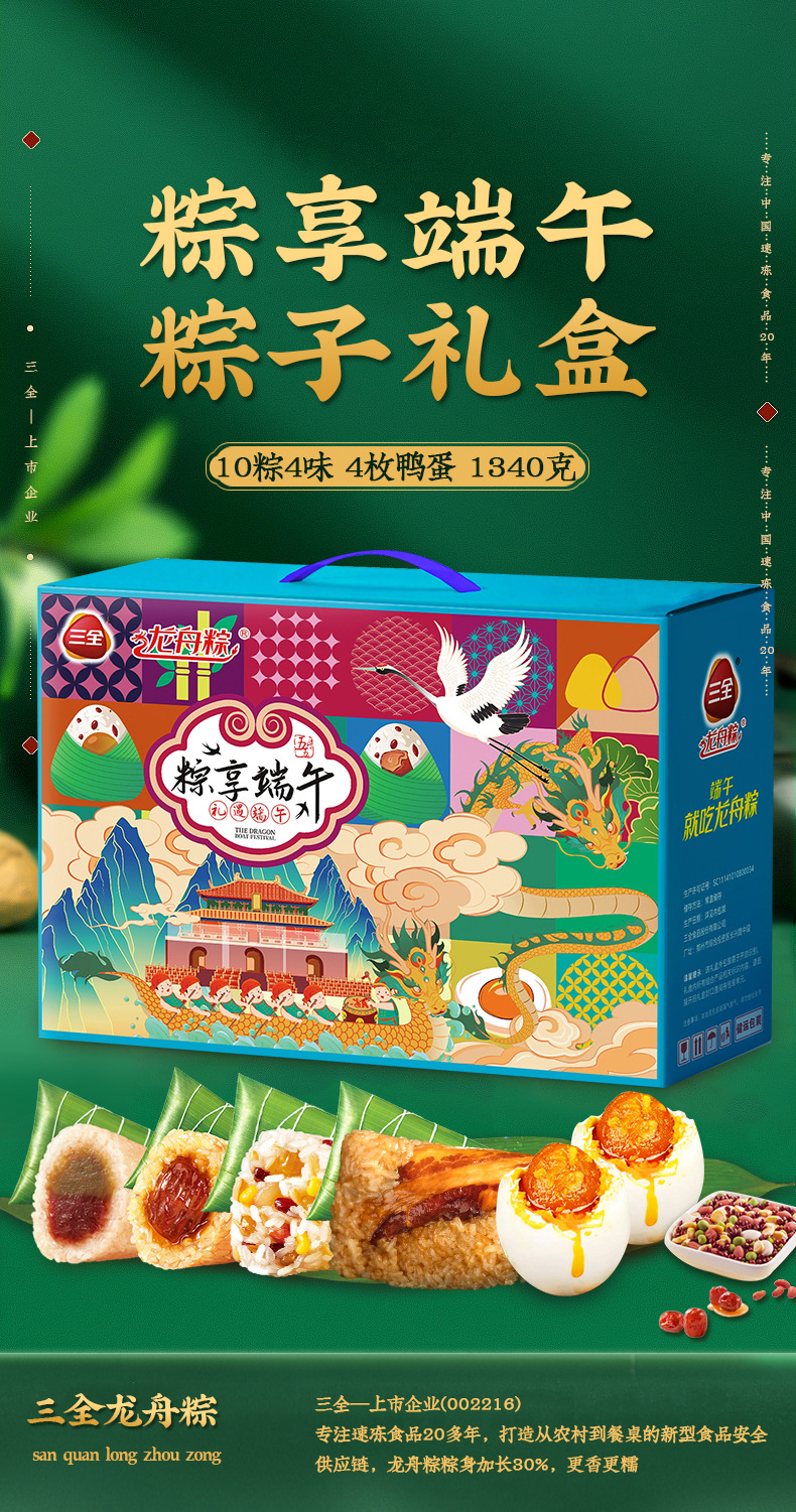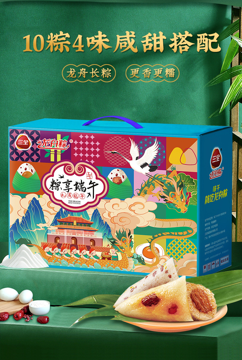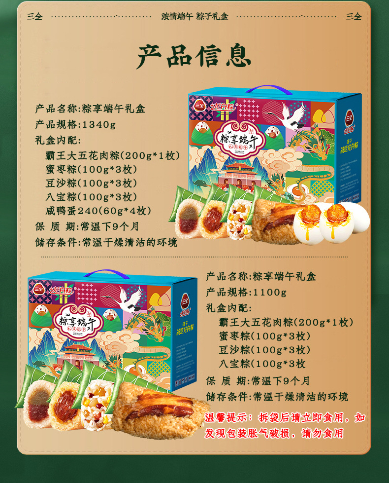 【端午新品来袭!八宝粽、蜜枣粽,口感鲜美~】三全国潮礼粽1100g 蜜枣粽八宝粽霸王肉粽 端午粽子礼盒装 团购礼品-QQ
