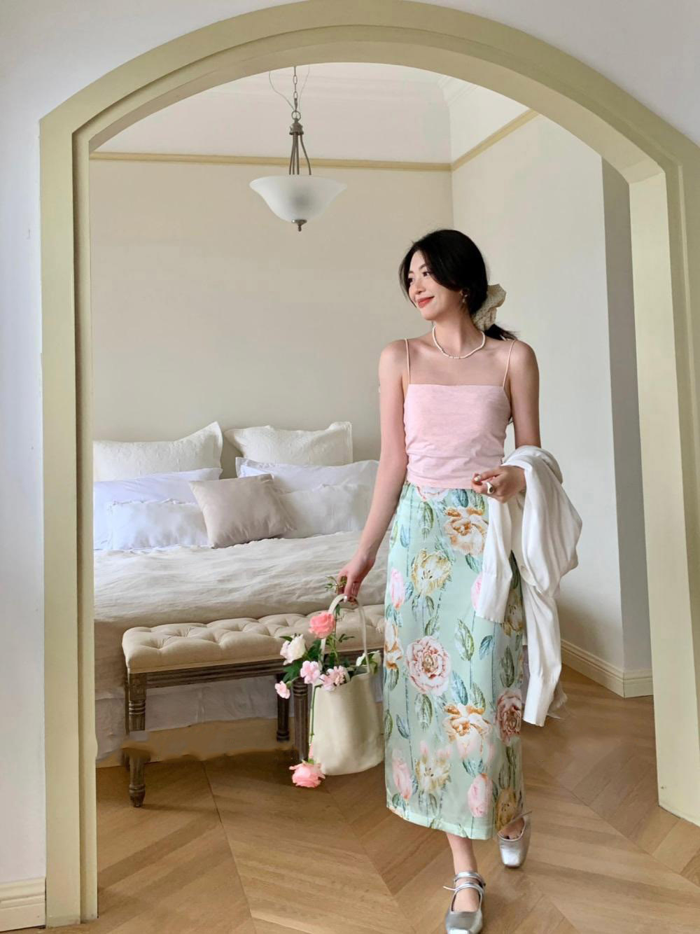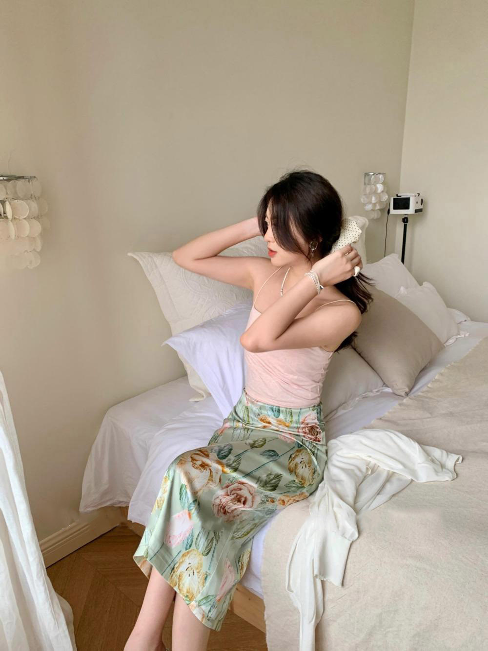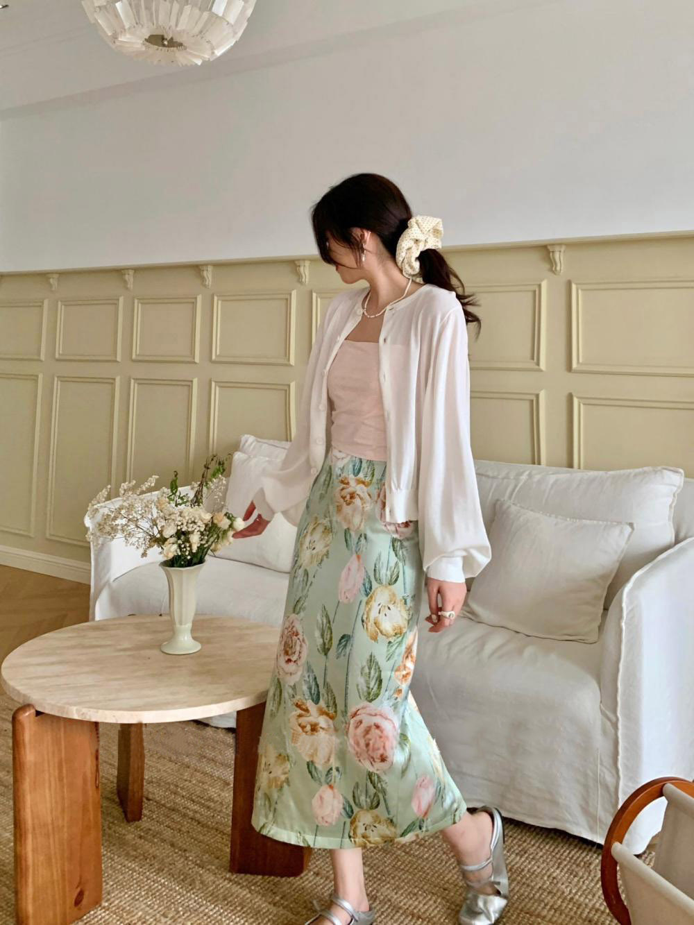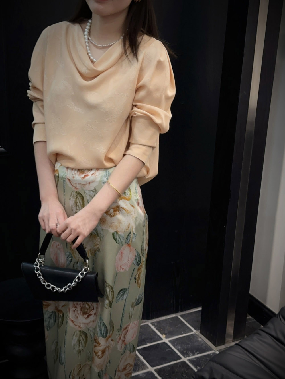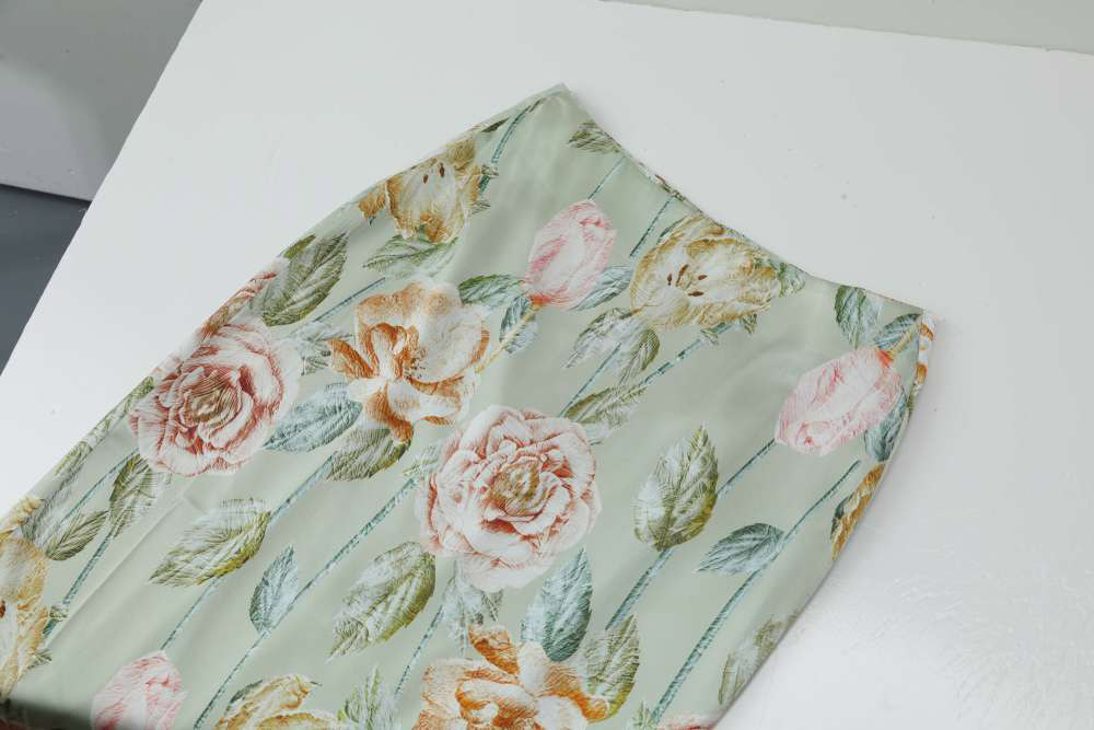 洛诗琳11211气质印花半裙2025夏季新款蔷薇印花真丝半裙女1122