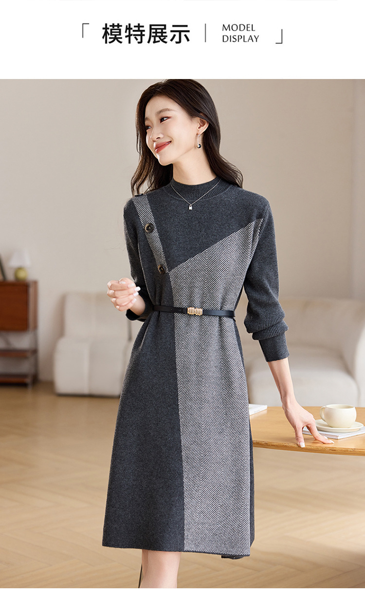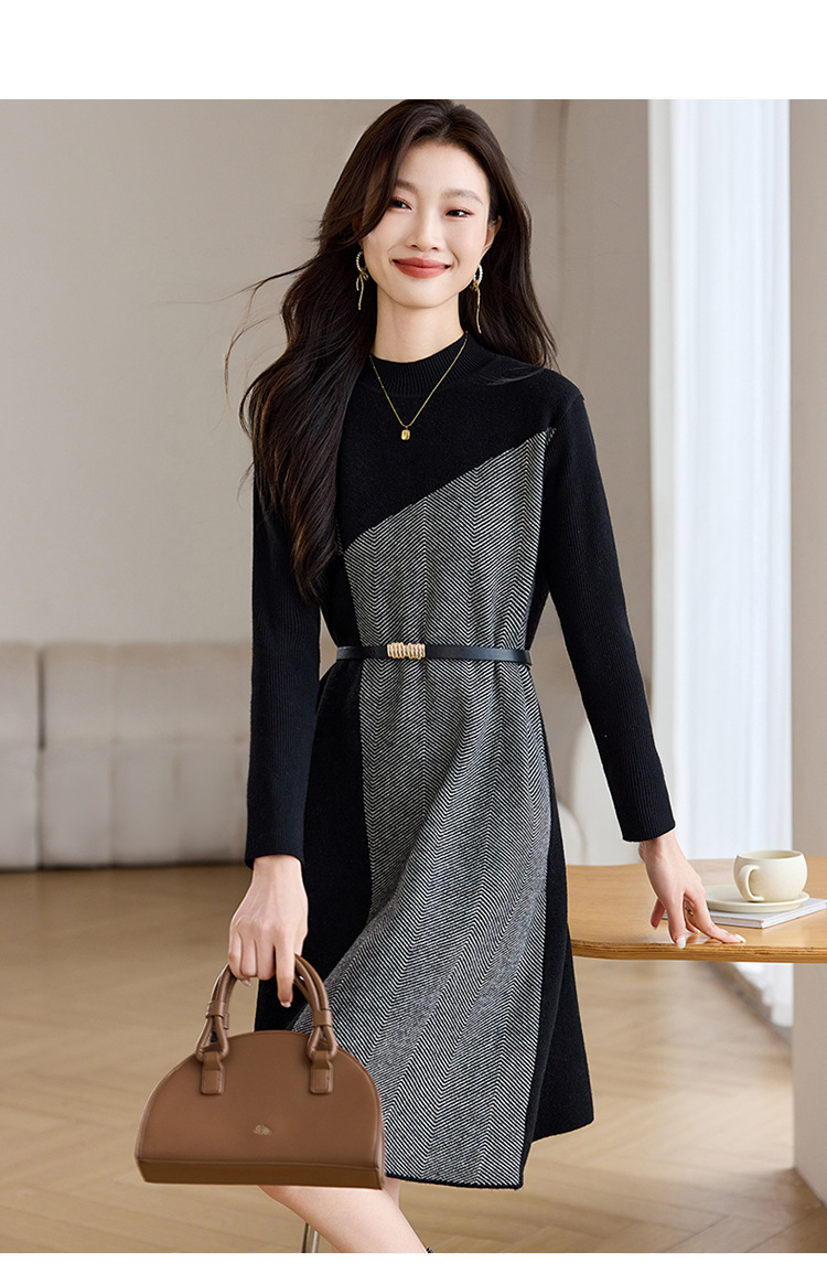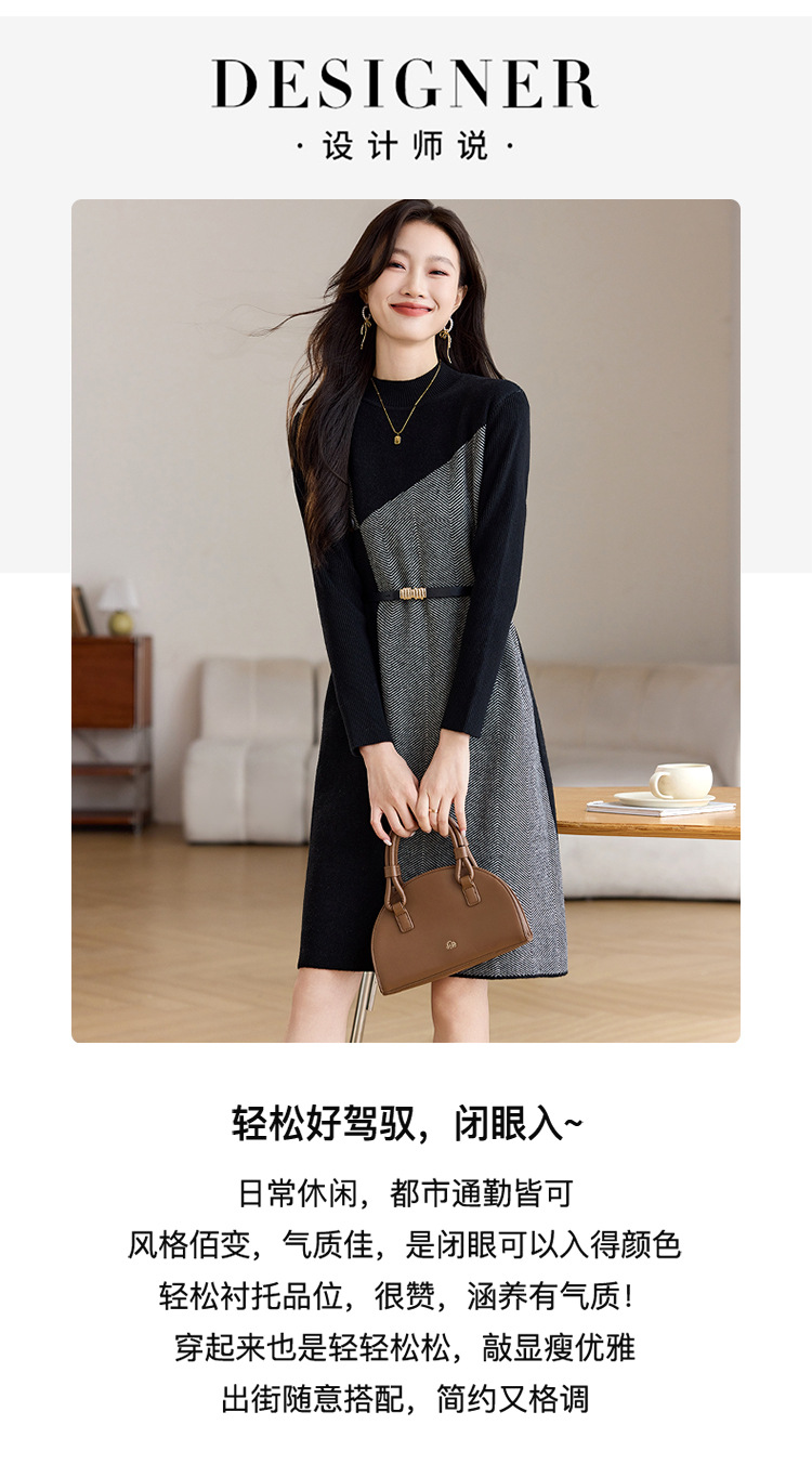 CC-ML-9913气质针织连衣裙女秋冬2024新款洋气小个子内搭气质毛衣裙打底裙