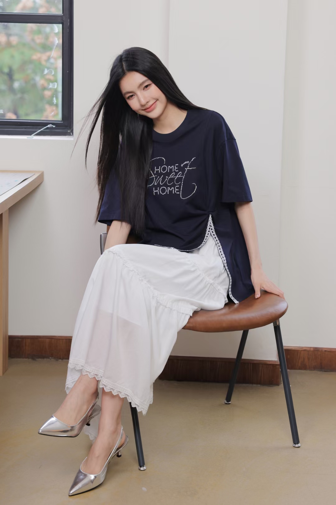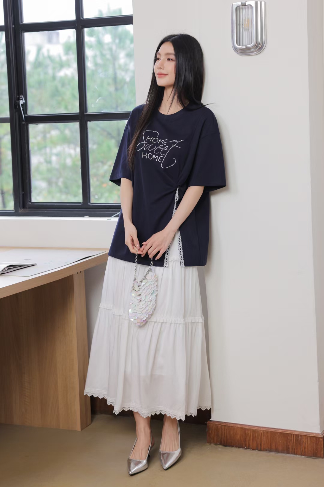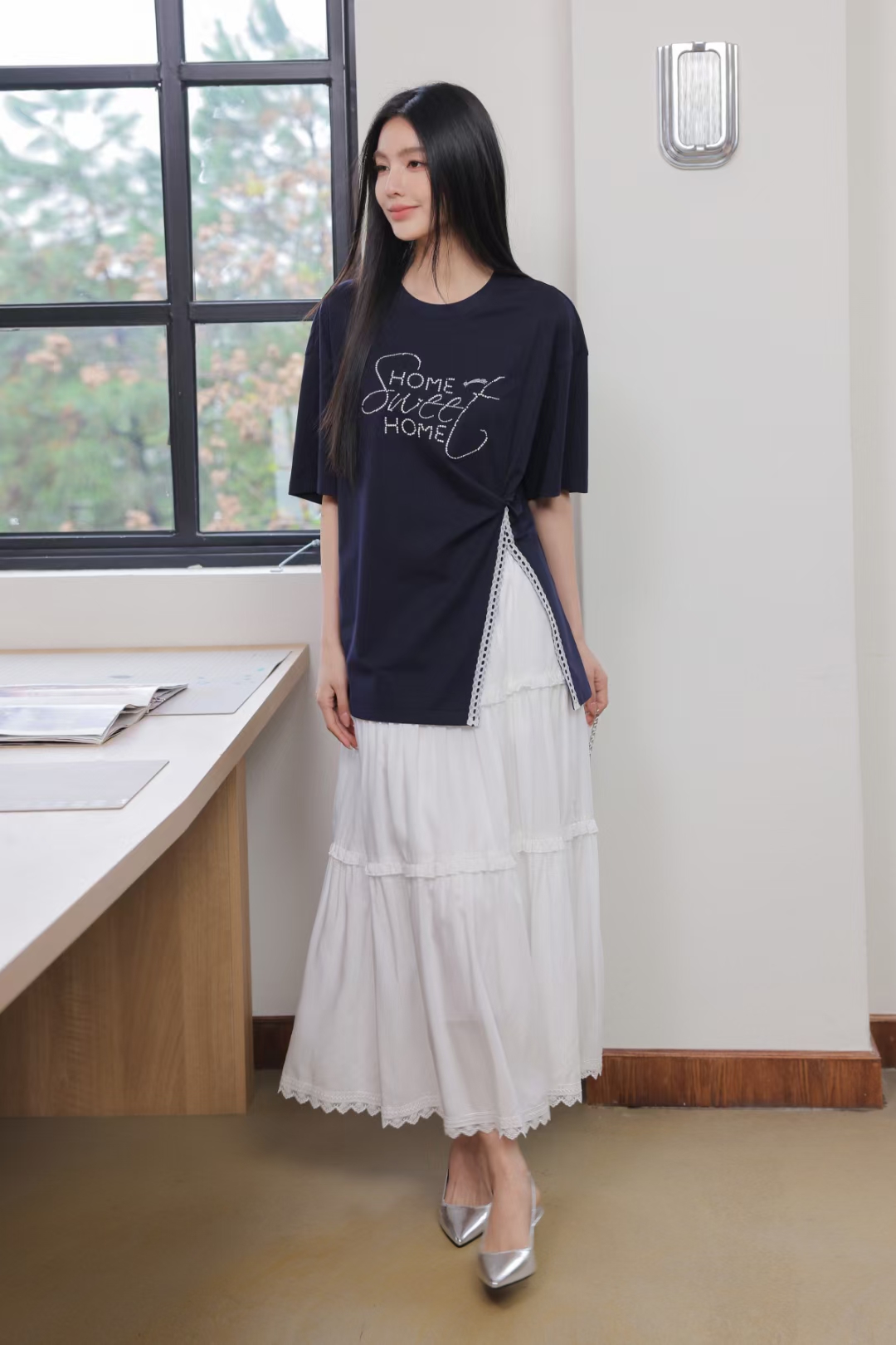 章那汀 中长款设计感开衩T恤5A21T58270/451897预售