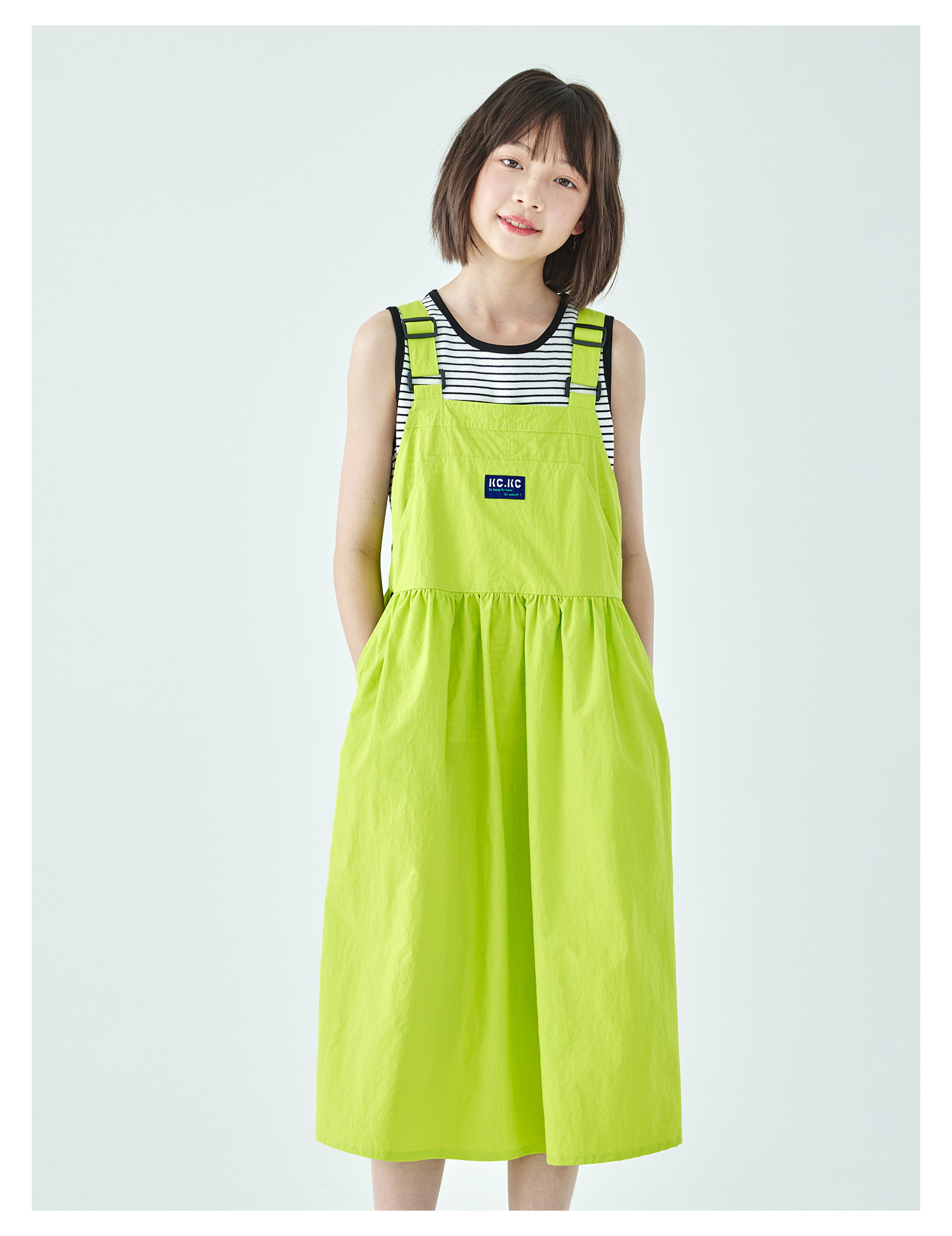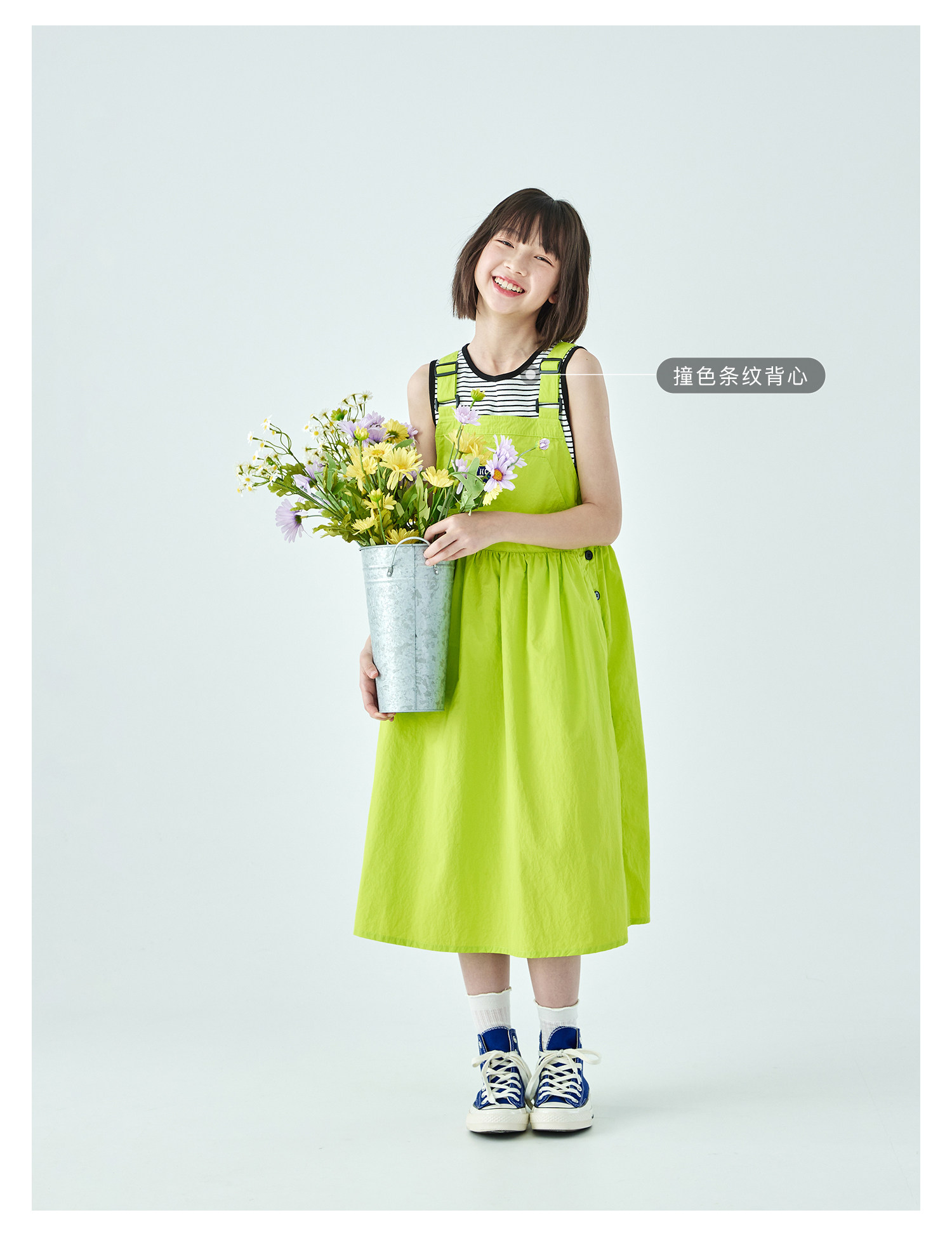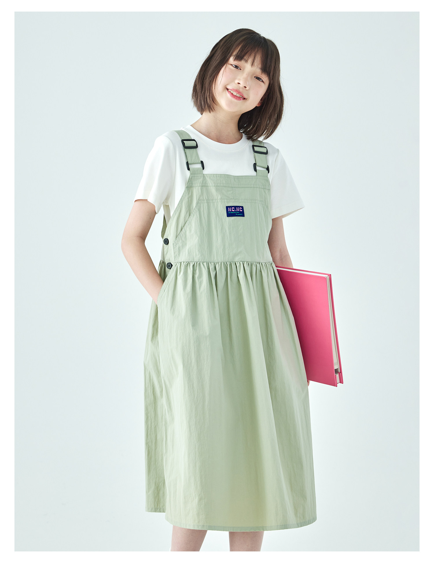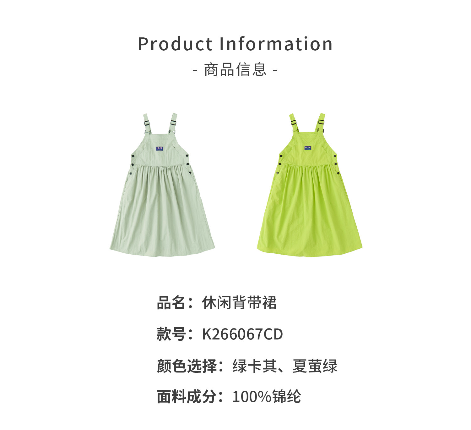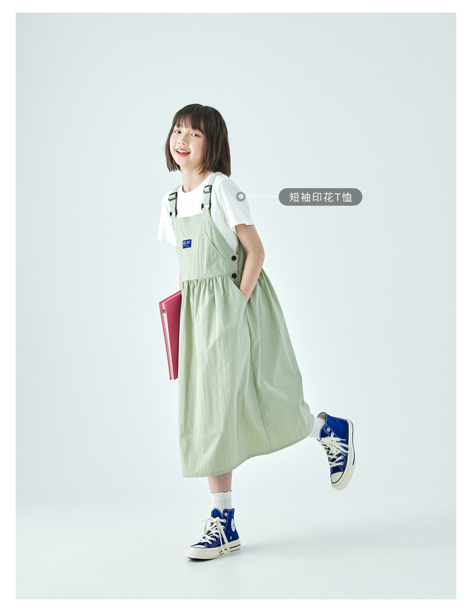 棵初26年夏季新款中大女童工装风尼龙背带裙轻盈可调节肩带A字裙