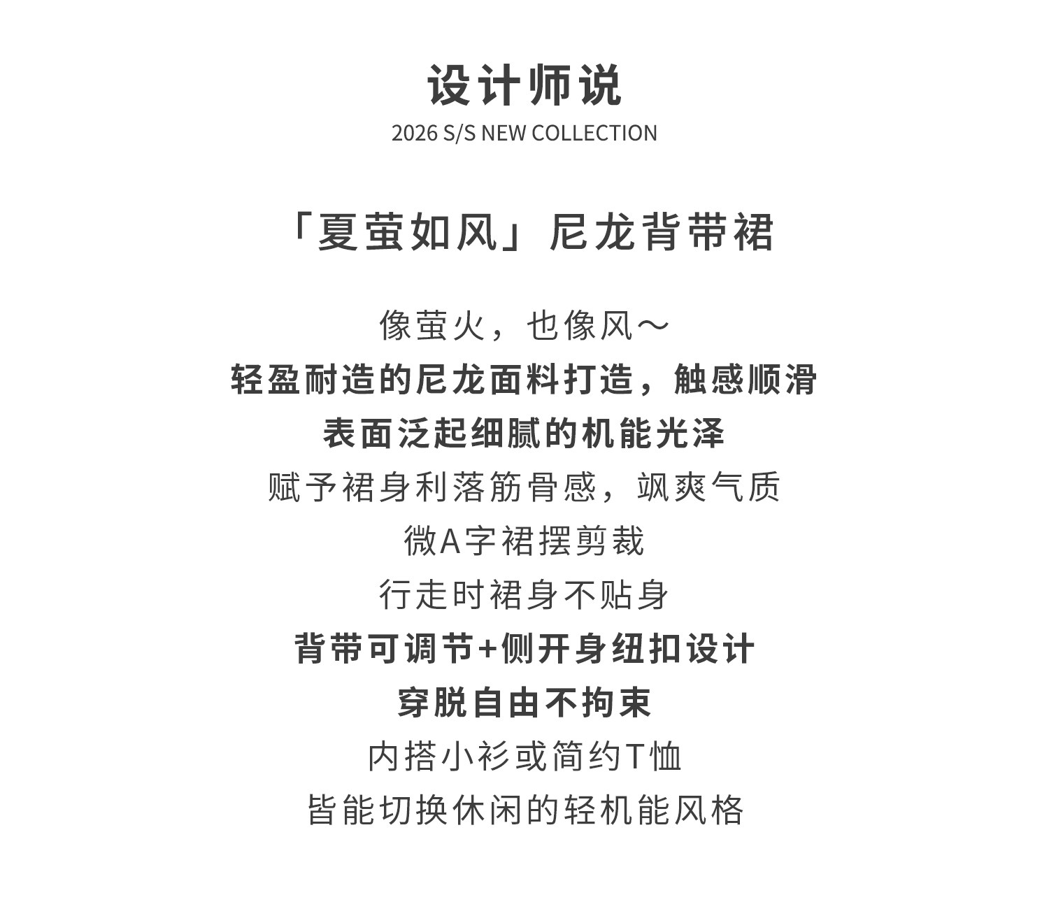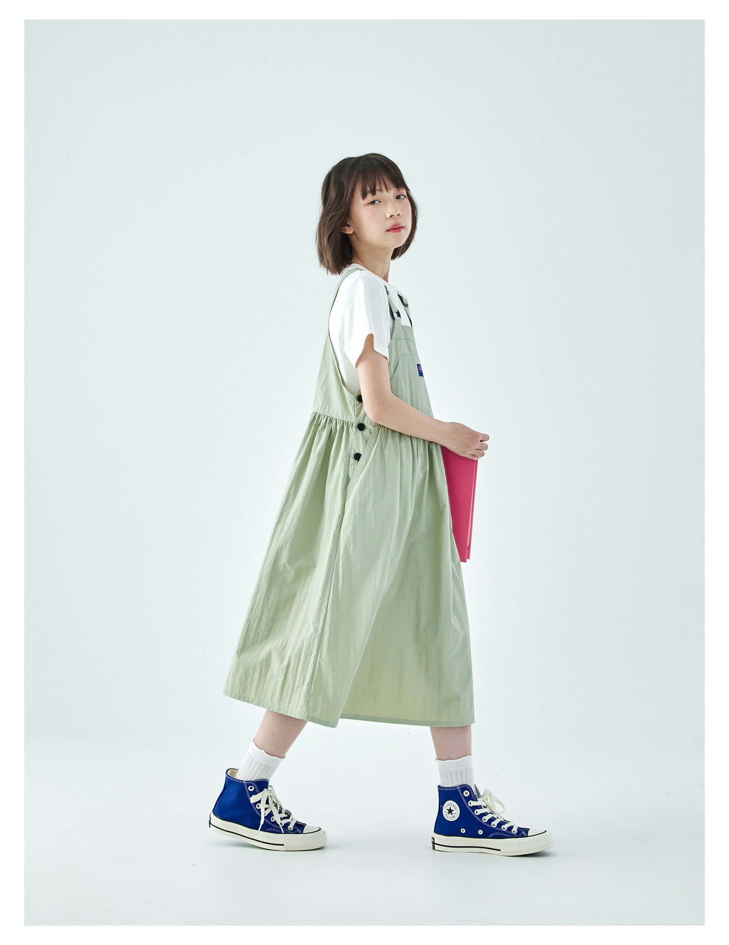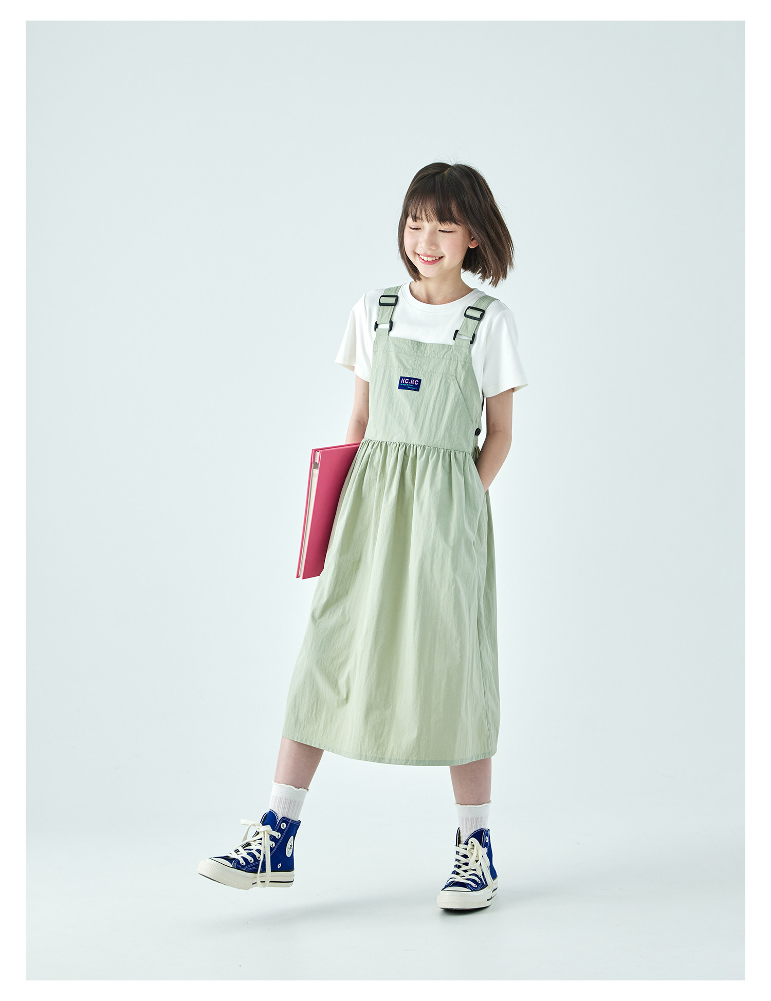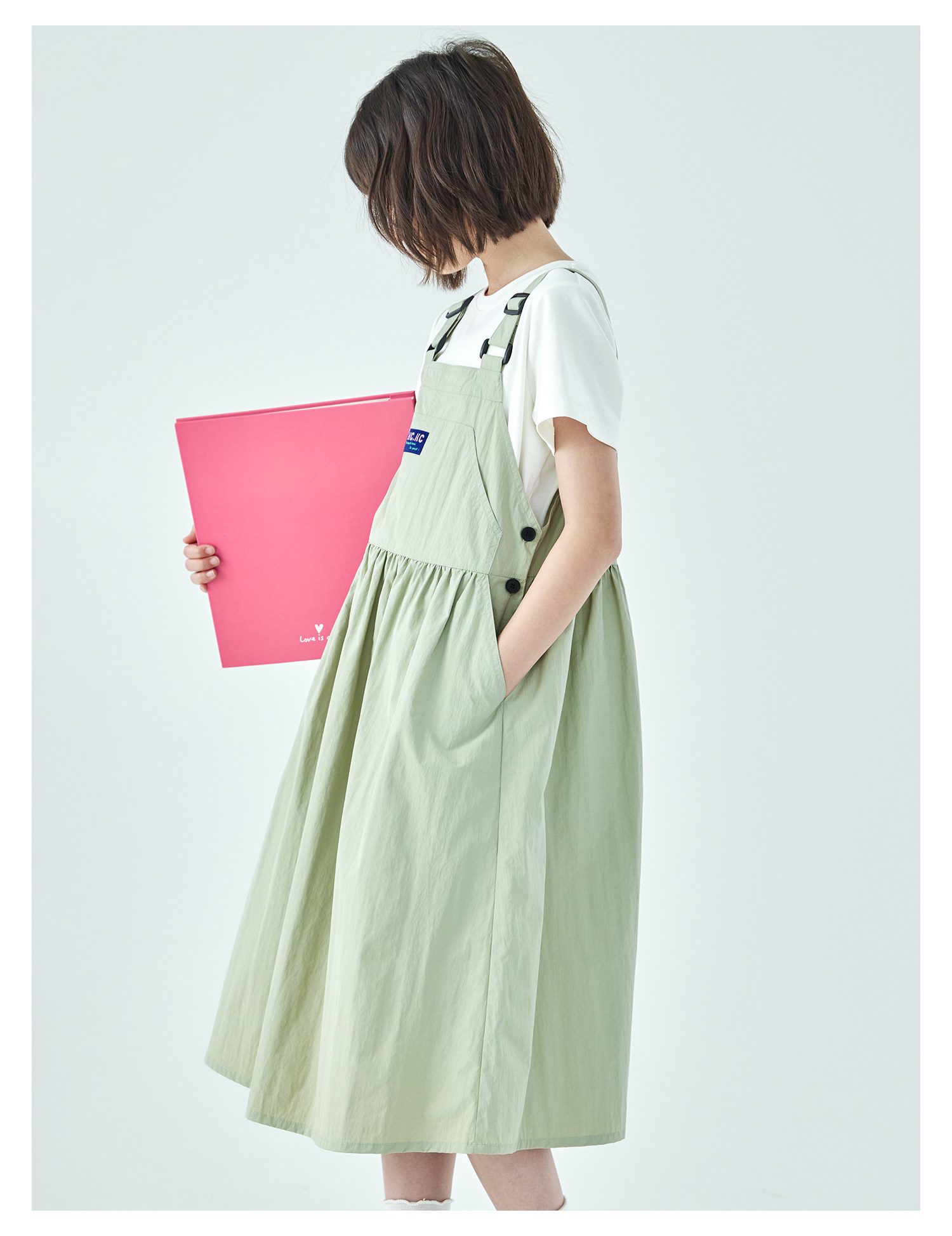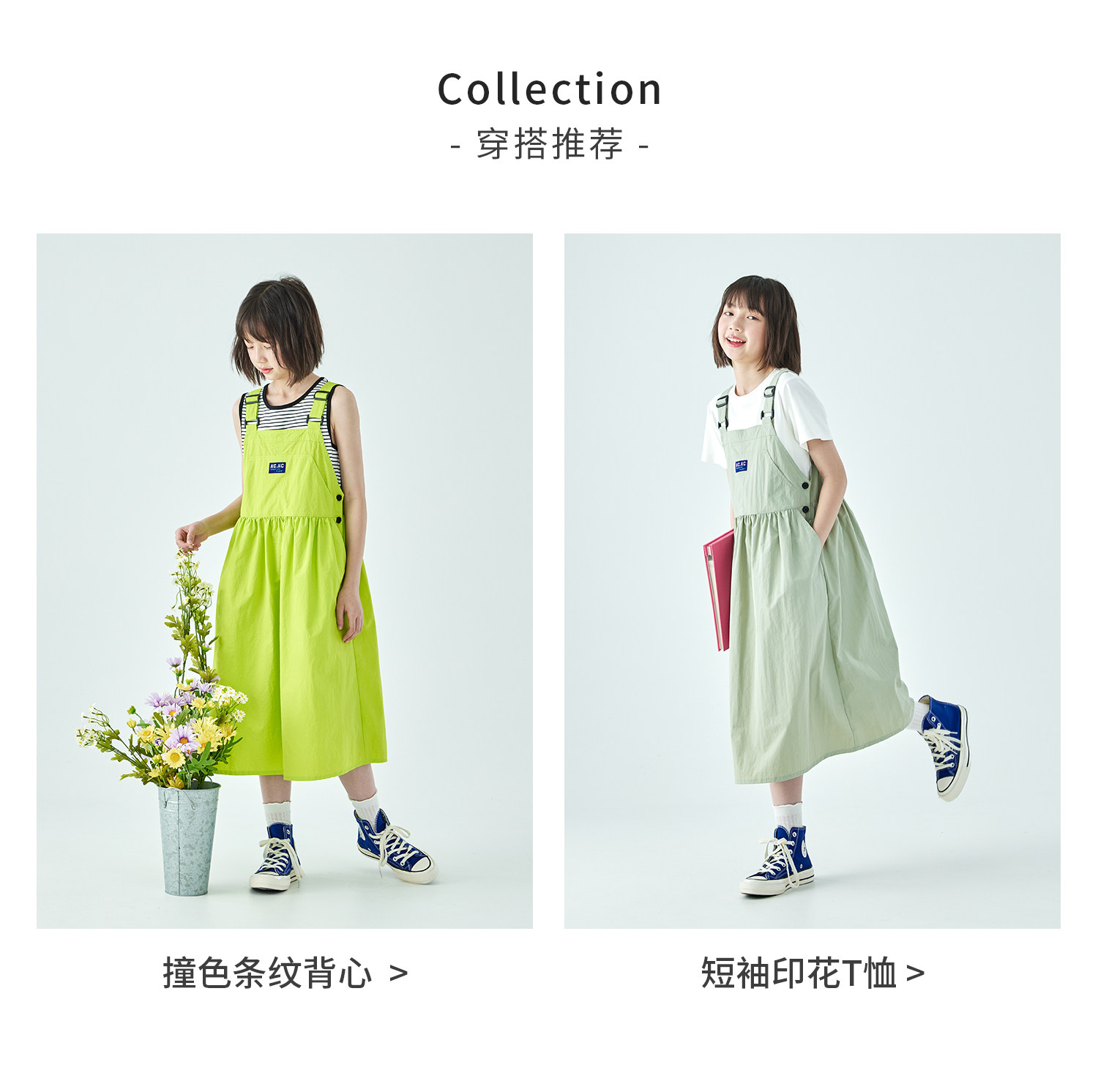棵初26年夏季新款中大女童工装风尼龙背带裙轻盈可调节肩带A字裙