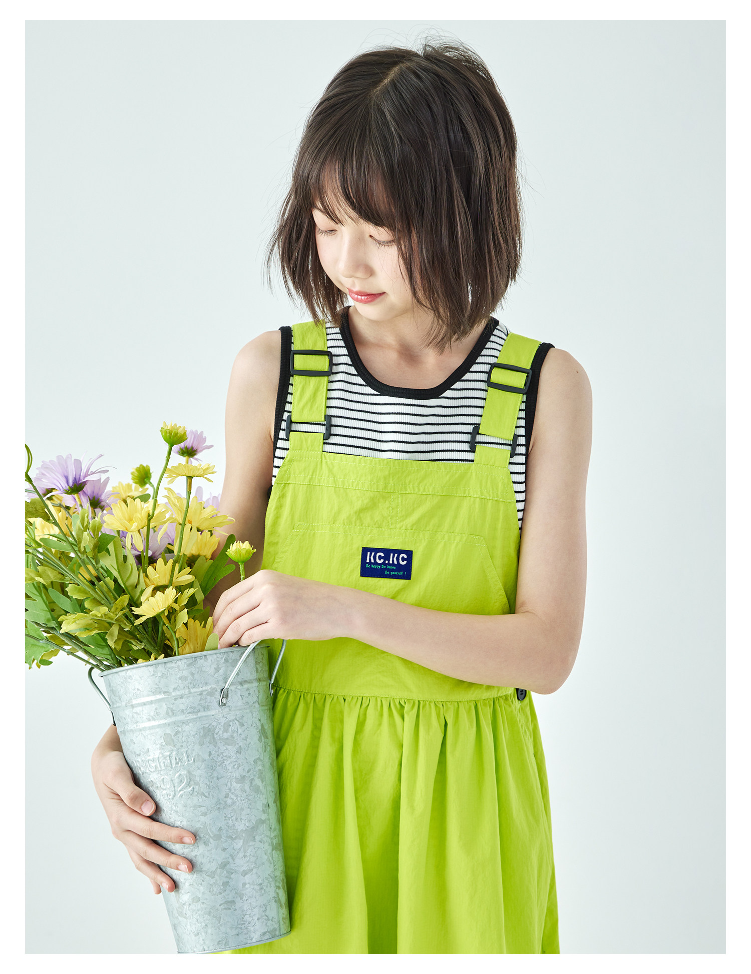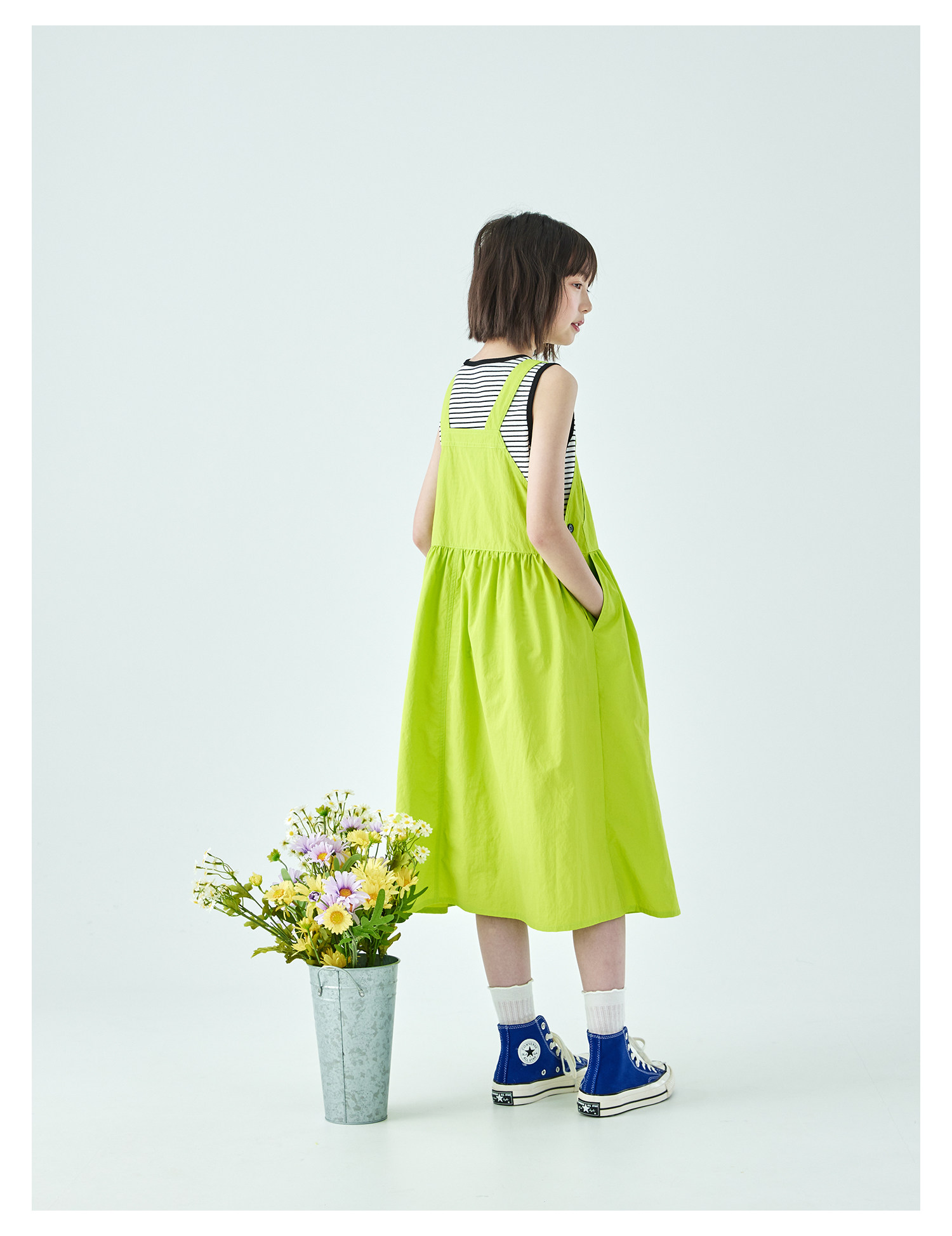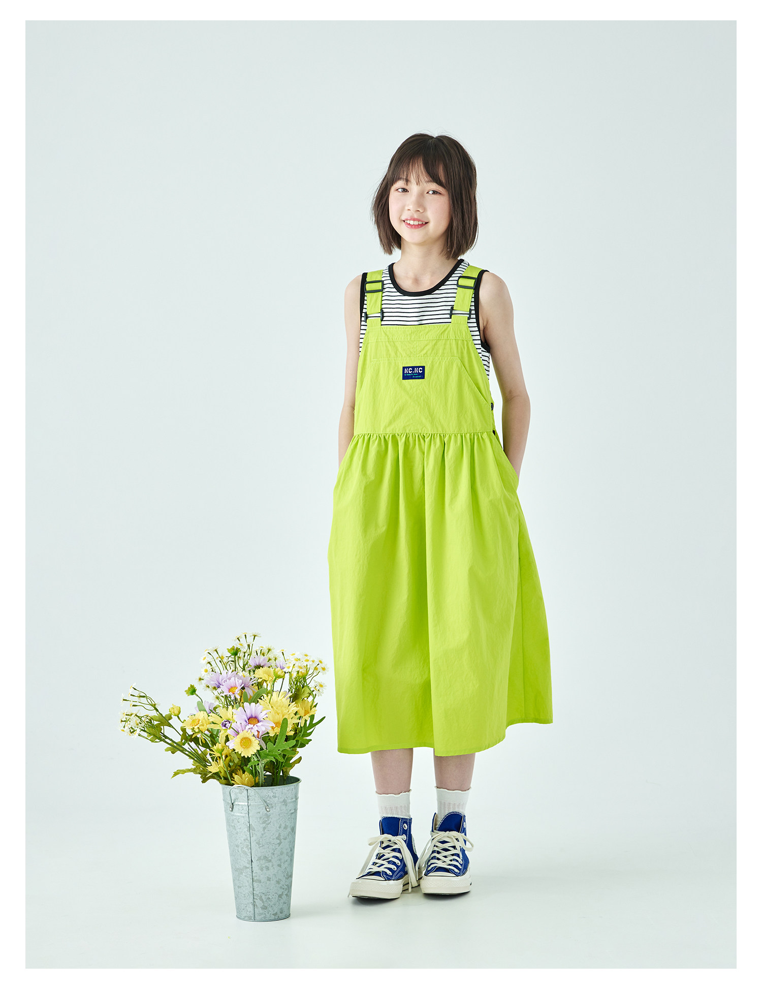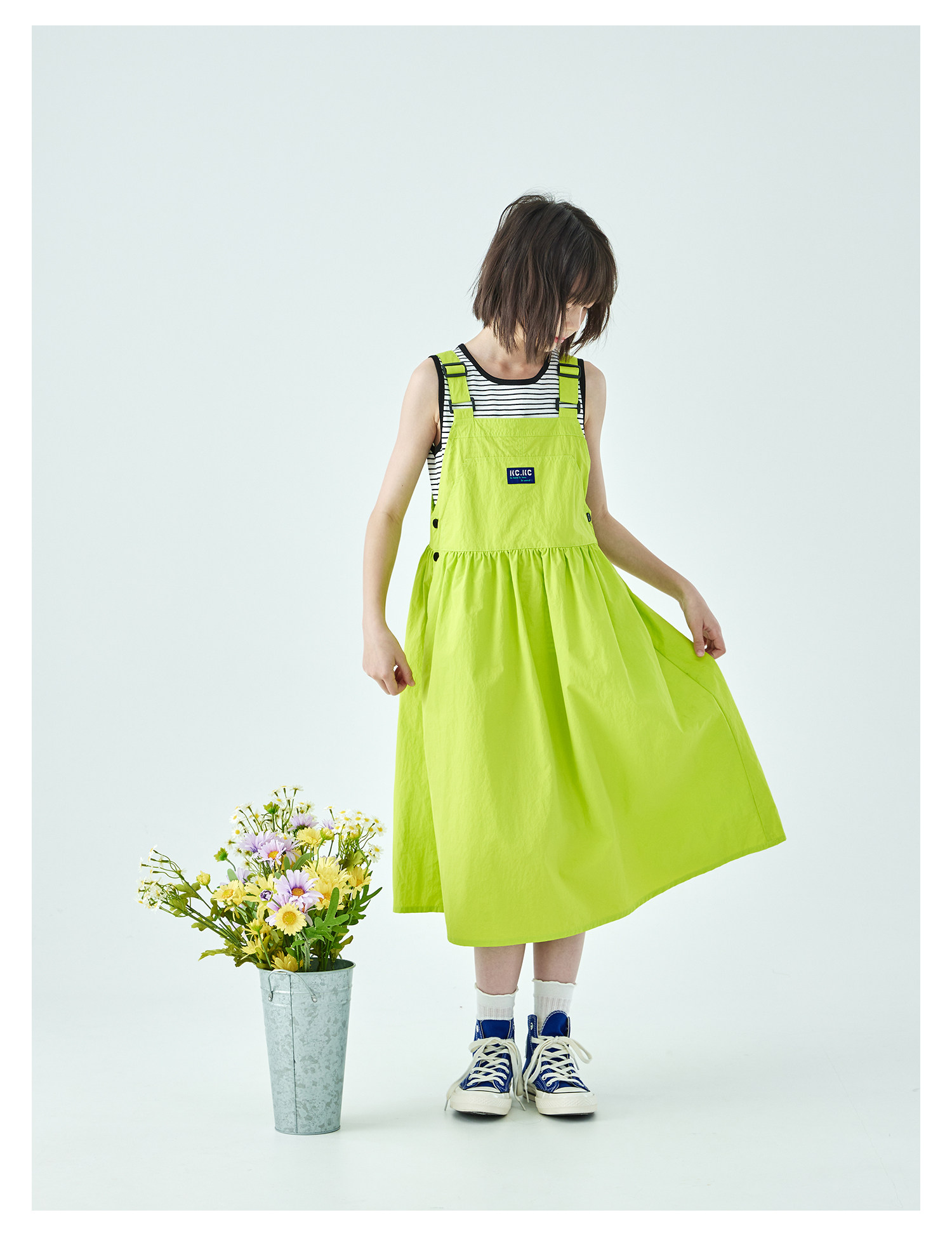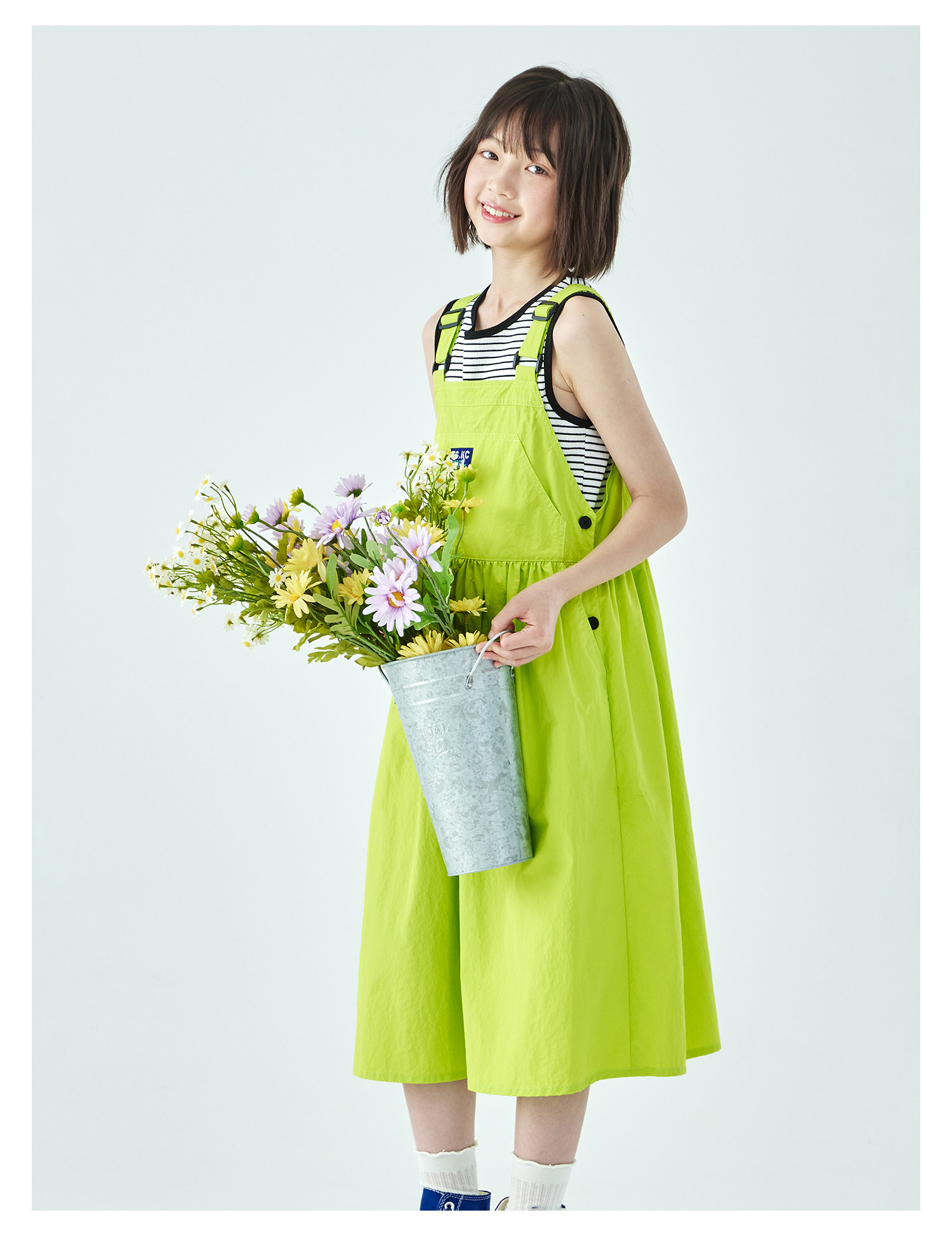 棵初26年夏季新款中大女童工装风尼龙背带裙轻盈可调节肩带A字裙