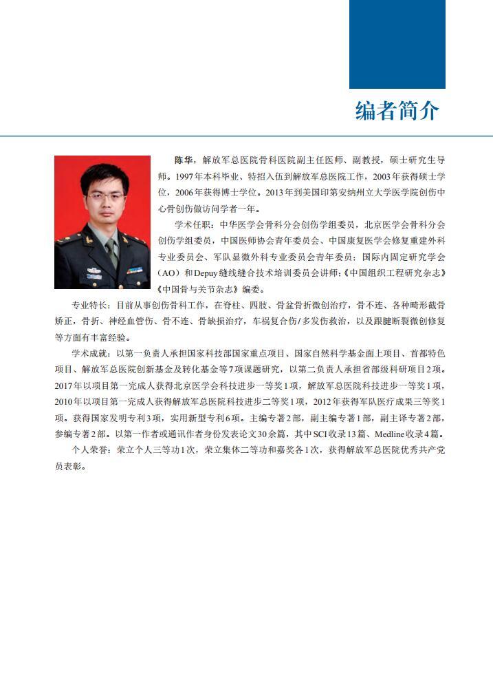 我与唐佩福教授相识十几年,他睿智、敏行、敢为、实干,不愧为我国创伤骨科领域新一代的中坚力量。陈华教授是一位非常有才华的中青年专家,辛勤的耕耘必将有所收获!我再次衷心祝贺这部专著的出版,并真诚期待以唐佩福教授为首的解放军总医院骨科团队出版更多高质量的学术著作,服务于骨科医生,造福于广大患者。