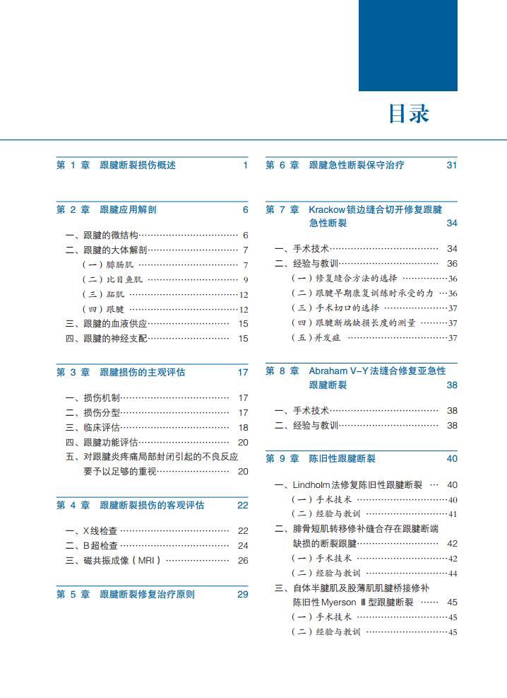 第一,详细阐述了跟腱断裂治疗的基本理论和关键技术,从基础解剖、生物力学、诊断分型、治疗原则到术中缝合方式选择、手术技巧、完整病例展示等方方面面,无不详细,可谓理论、实践有机结合,相得益彰。
