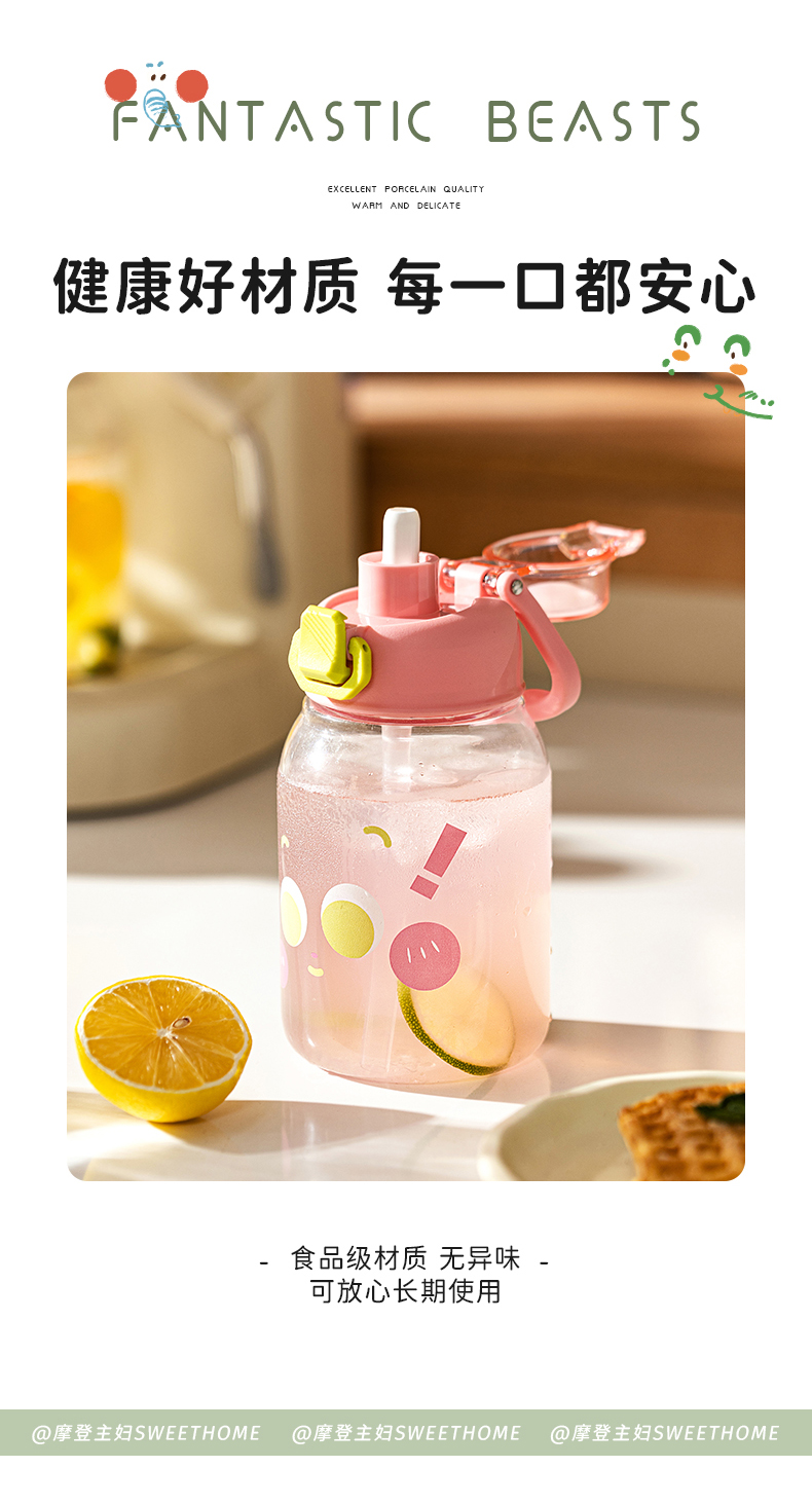 摩登主妇吸管杯子夏天饮水壶女幼儿园高颜值便携儿童上学专用水杯