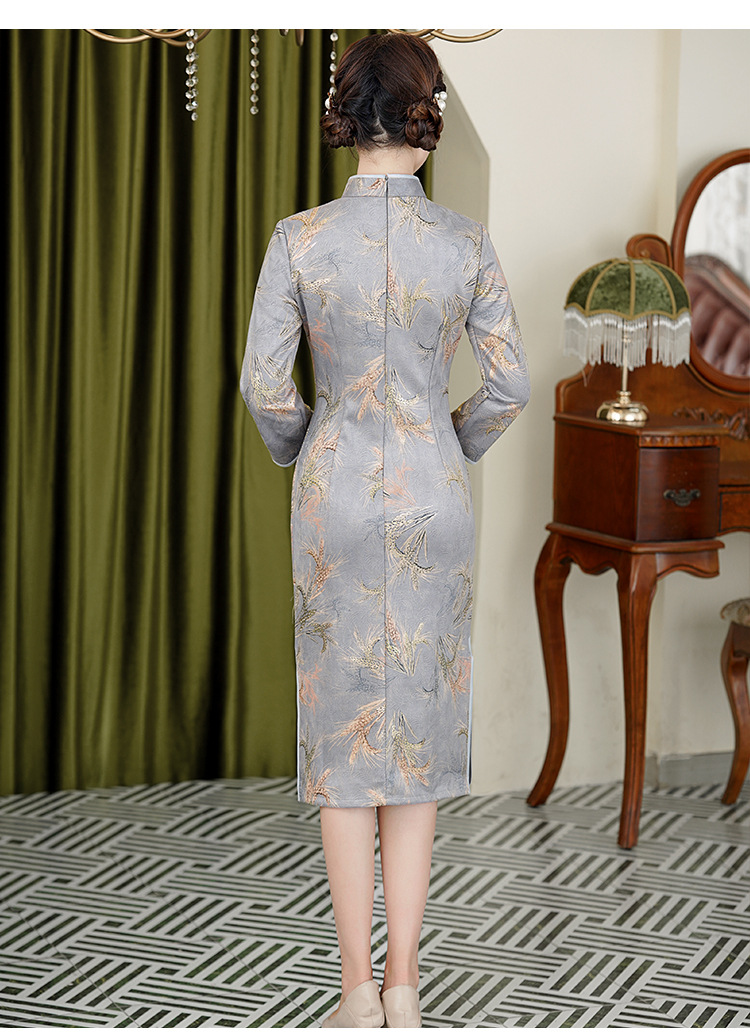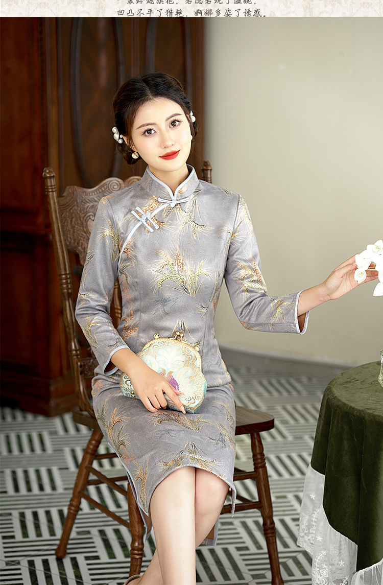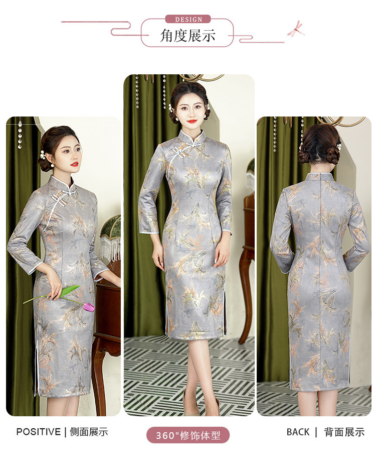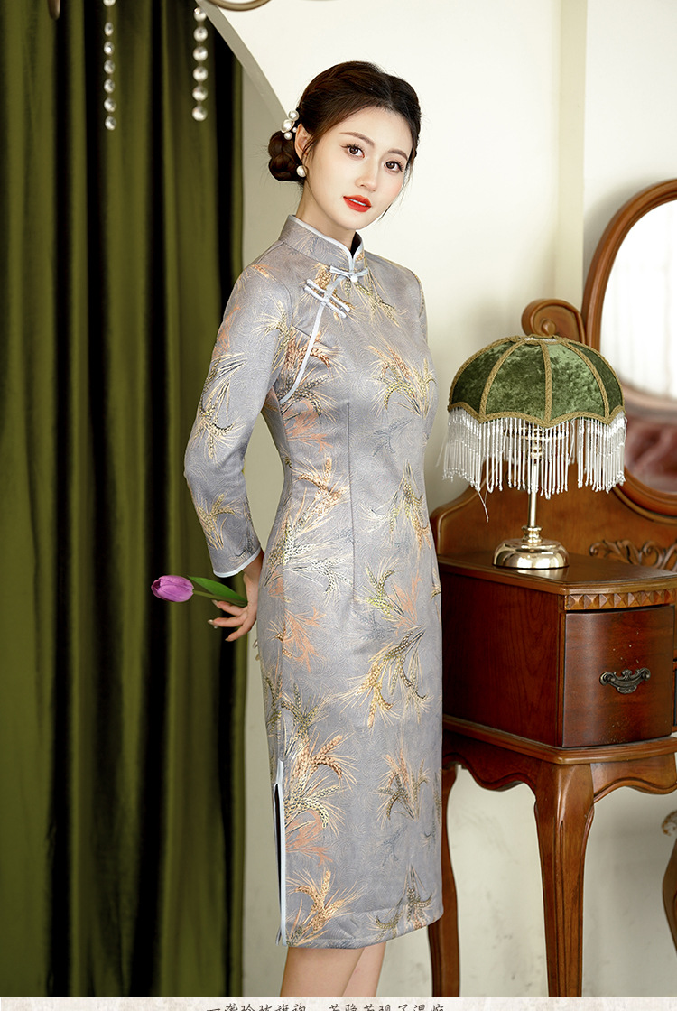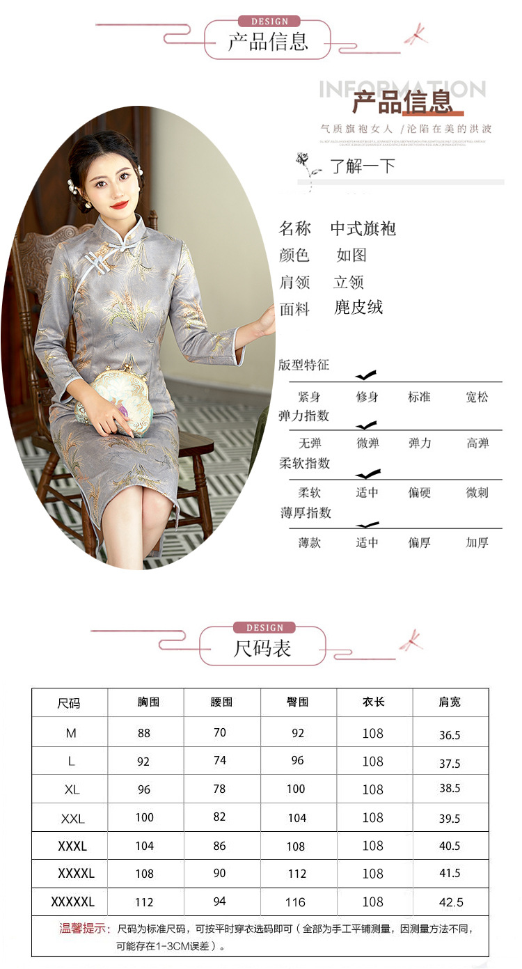 麦穗春秋年轻八分袖中式麂皮绒妈妈改良日常可穿旗袍MX-70110
