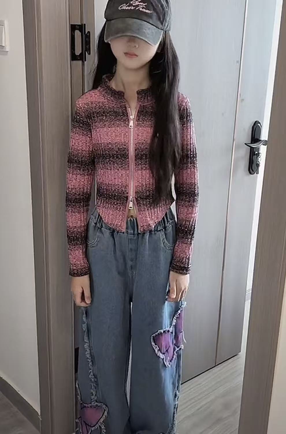 【孤品捡漏】G181女童渐变短款拉链针织衫-喜出