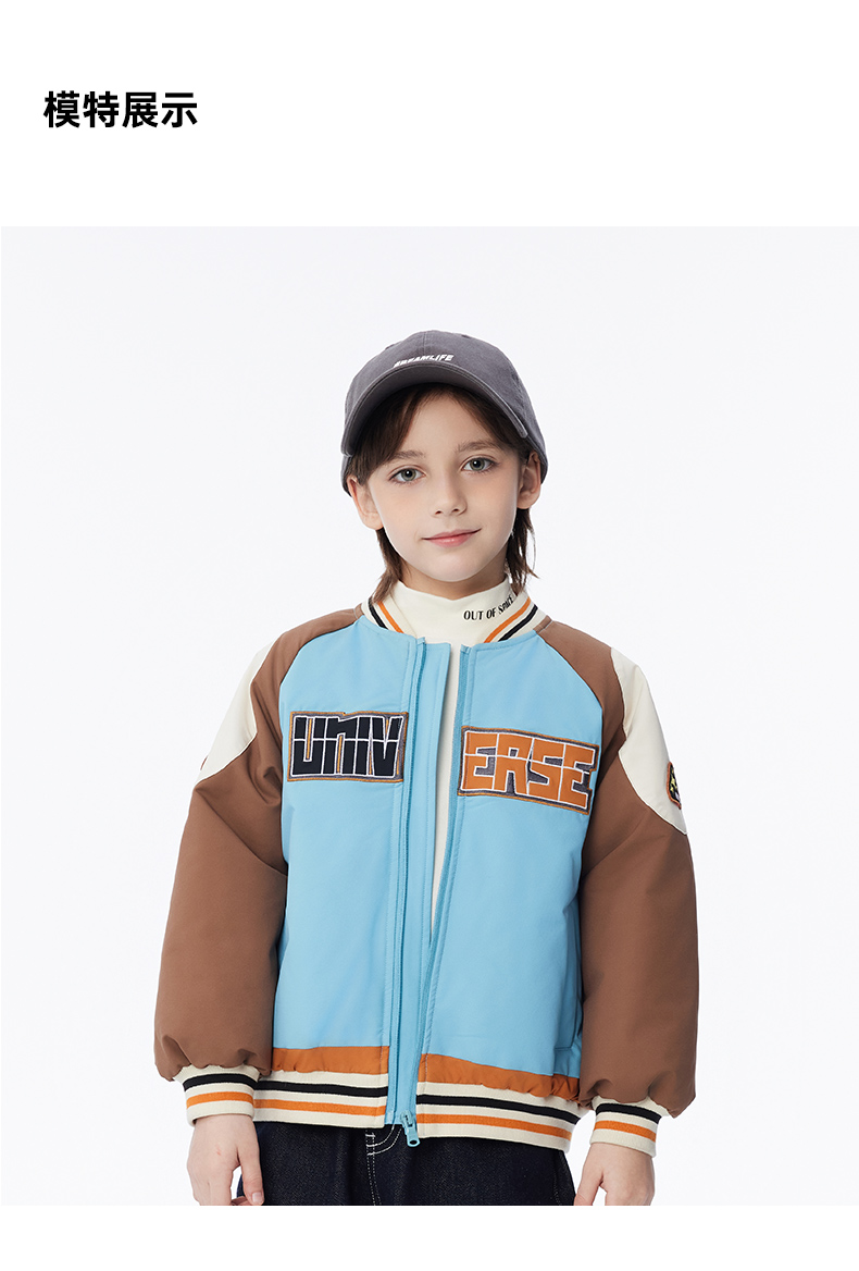 【秒】【MQD】男童潮酷贴布绣保暖舒适棒球领羽绒服