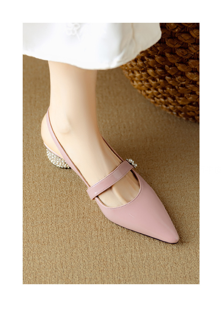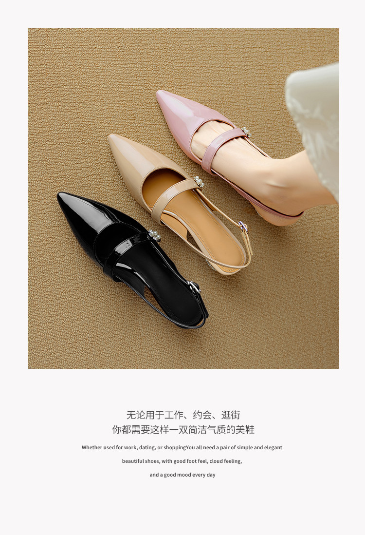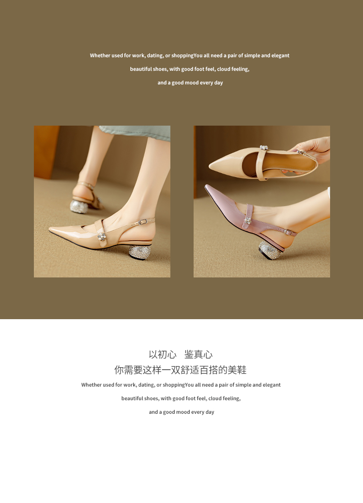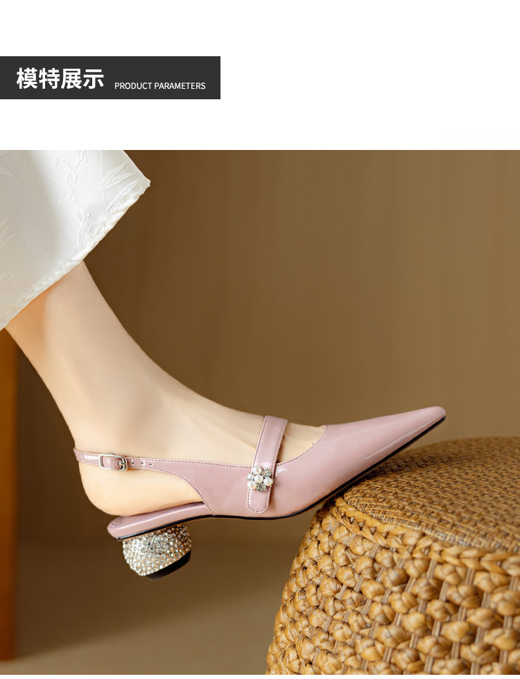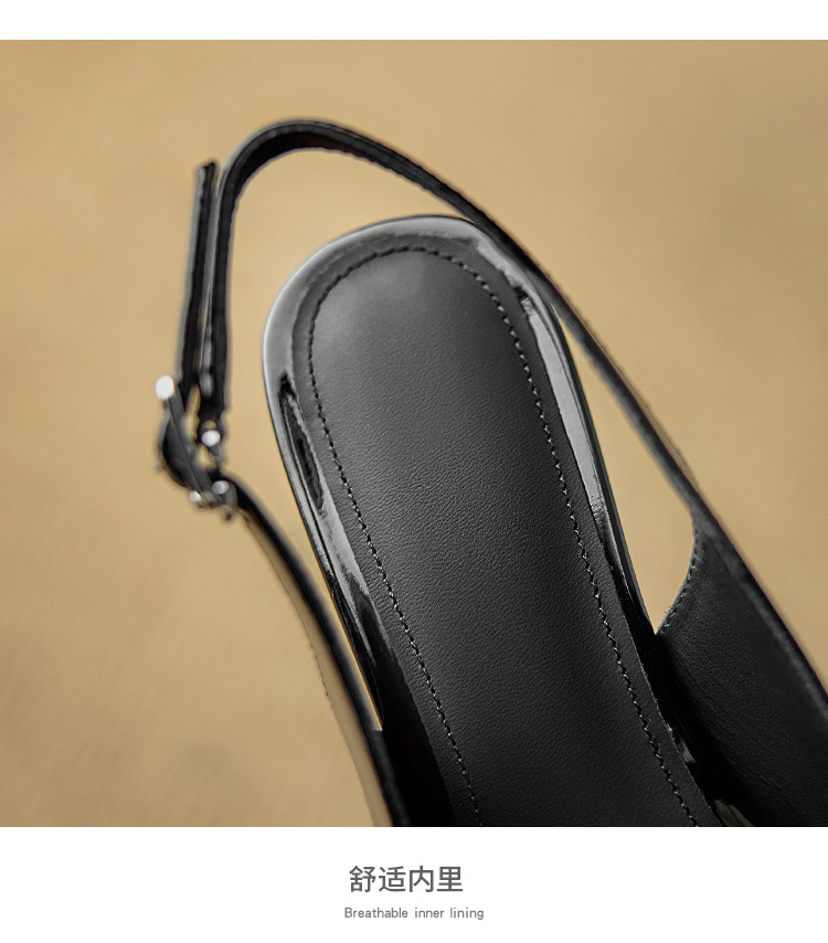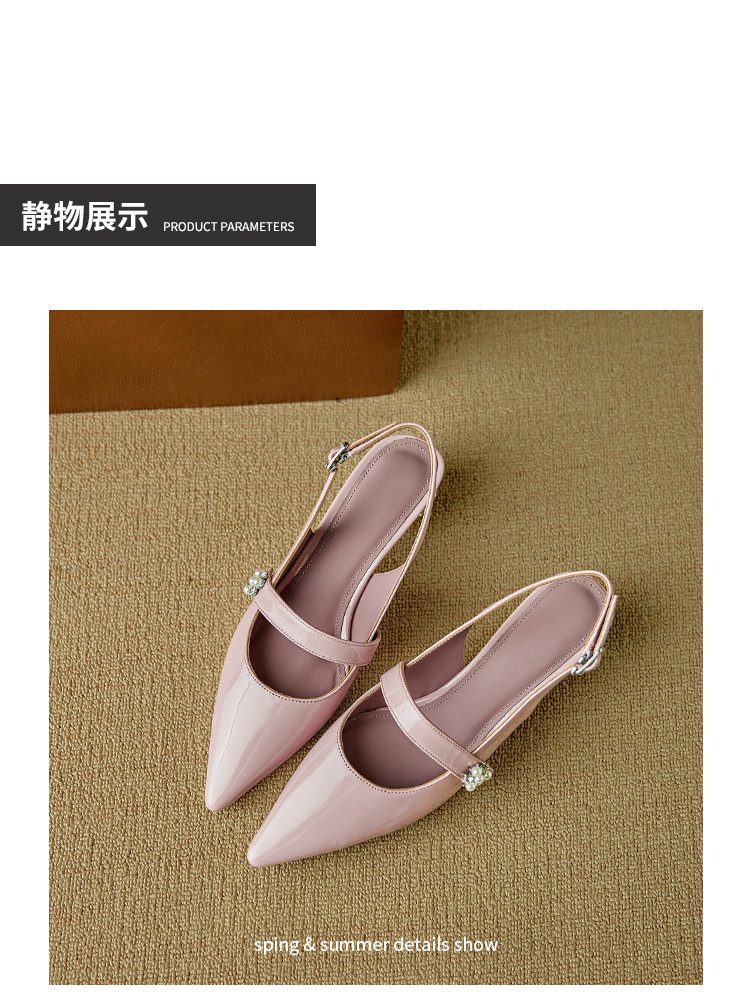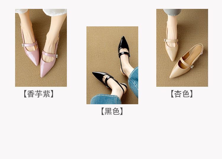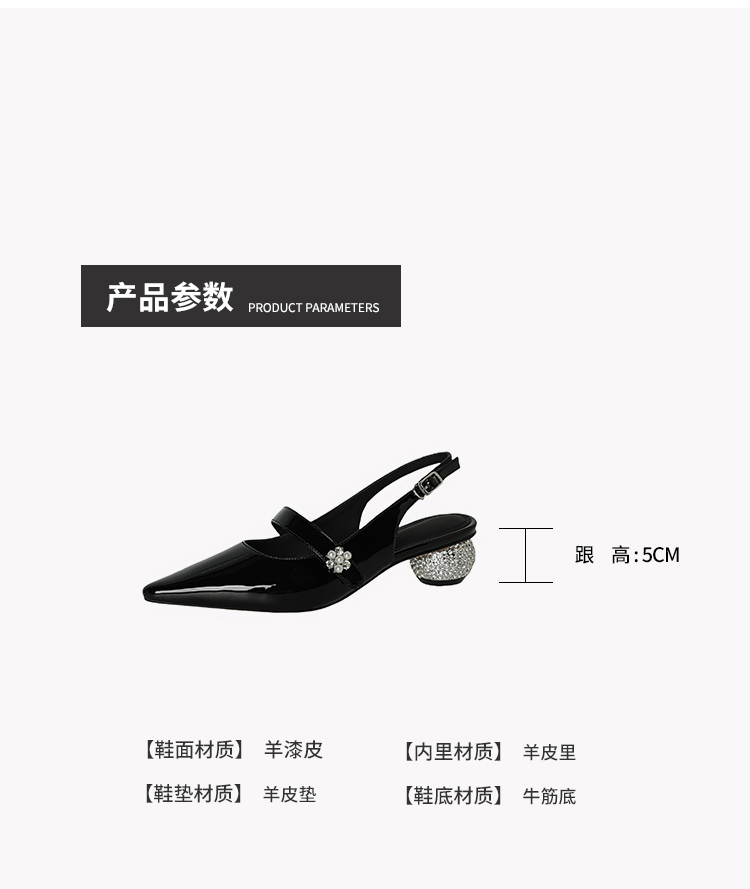 【预售5天】简约风羊皮紫色包头凉鞋女夏季外穿时尚尖头高跟鞋女粗跟后空DB&M6307