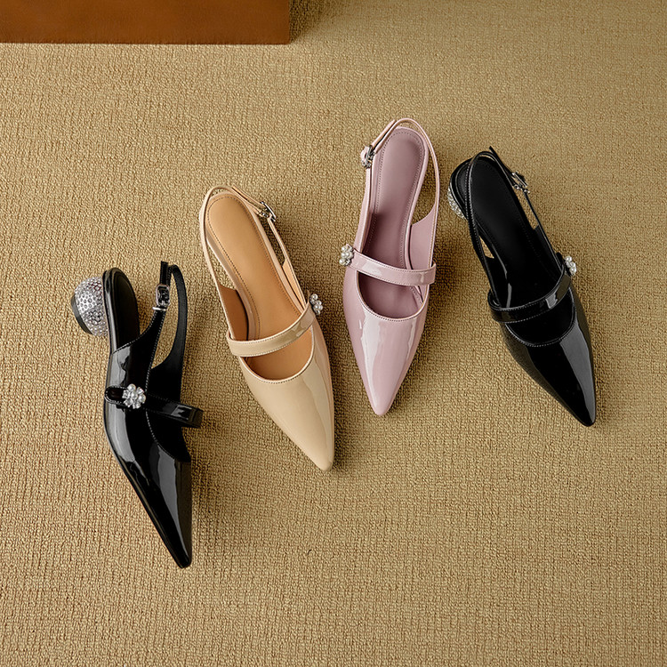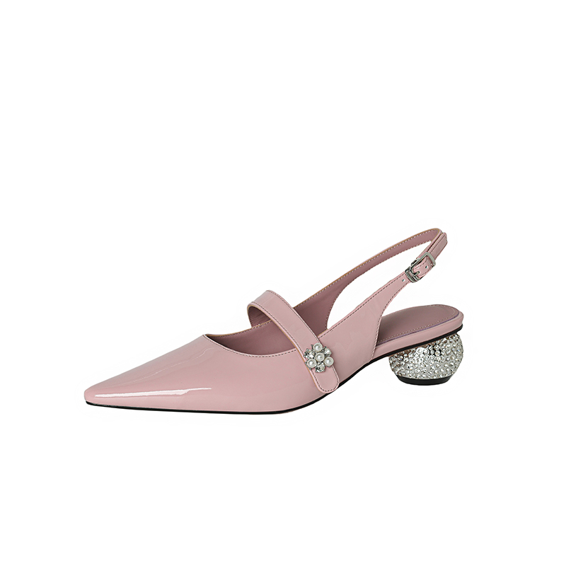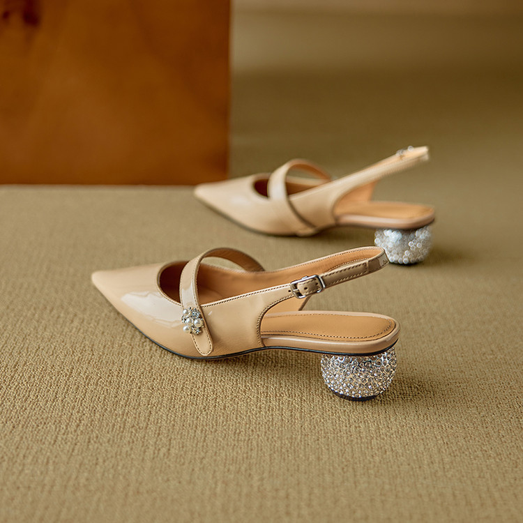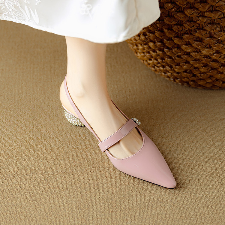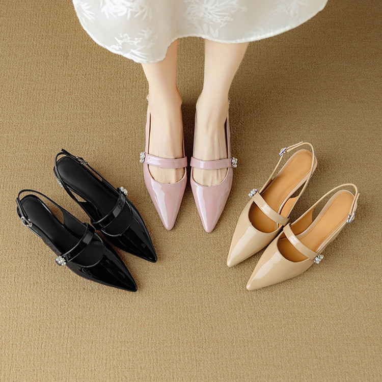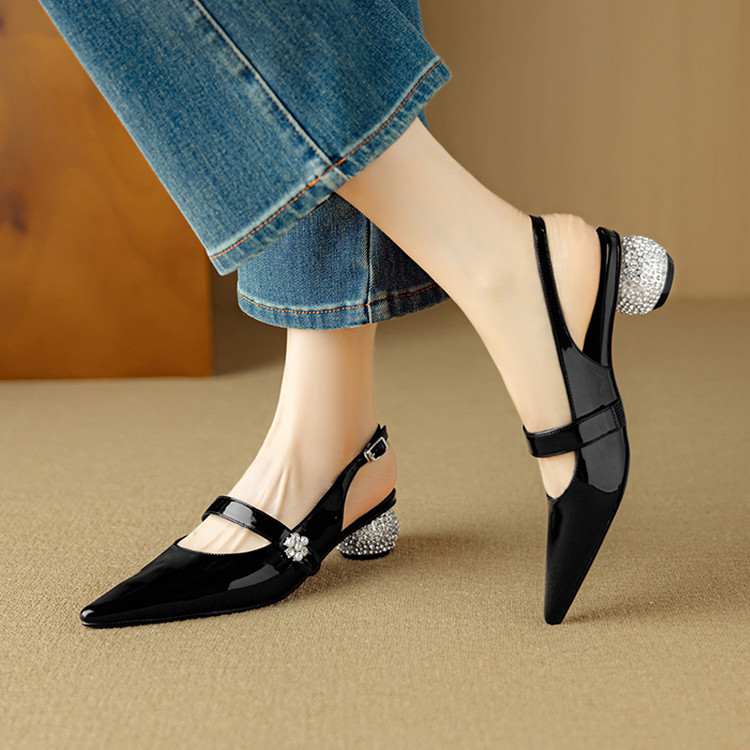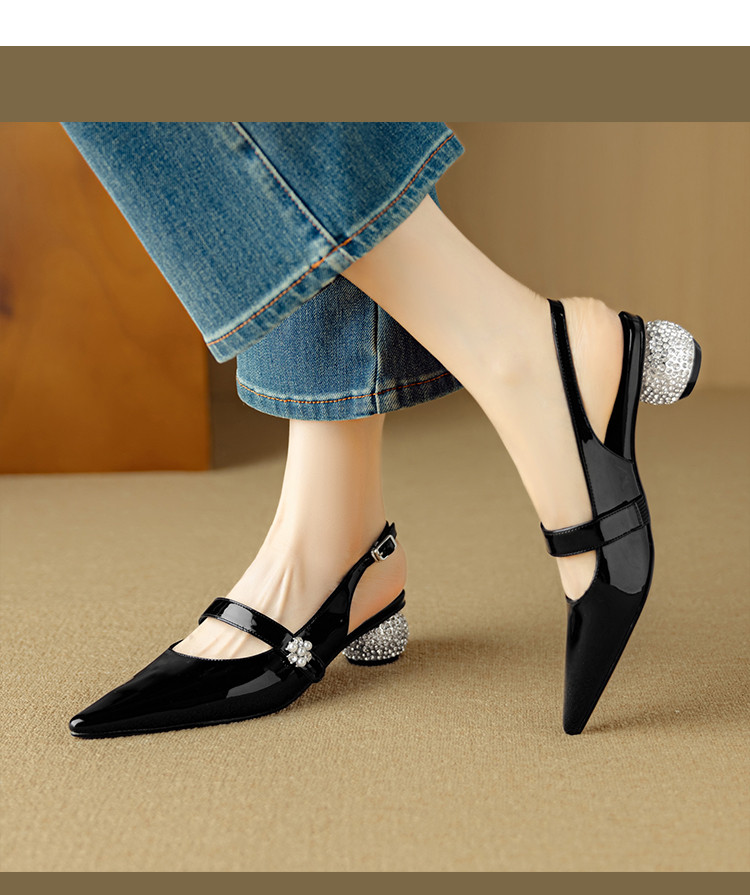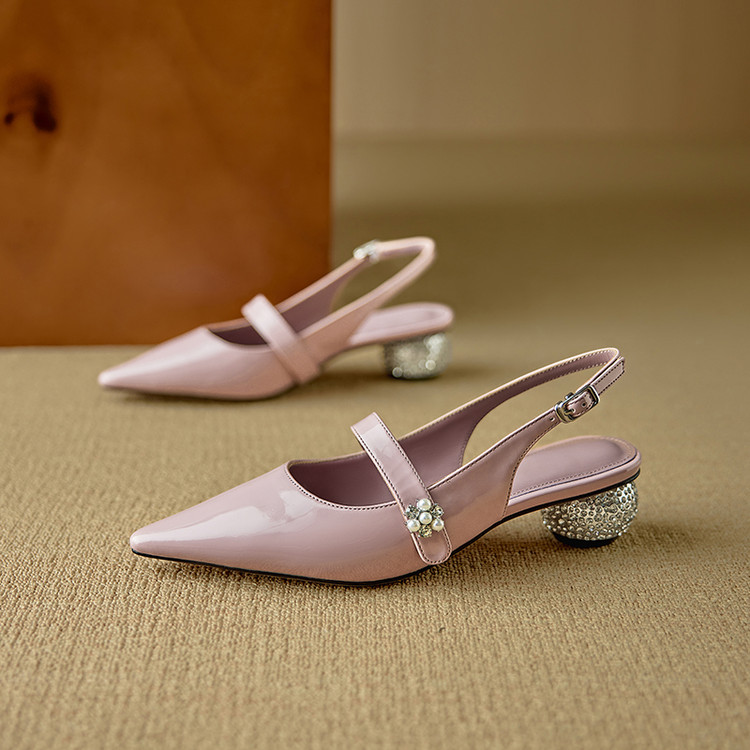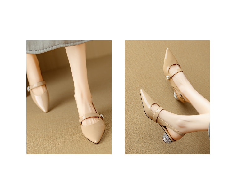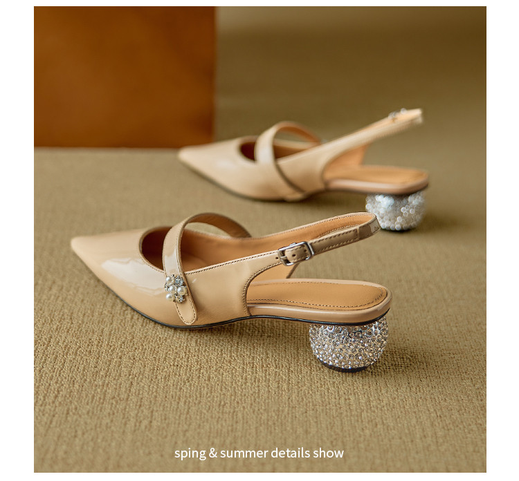【预售5天】简约风羊皮紫色包头凉鞋女夏季外穿时尚尖头高跟鞋女粗跟后空DB&M6307