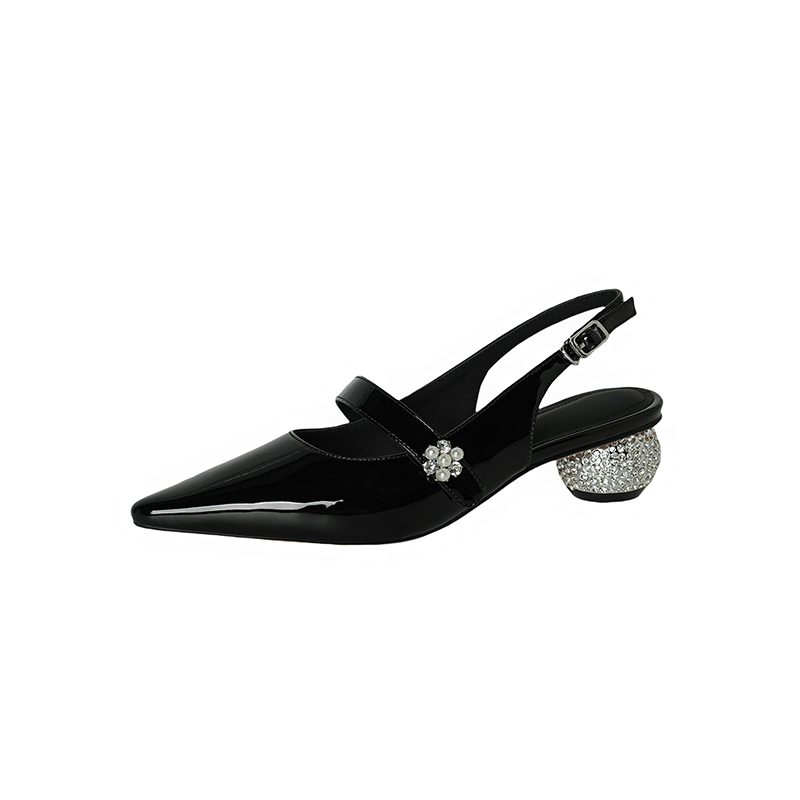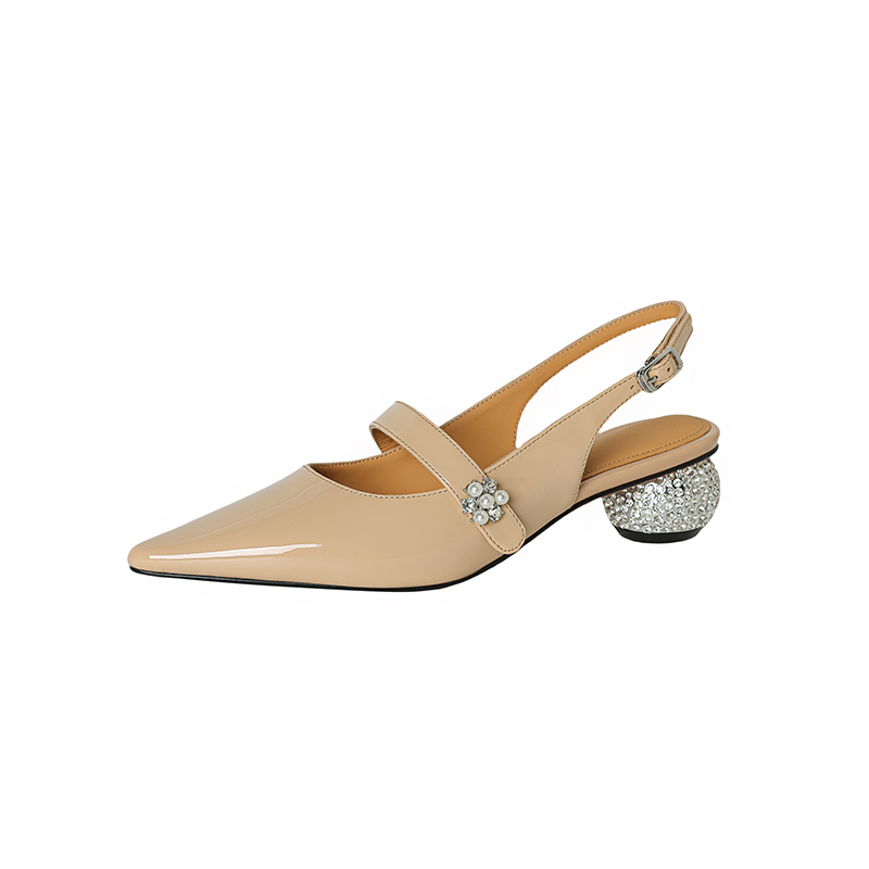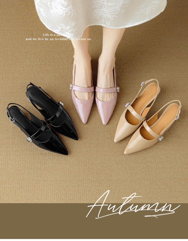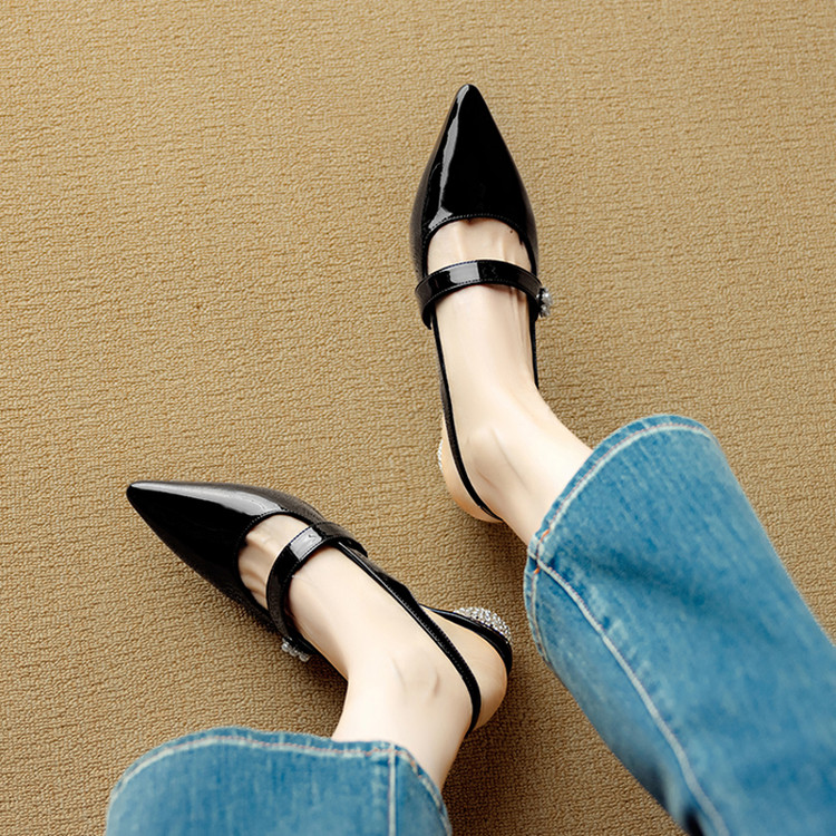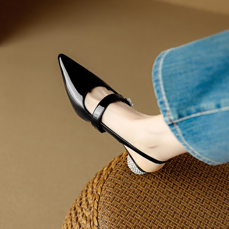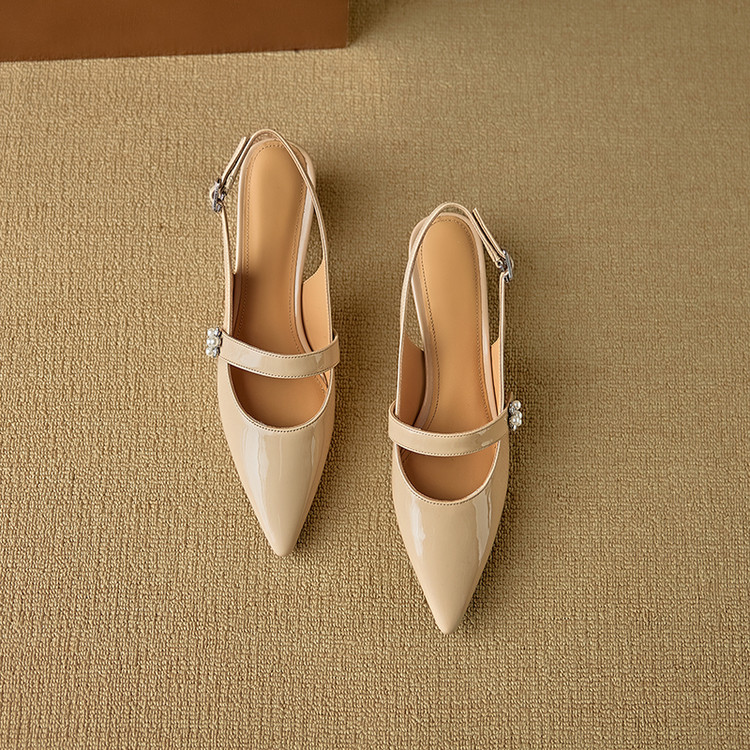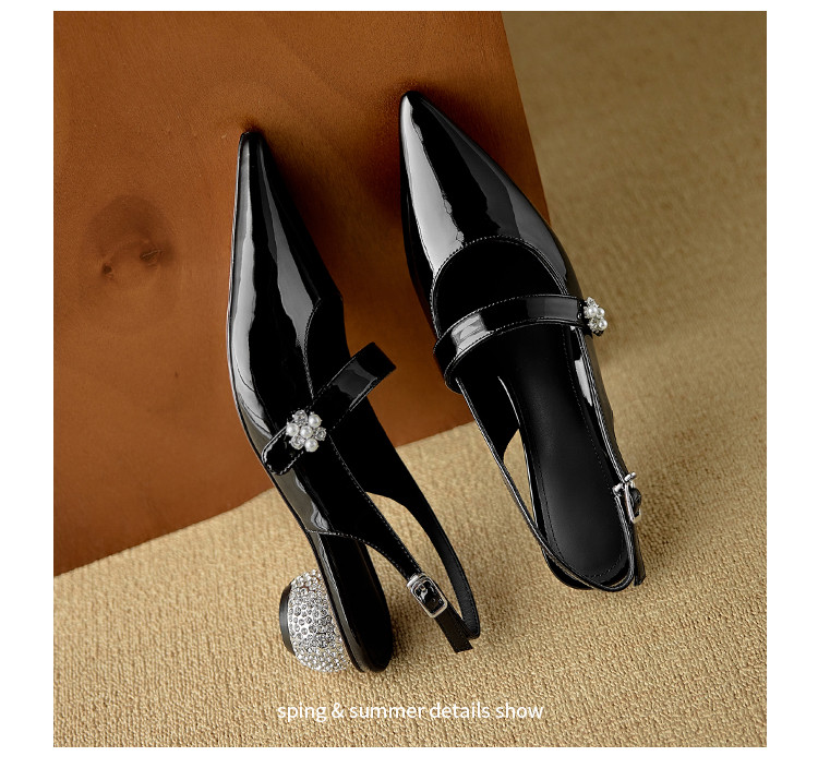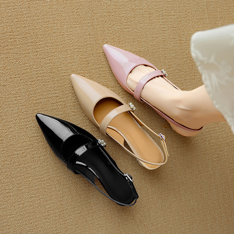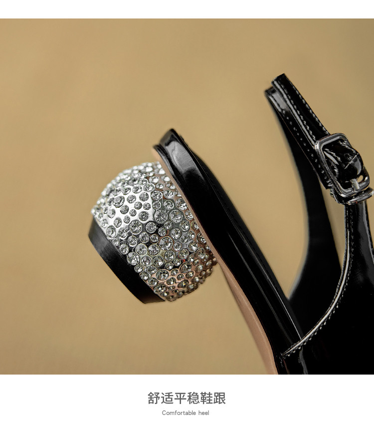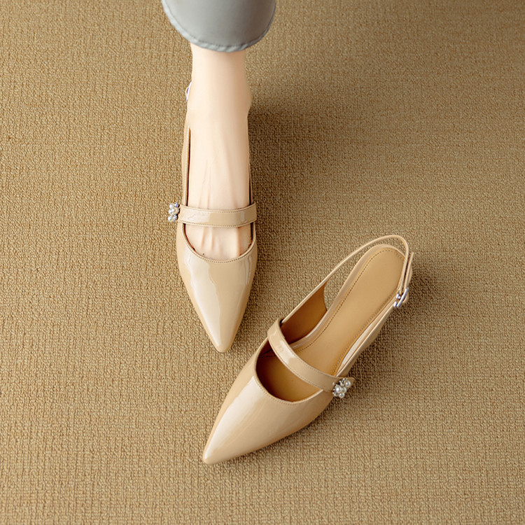 【预售5天】简约风羊皮紫色包头凉鞋女夏季外穿时尚尖头高跟鞋女粗跟后空DB&M6307