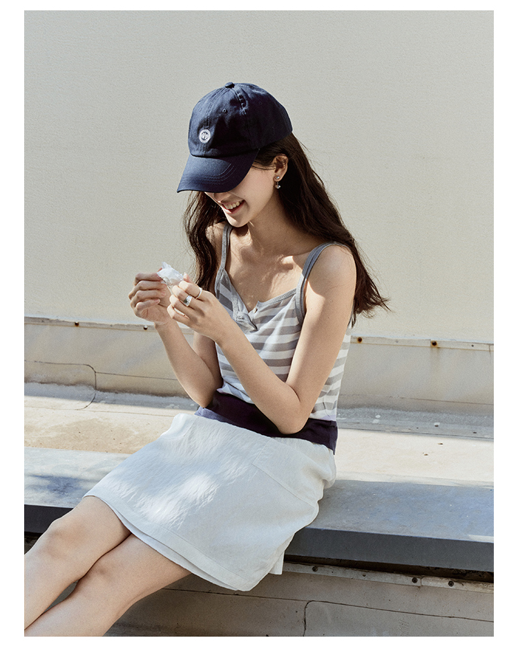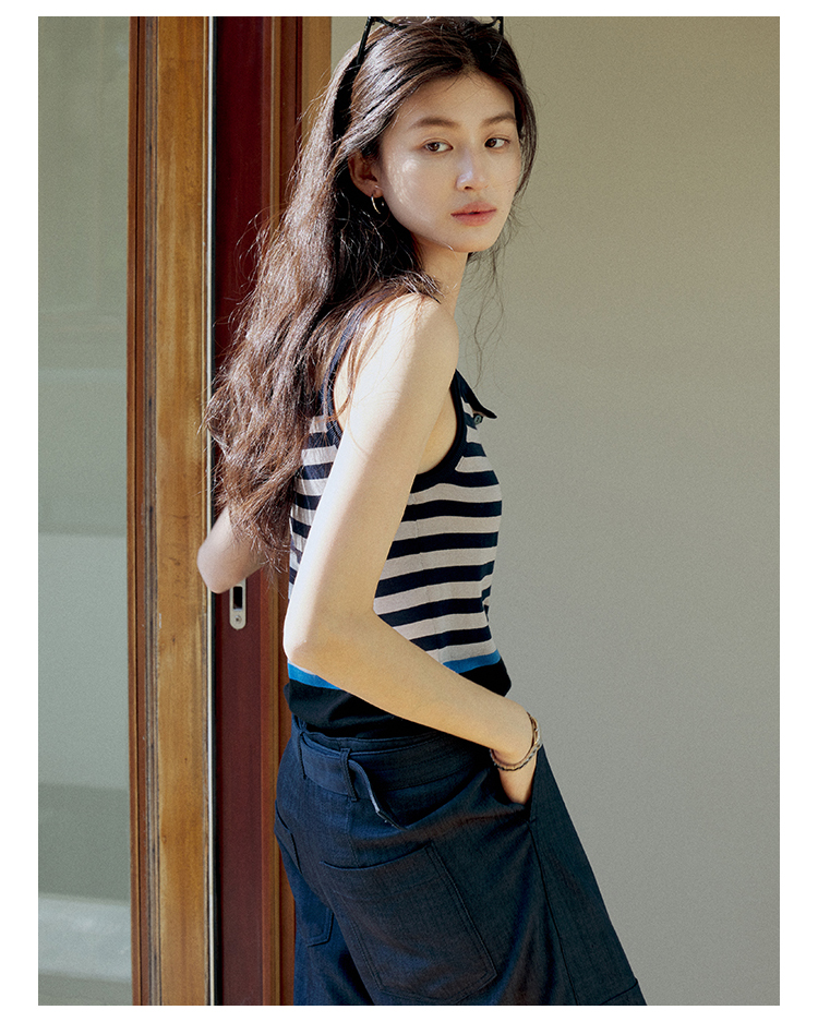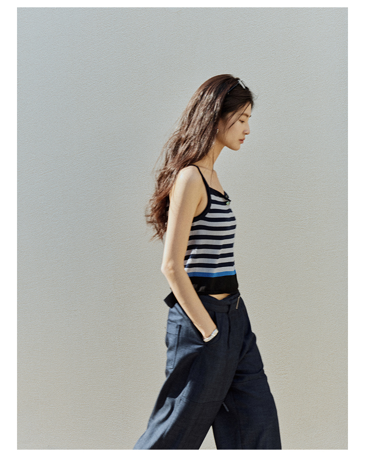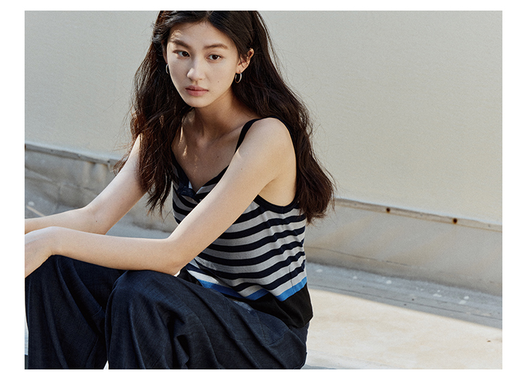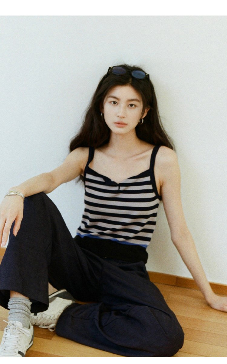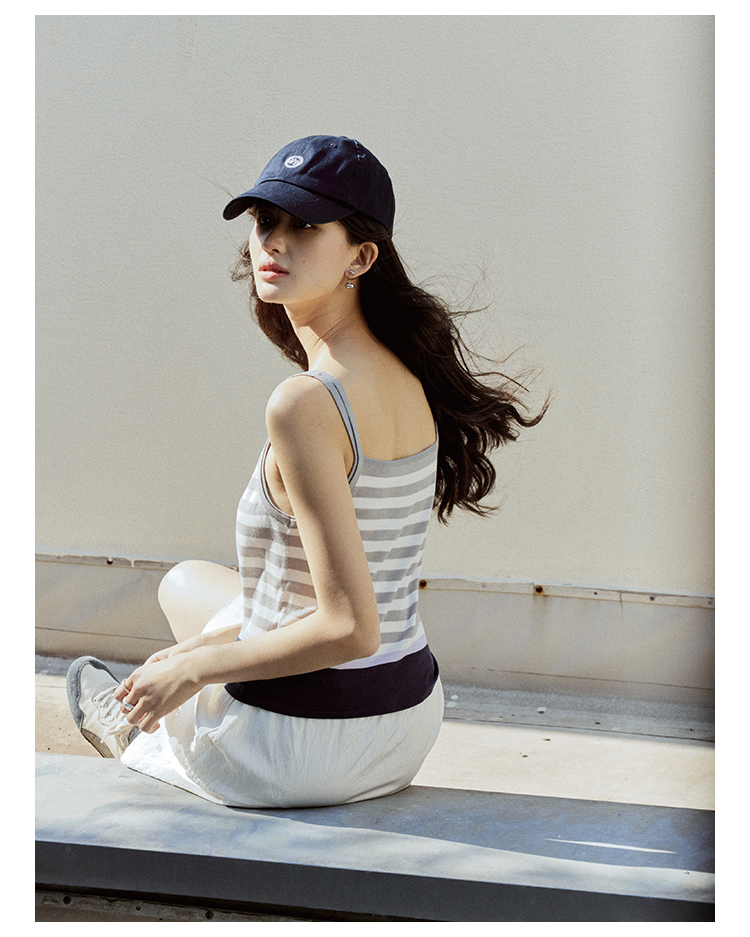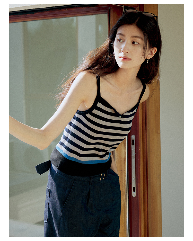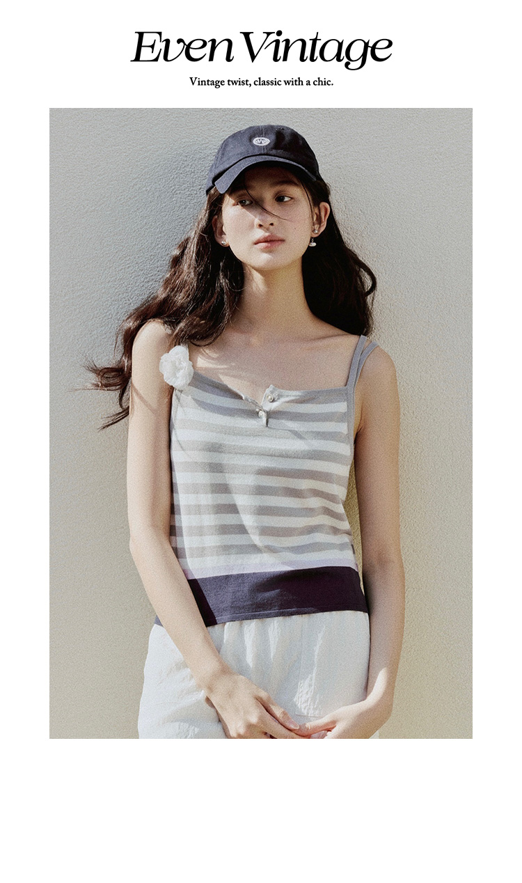 【现货】Even Vintage| 夏日活力 休闲简约条纹拼色慵懒感一字领吊带背心