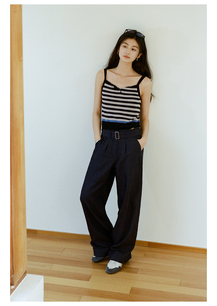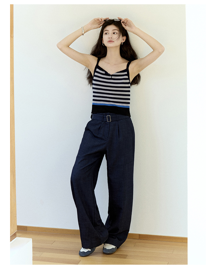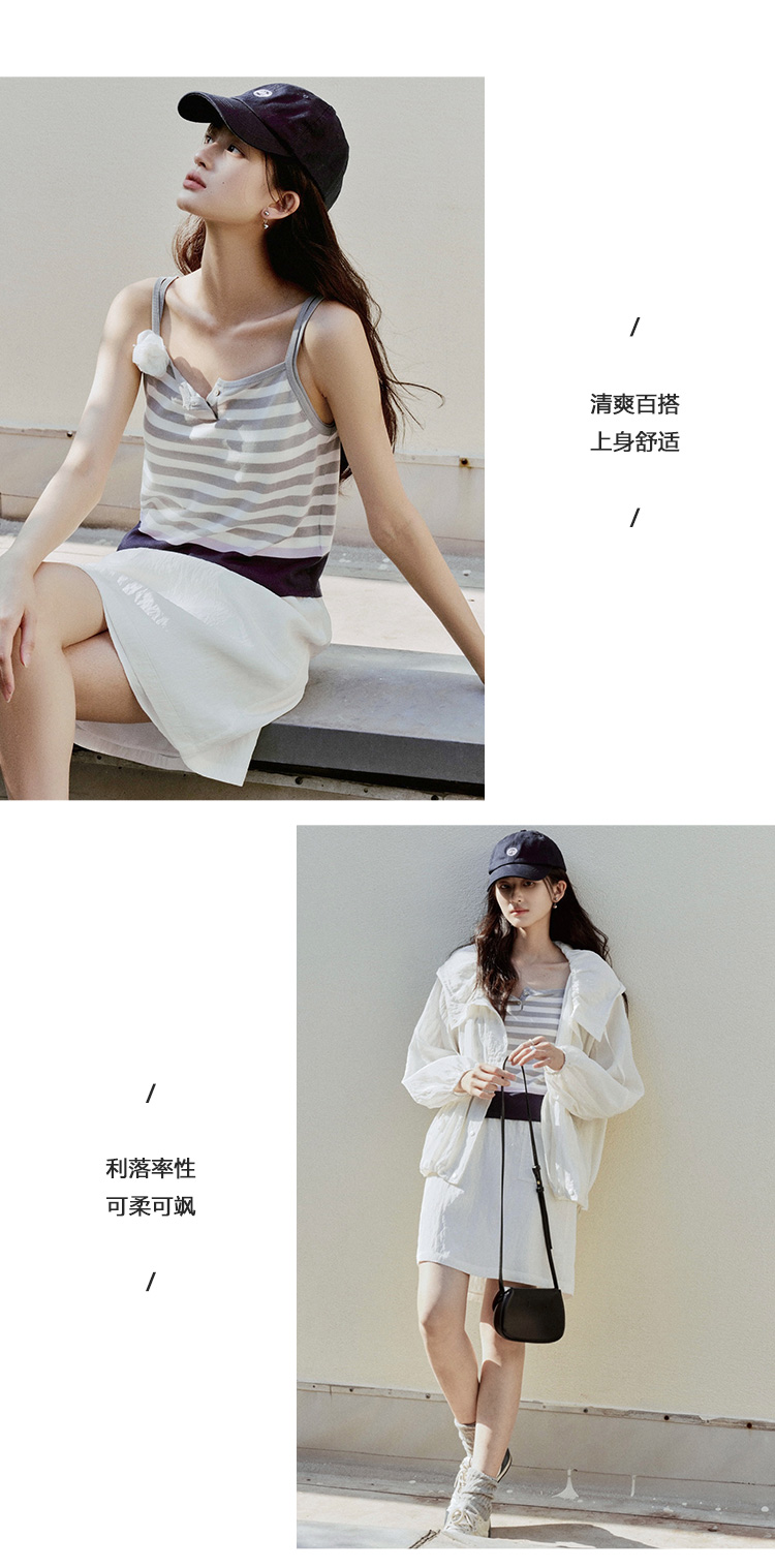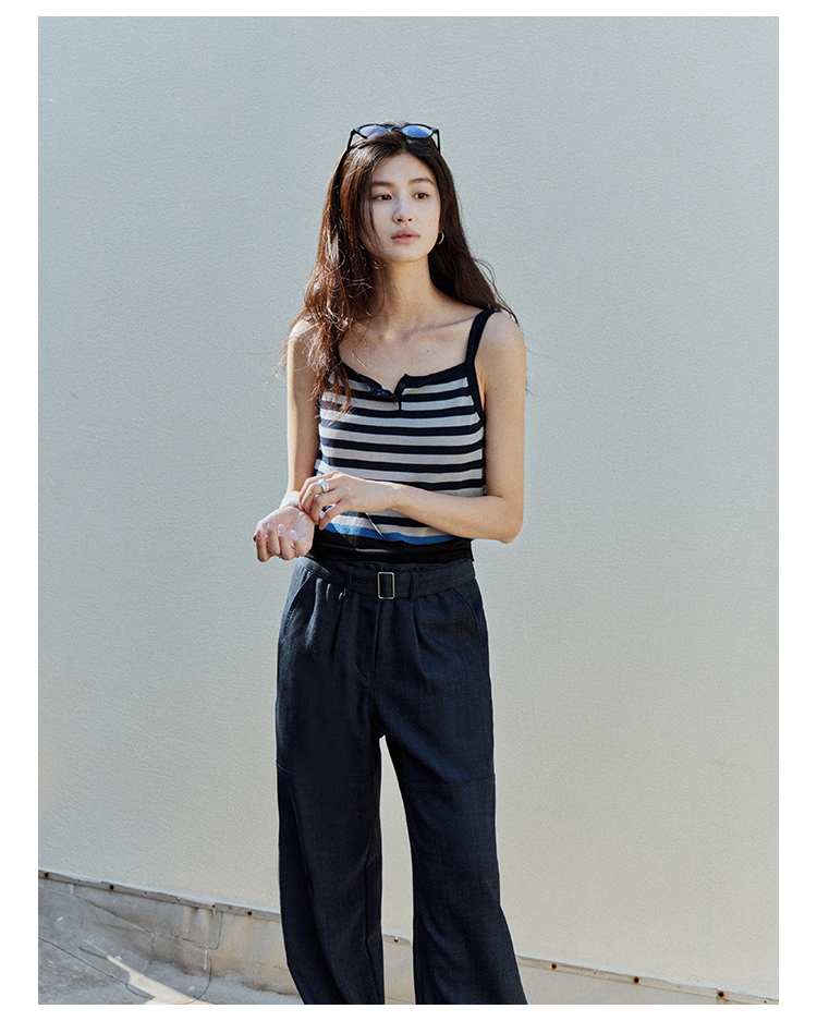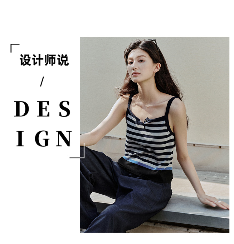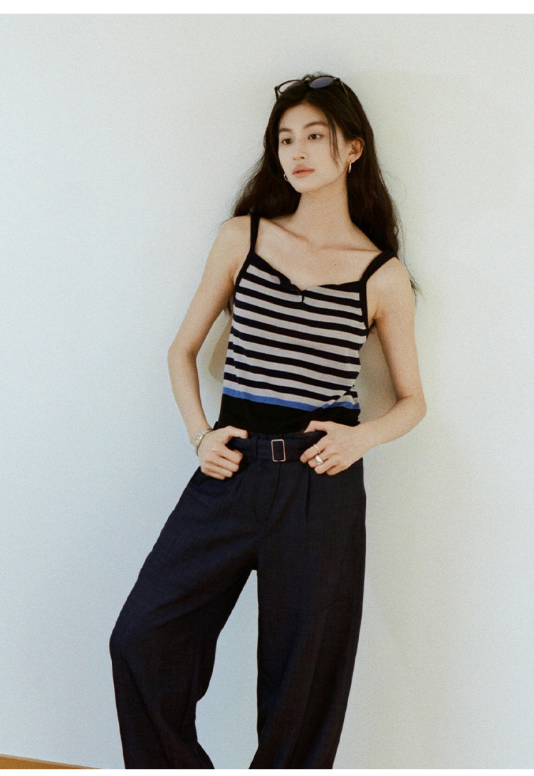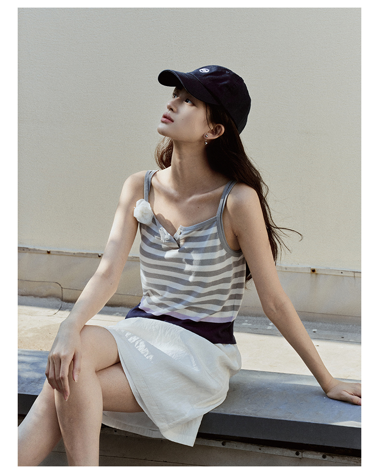 【现货】Even Vintage| 夏日活力 休闲简约条纹拼色慵懒感一字领吊带背心