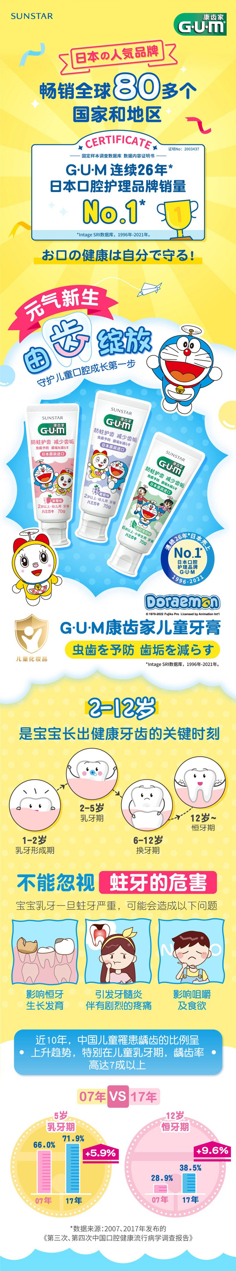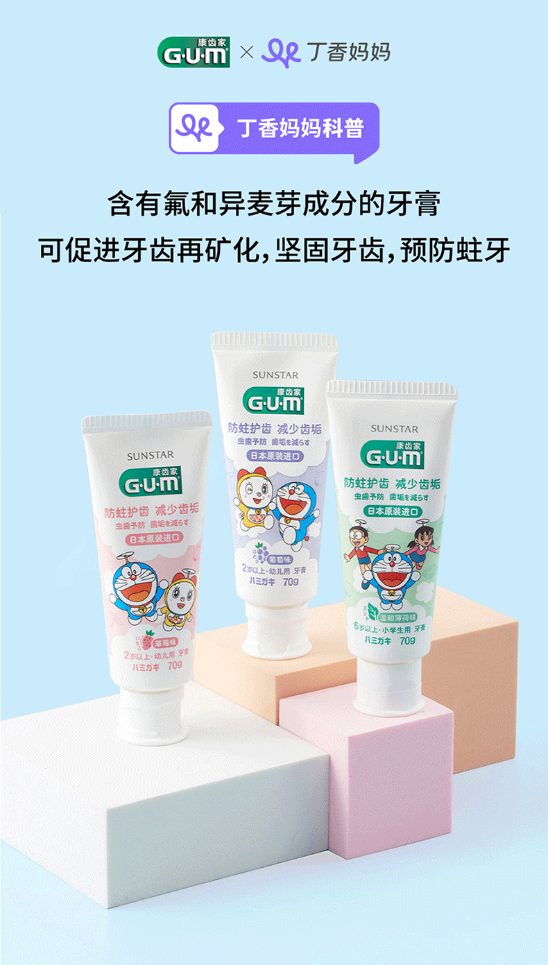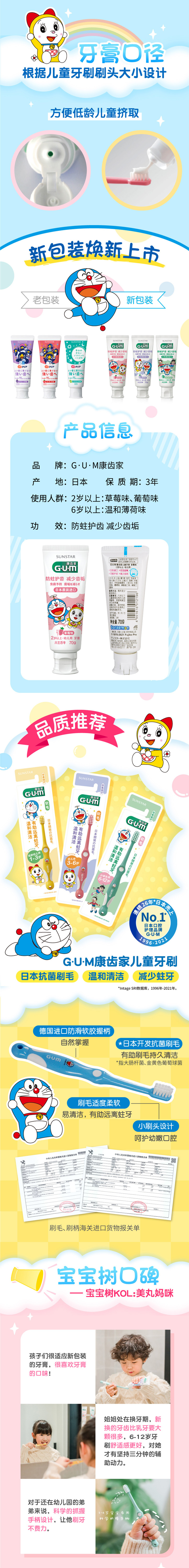 【品牌直发】【多支】GUM康齿家哆啦A梦米菲儿童牙膏70g葡萄草莓薄荷2-12岁含氟宝宝防蛀护龈进口