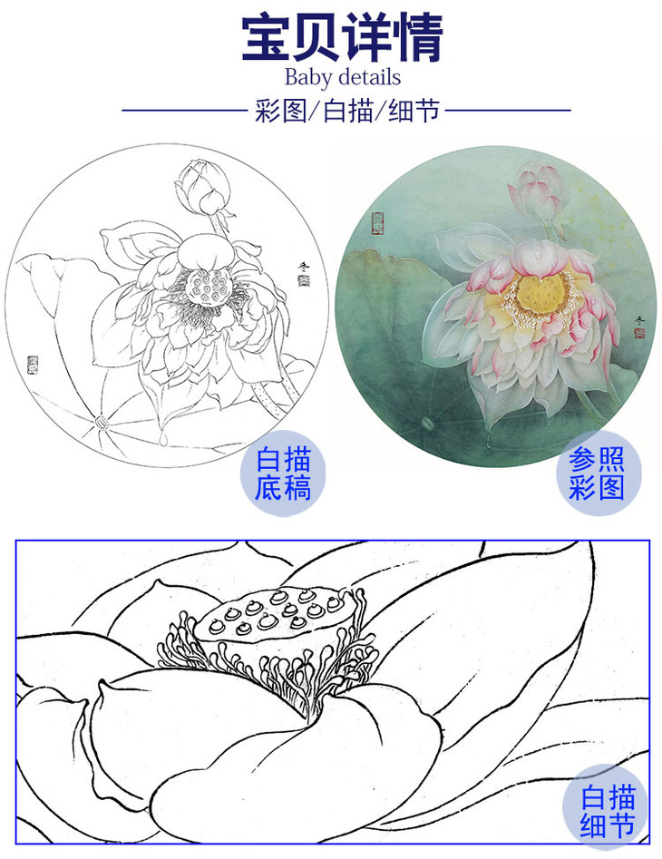 杨冬冬工笔花鸟白描底稿《曦雪》荷花小品-多种白描尺寸可选-HD05