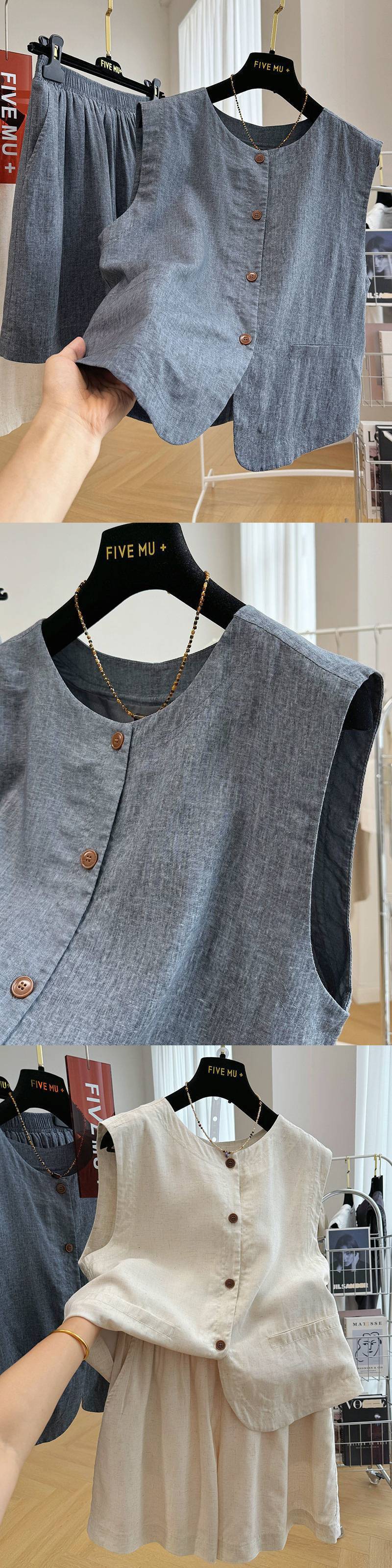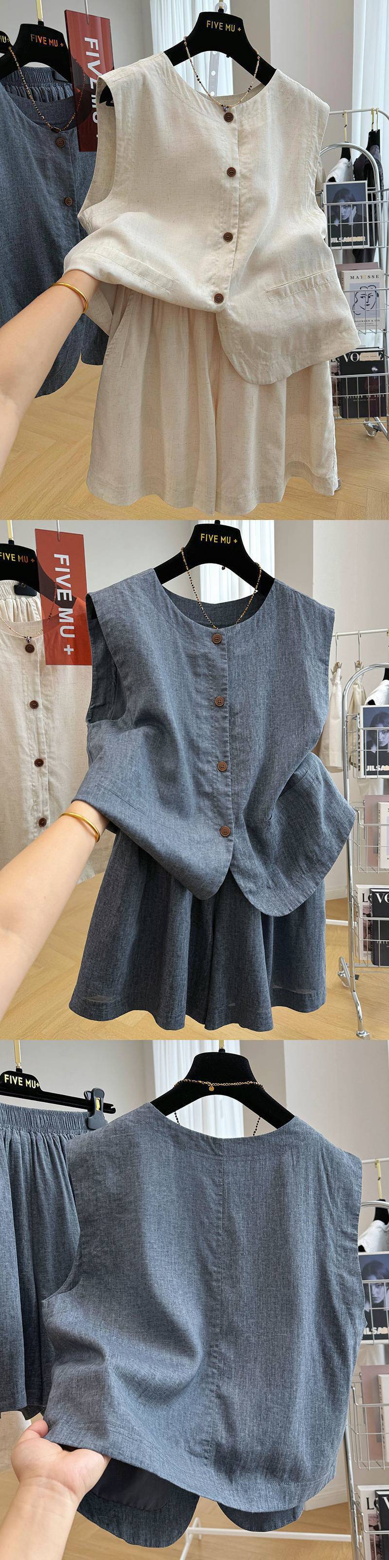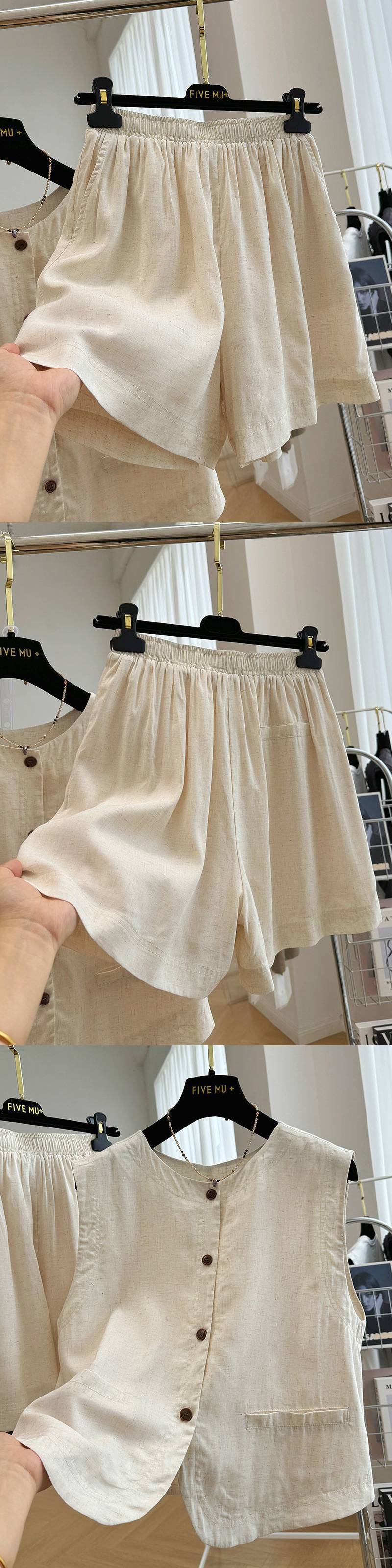 【流行夏装搭配一整套】大码盐系轻熟短款马甲背心短裤两件 时尚套装女