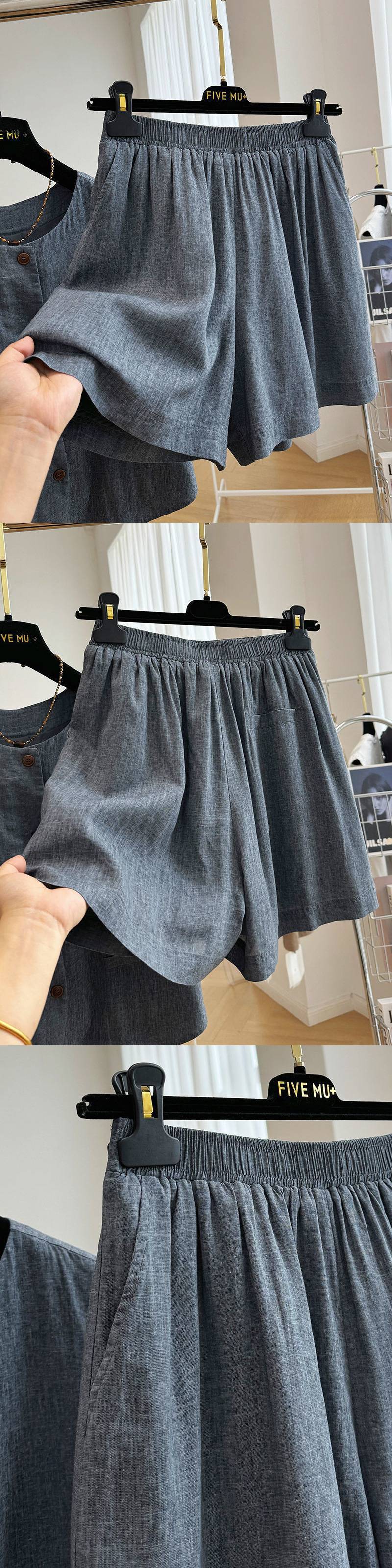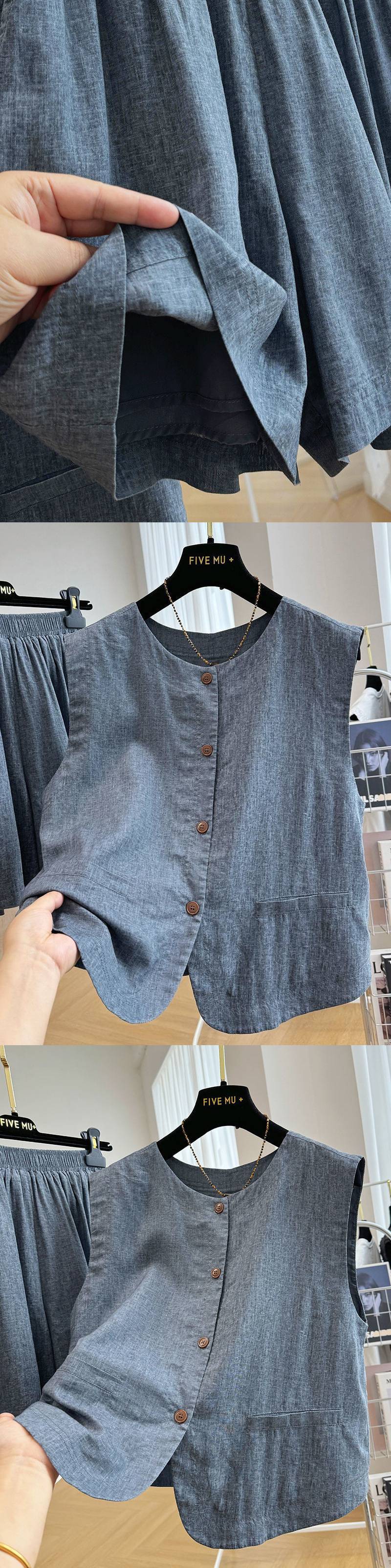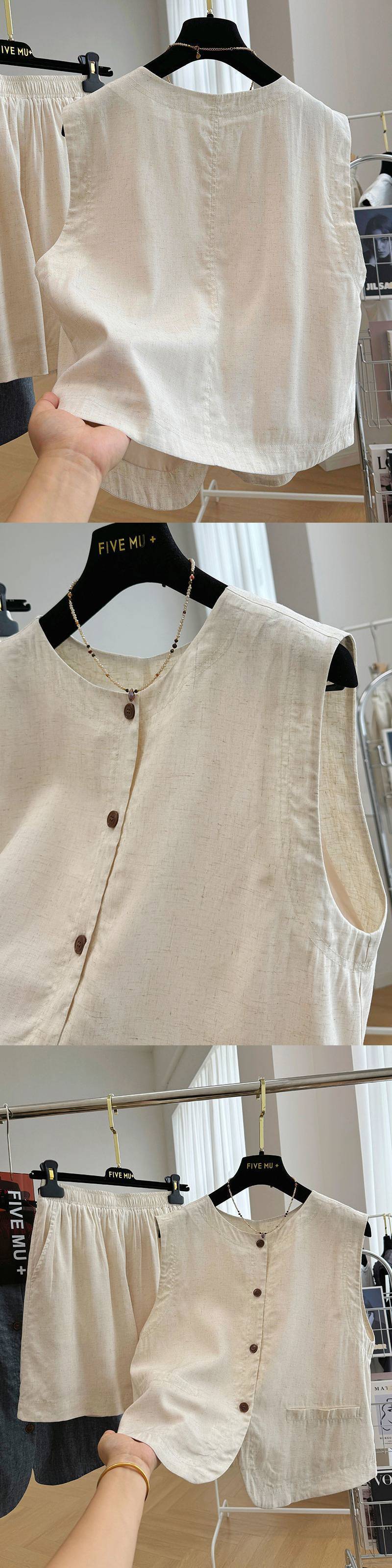 【流行夏装搭配一整套】大码盐系轻熟短款马甲背心短裤两件 时尚套装女
