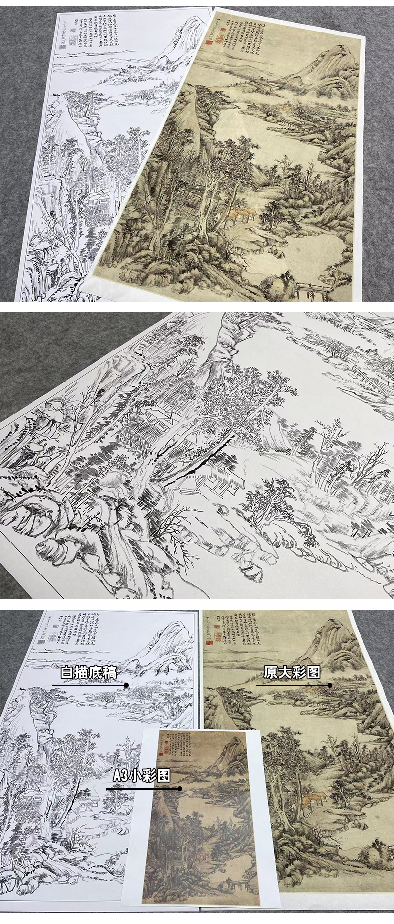 宋画小品工笔花鸟白描底稿-宋-吴炳-《枇杷绣眼图》-多种白描尺寸可选-X019