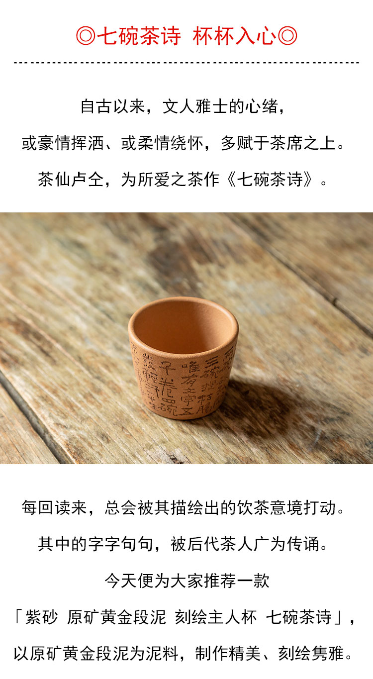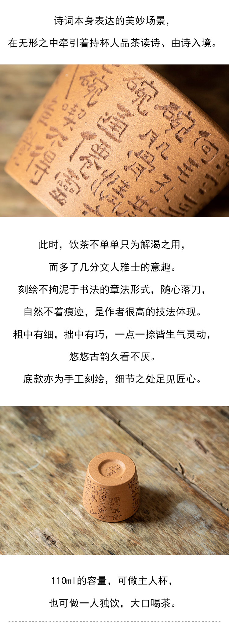 茶香记 紫砂原矿段泥刻绘主人杯110ml七碗茶诗刻绘隽雅品茗杯茶杯
