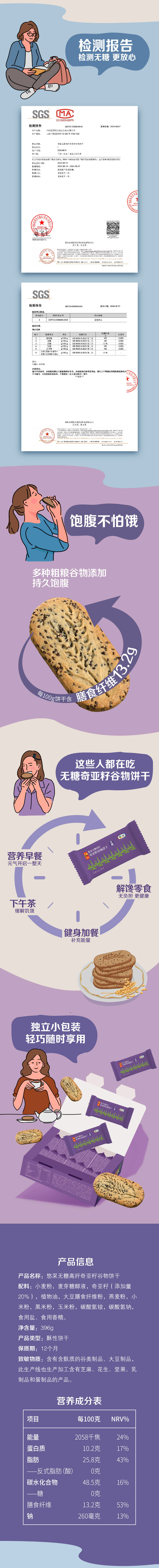 中粮悠采 无糖高纤奇亚籽谷物饼干396g 办公室零食 方便早餐